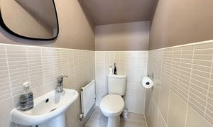 The ground floor flows with family living in mind, starting with a handy entrance area and downstairs loo, then opening into a light-filled lounge that's perfect for cosy evenings in or lazy Sunday mornings. Just beyond, the kitchen diner is a bright space, modern, well-equipped, and with plenty of room for family meals, kids’ homework, or catch-ups over coffee. Everything feels calm and considered, with built-in appliances and storage spaces that work around everyday life.