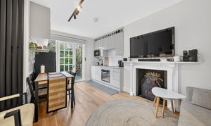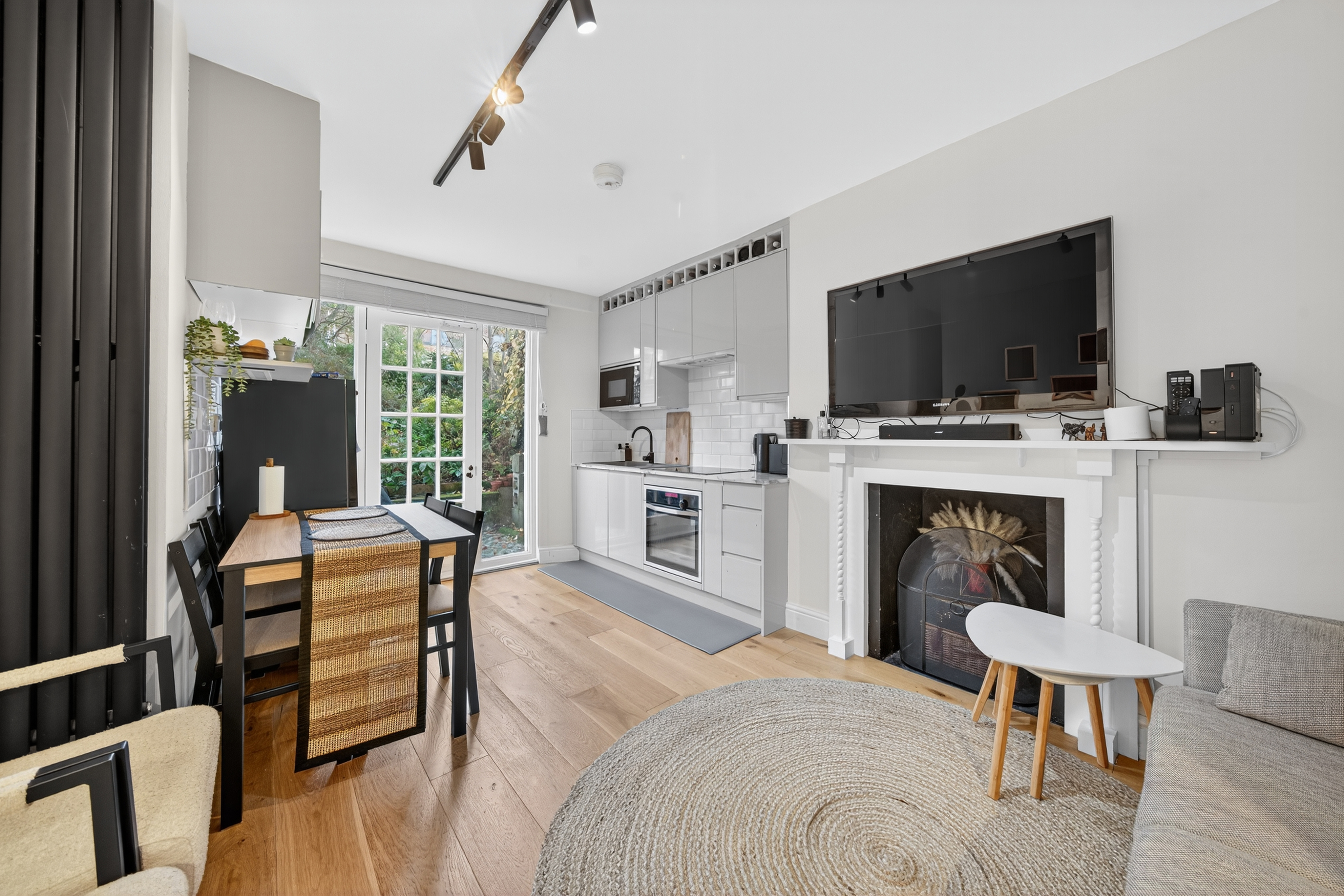 The apartment features an open-plan reception/kitchen that leads out onto a private section of the garden. Both bedrooms are spacious and offer an ample amount of storage.
