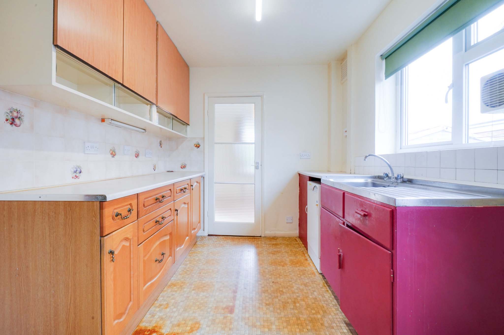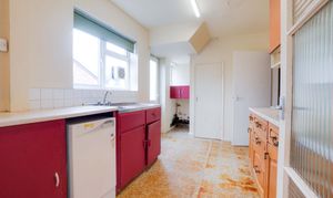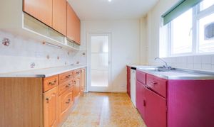 With double glazed windows to the side elevation, double glazed door to the side elevation, wall and base units with work surface over, stainless steel sink and drainer, part tiled walls, vinyl floor, gas cooker point, space for fridge freezer, under stairs storage cupboard, gas boiler, plumbing for washing machine.