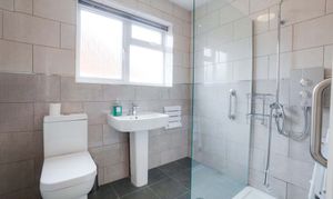 With double glazed window to the front elevation, low-level WC, wash hand basin, part tiled walls.