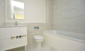 A lovely modern bathroom, comprising a three piece suite including a bath and shower over, wc and wash basin.
