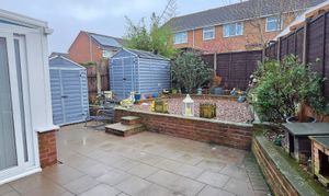 To the rear, there is a low maintenance garden made up a generous patio, raised gravel area, shrub borders, fenced boundaries, cold water tap and space for two sheds.