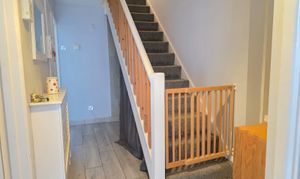 The third bedroom has carpet flooring, over-stair storage, radiator and UPVC double glazed window.