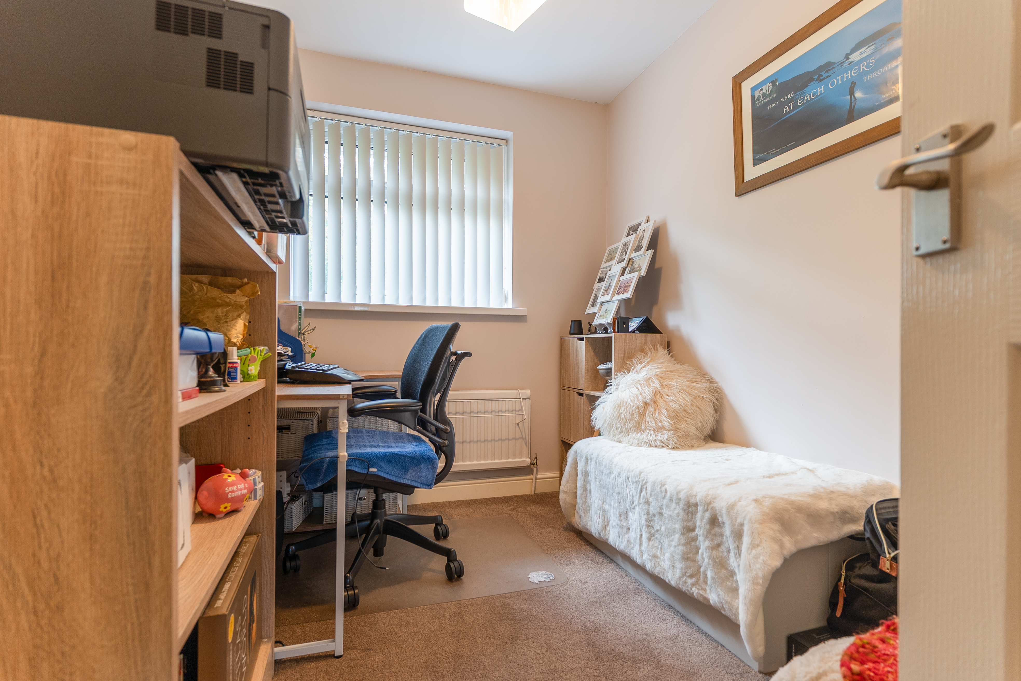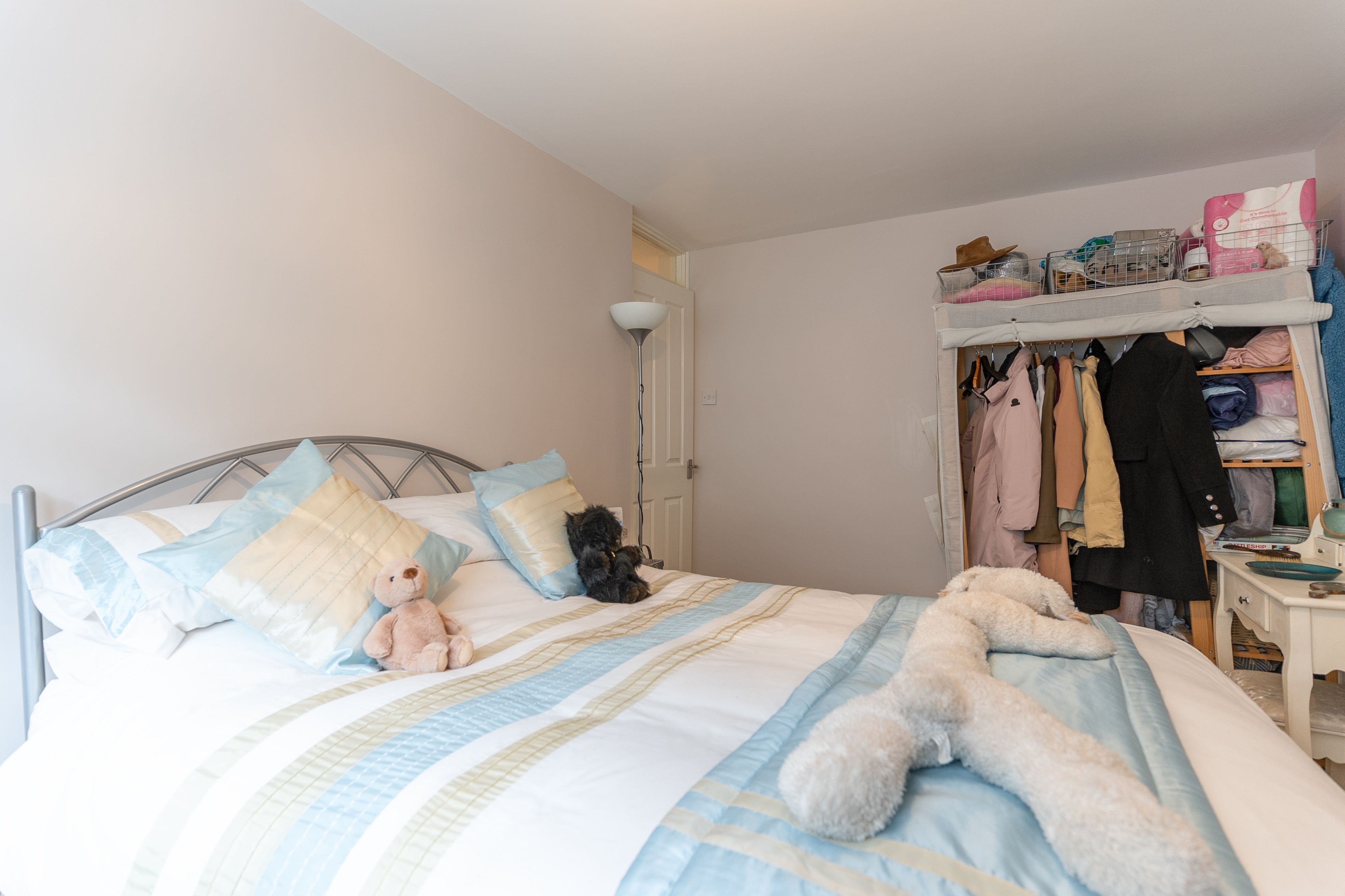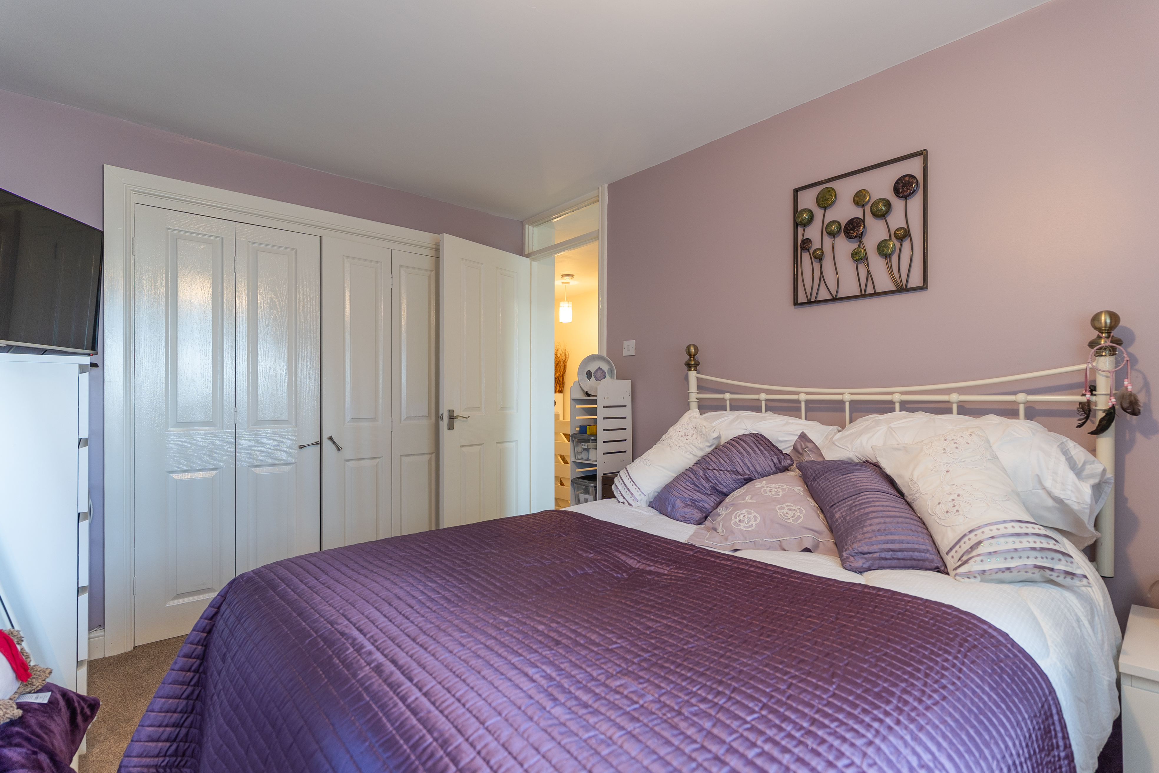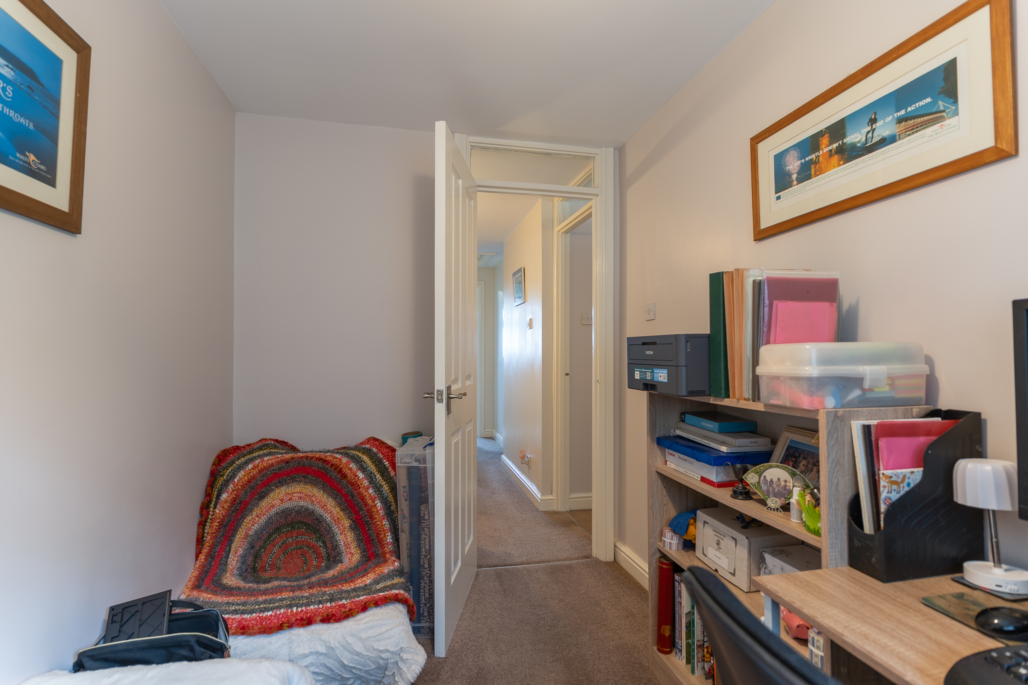 On the first floor are three bedrooms and the family bathroom. The property offers two double bedrooms and a good-sized single bedroom, providing flexible accommodation for families or those needing a home office. The primary bedroom also benefits from access to a large walk-in wardrobe area, adding valuable storage space. The family bathroom completes the first-floor layout.