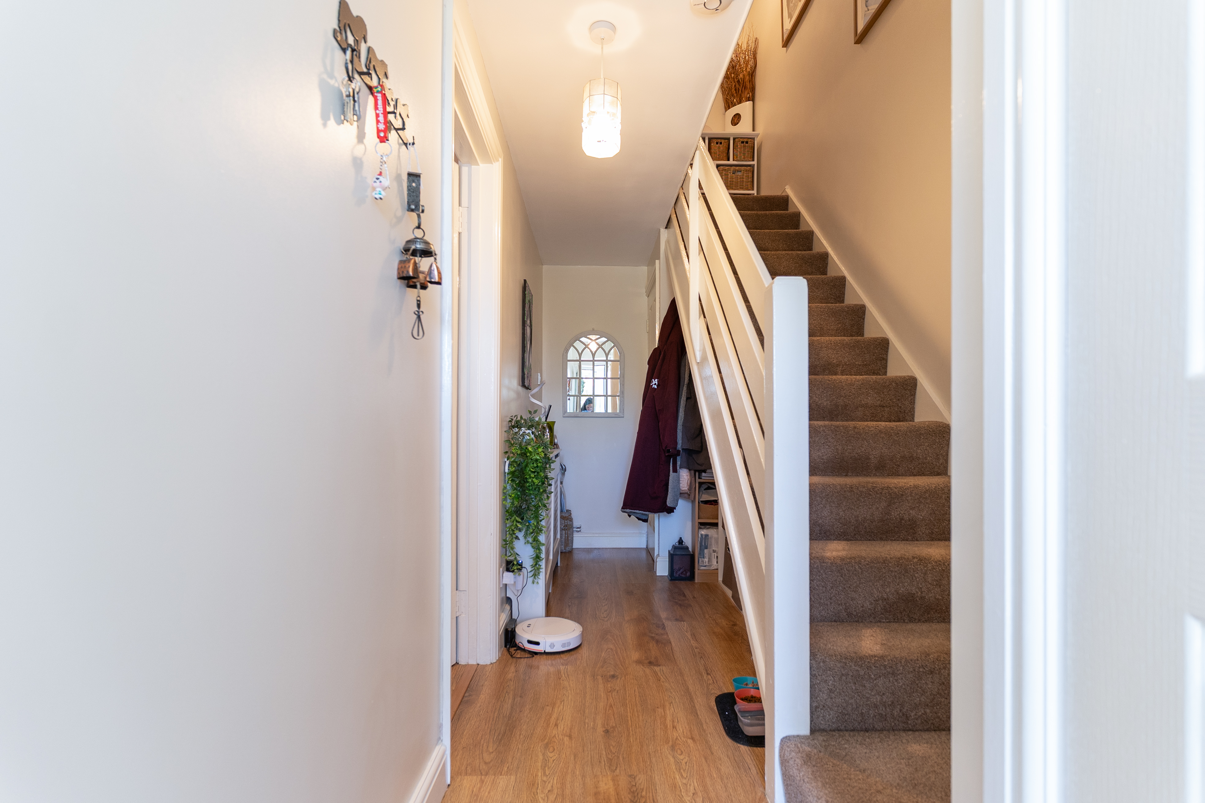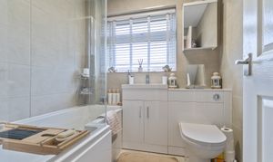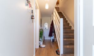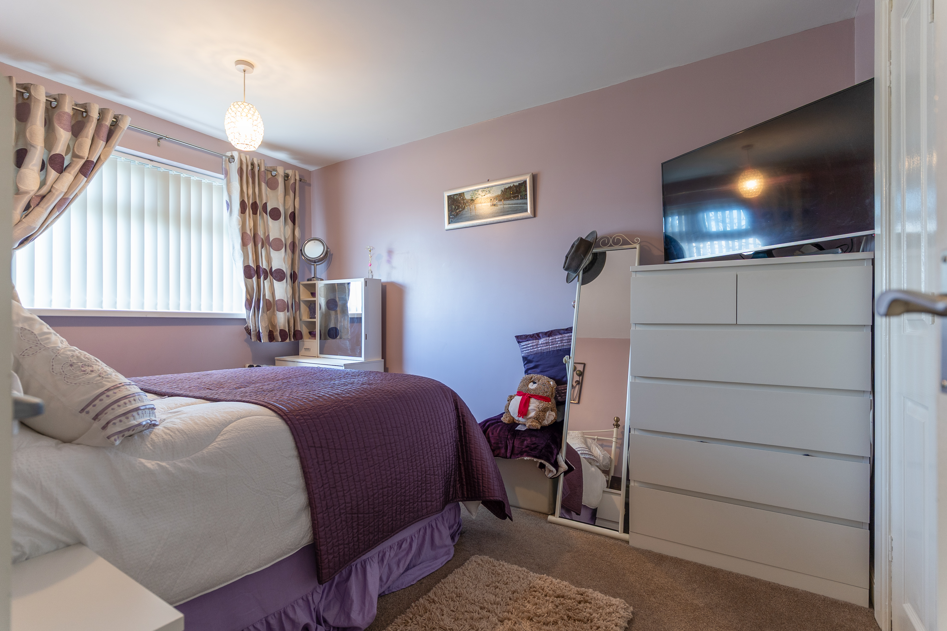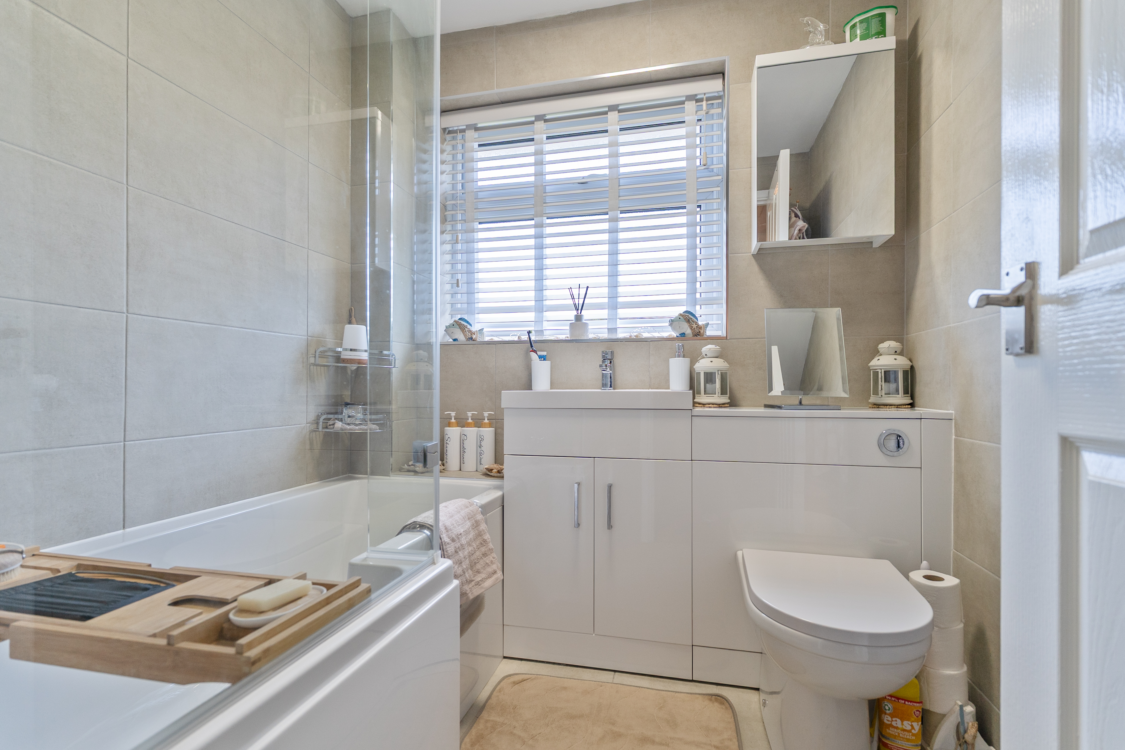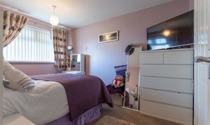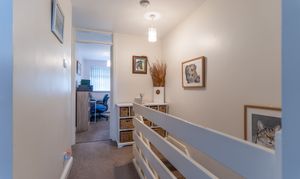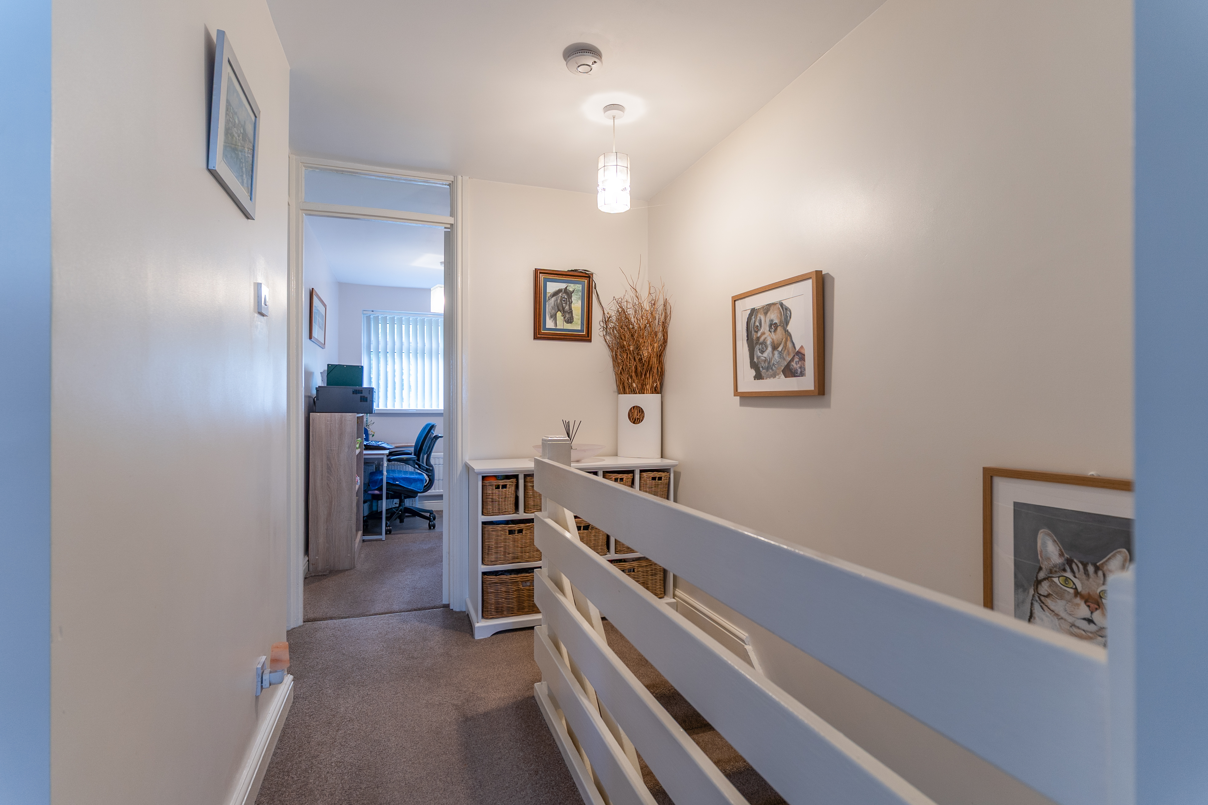 On the first floor are three bedrooms and the family bathroom. The property offers two double bedrooms and a good-sized single bedroom, providing flexible accommodation for families or those needing a home office. The primary bedroom also benefits from access to a large walk-in wardrobe area, adding valuable storage space. The family bathroom completes the first-floor layout.