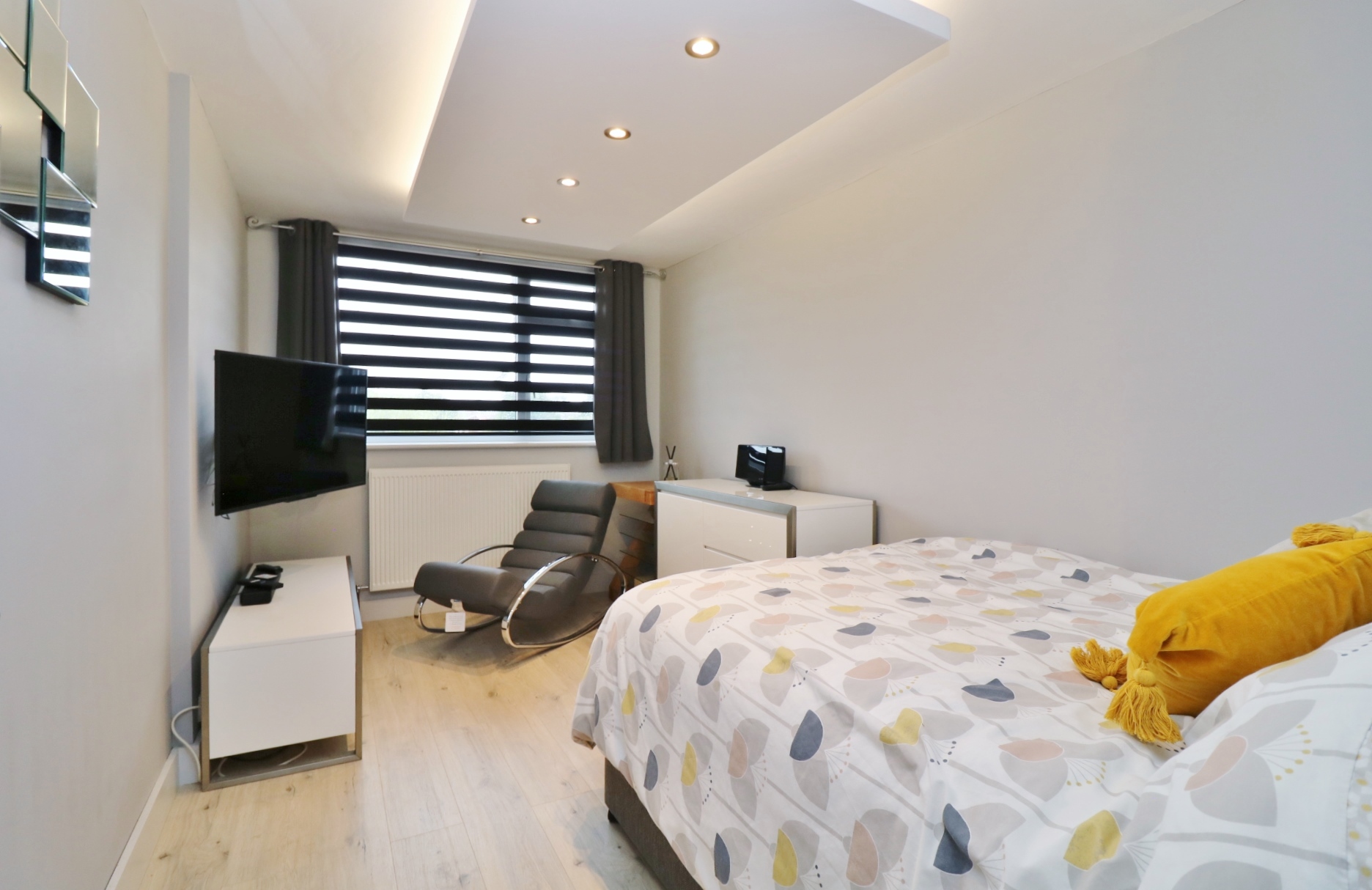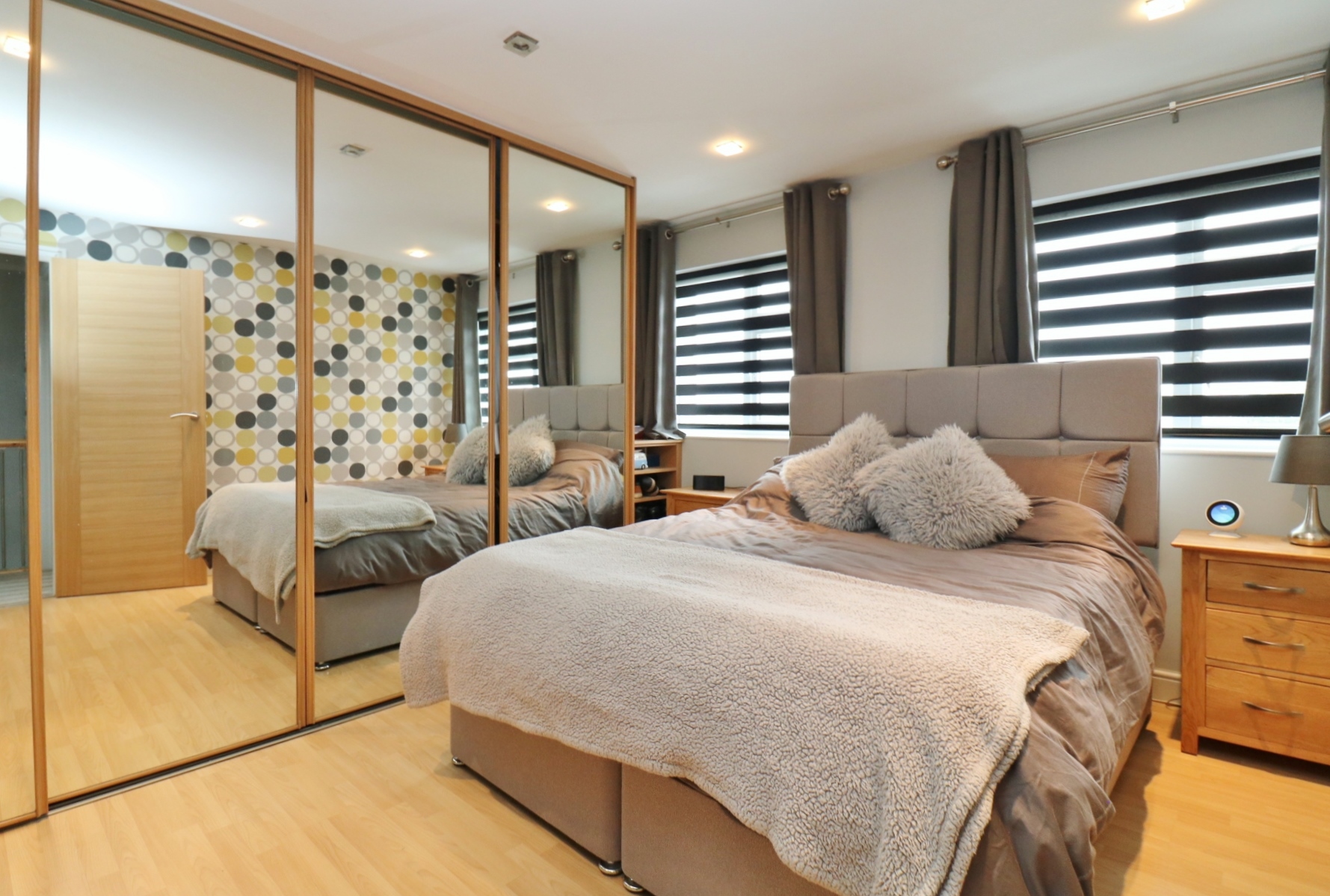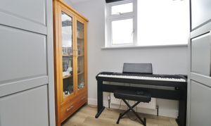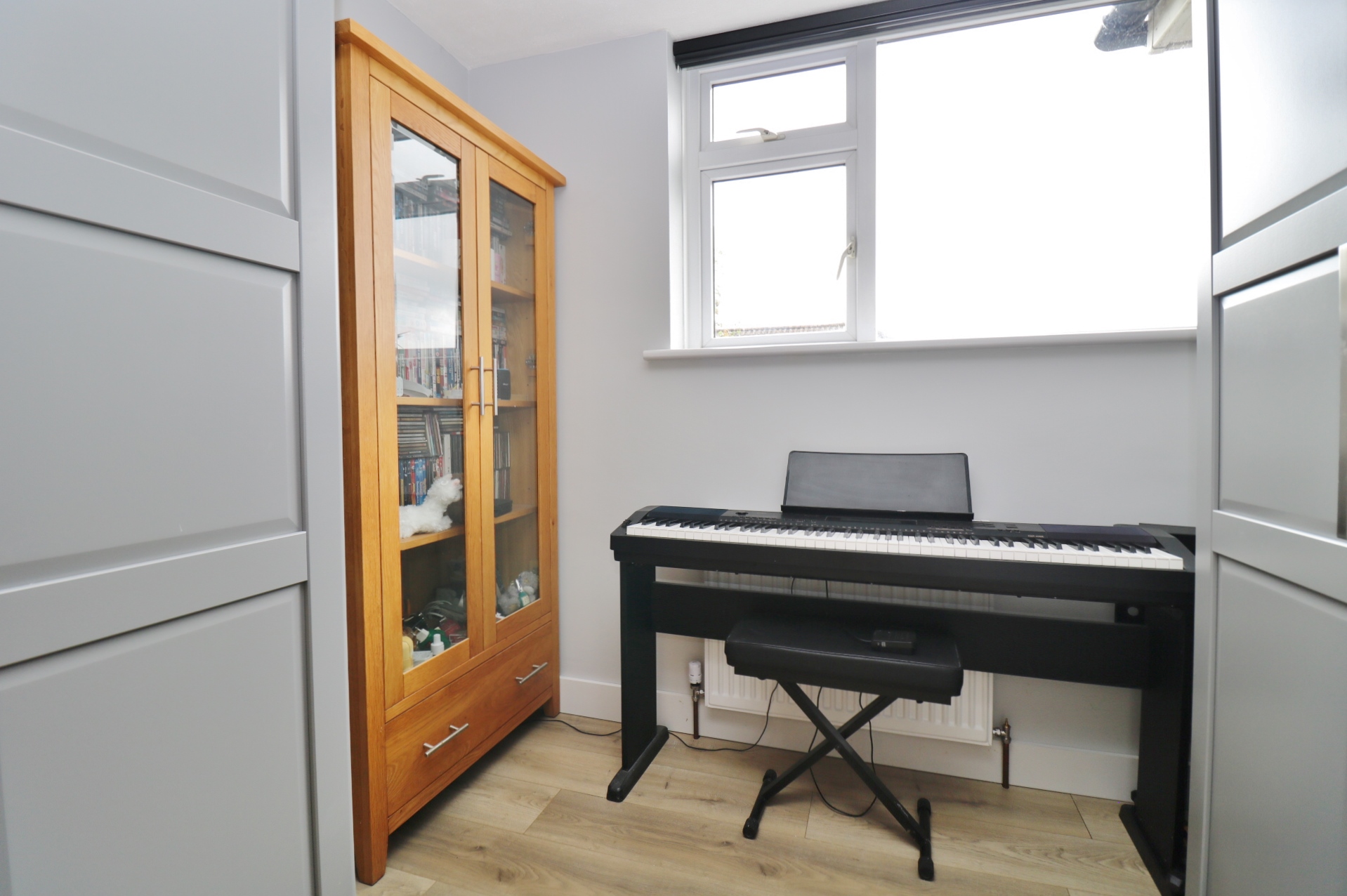 The generous master bedroom has fitted wardrobes along one wall and faces the front of the property, whilst the second bedroom overlooks the rear garden and also has built-in wardrobes. The third bedroom is also a double room, with bedrooms four and five both being single rooms, one of which is being used as a study and the other as a dressing room.
