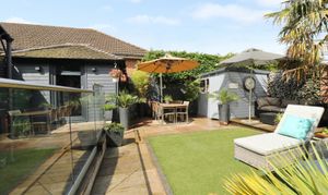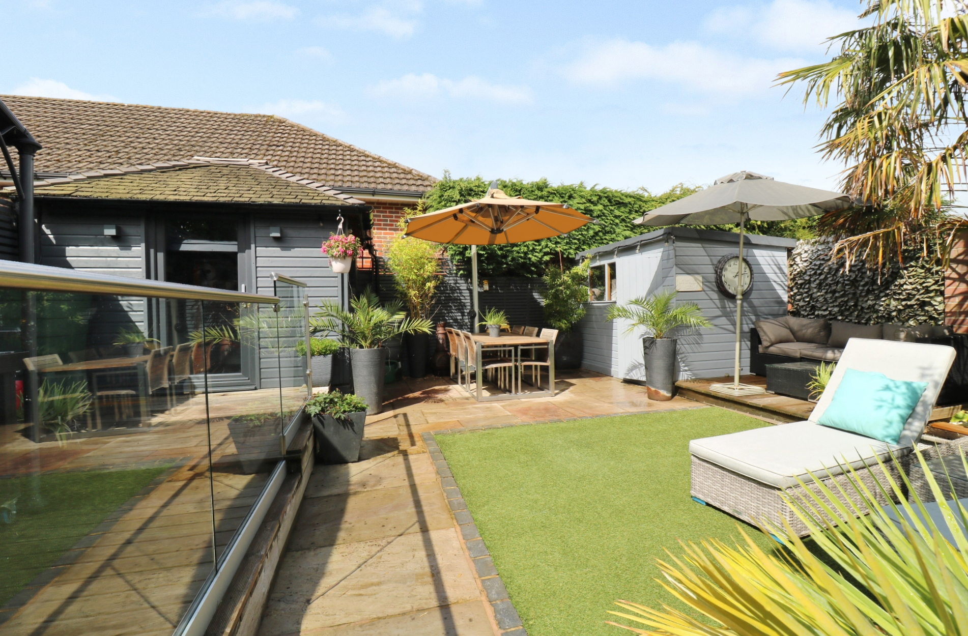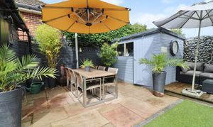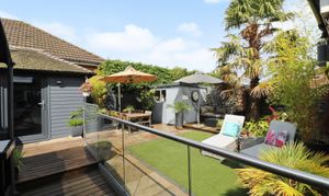 To the front there is ample driveway parking for 3-4 cars and access to the garage via an electric roller door. The beautiful rear garden has been fully landscaped providing both decked and paved seating areas, a section of artificial lawn, a storage shed and an insulated garden room/gym