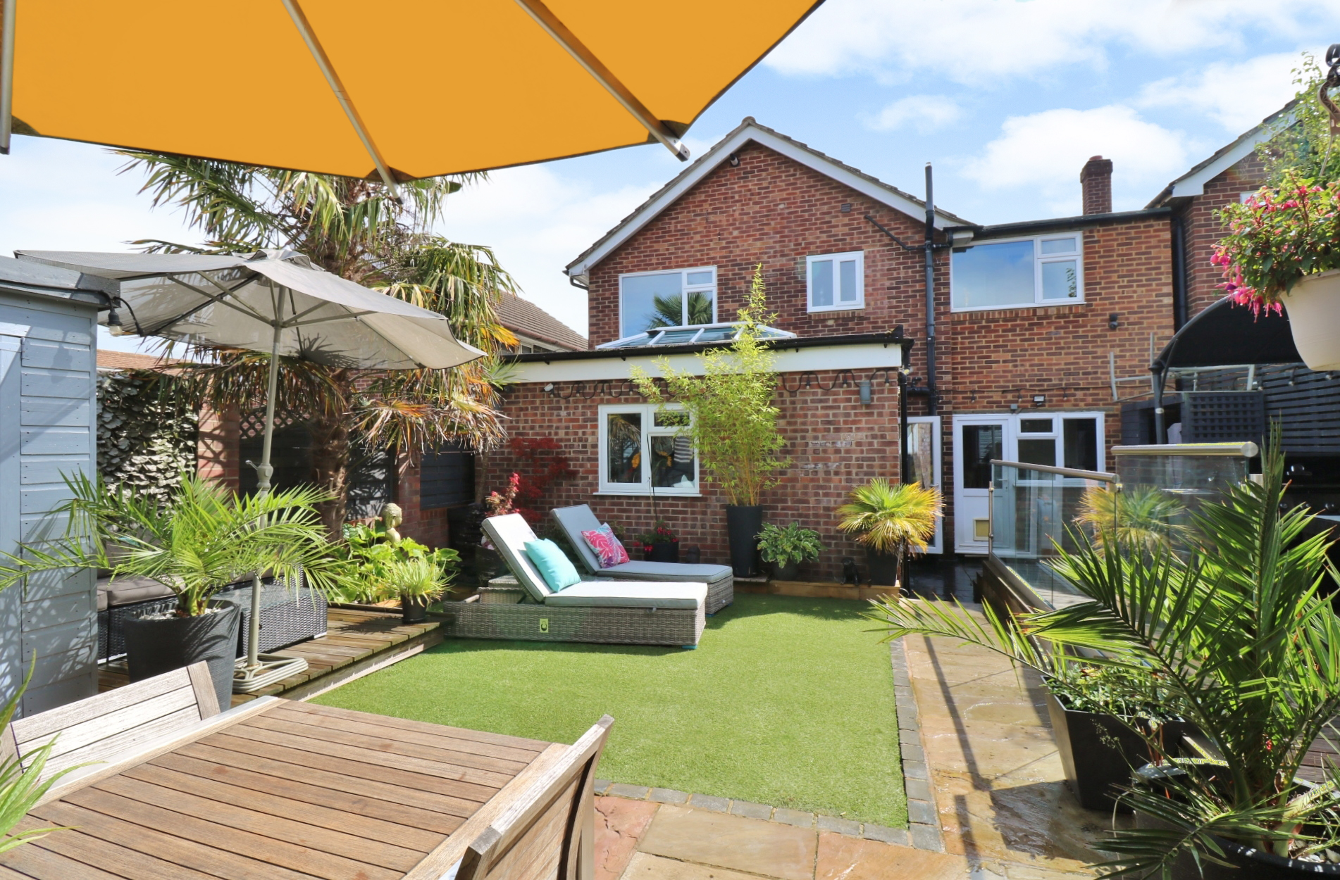 This extended and beautifully presented family home features an attractive, landscaped rear garden with a gym/garden room, an integral garage and driveway parking for 3-4 cars.