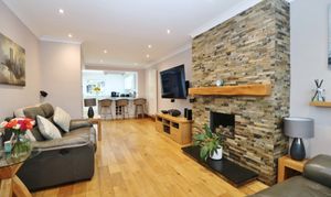 The entrance hall has stairs to the first floor and doors through to the lounge and modern WC. The good size lounge faces the front of the property, has a feature fireplace with a modern gas fire and solid oak flooring which continues through to the impressive, open plan kitchen/dining room.