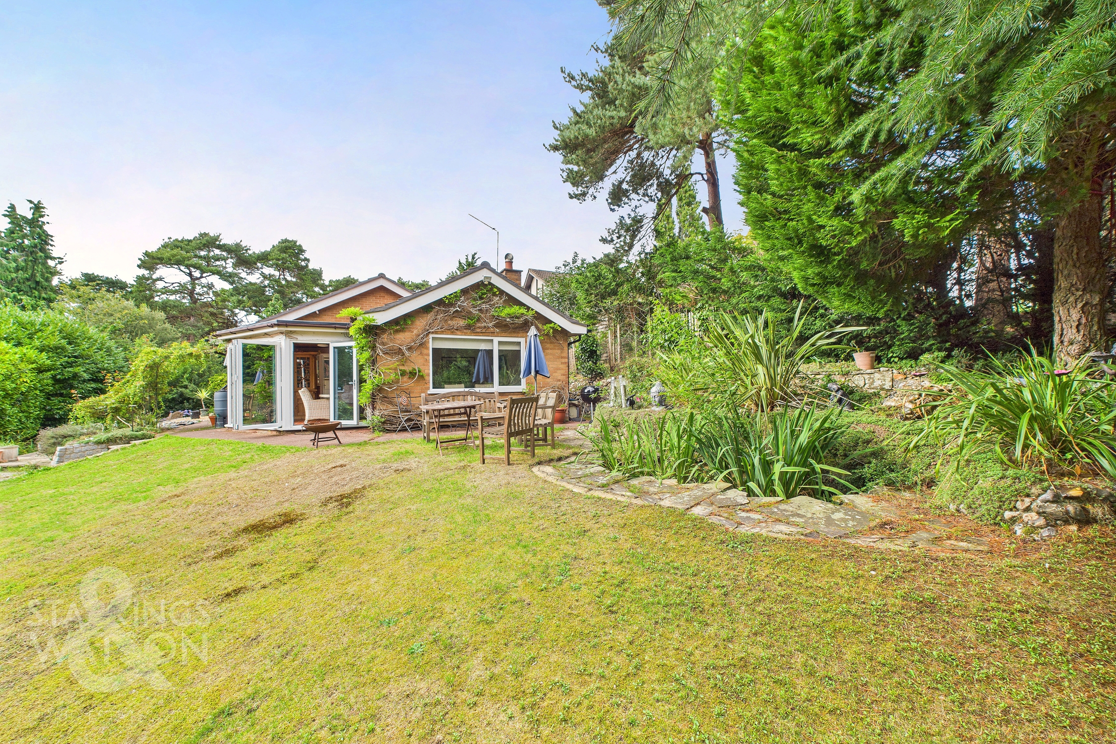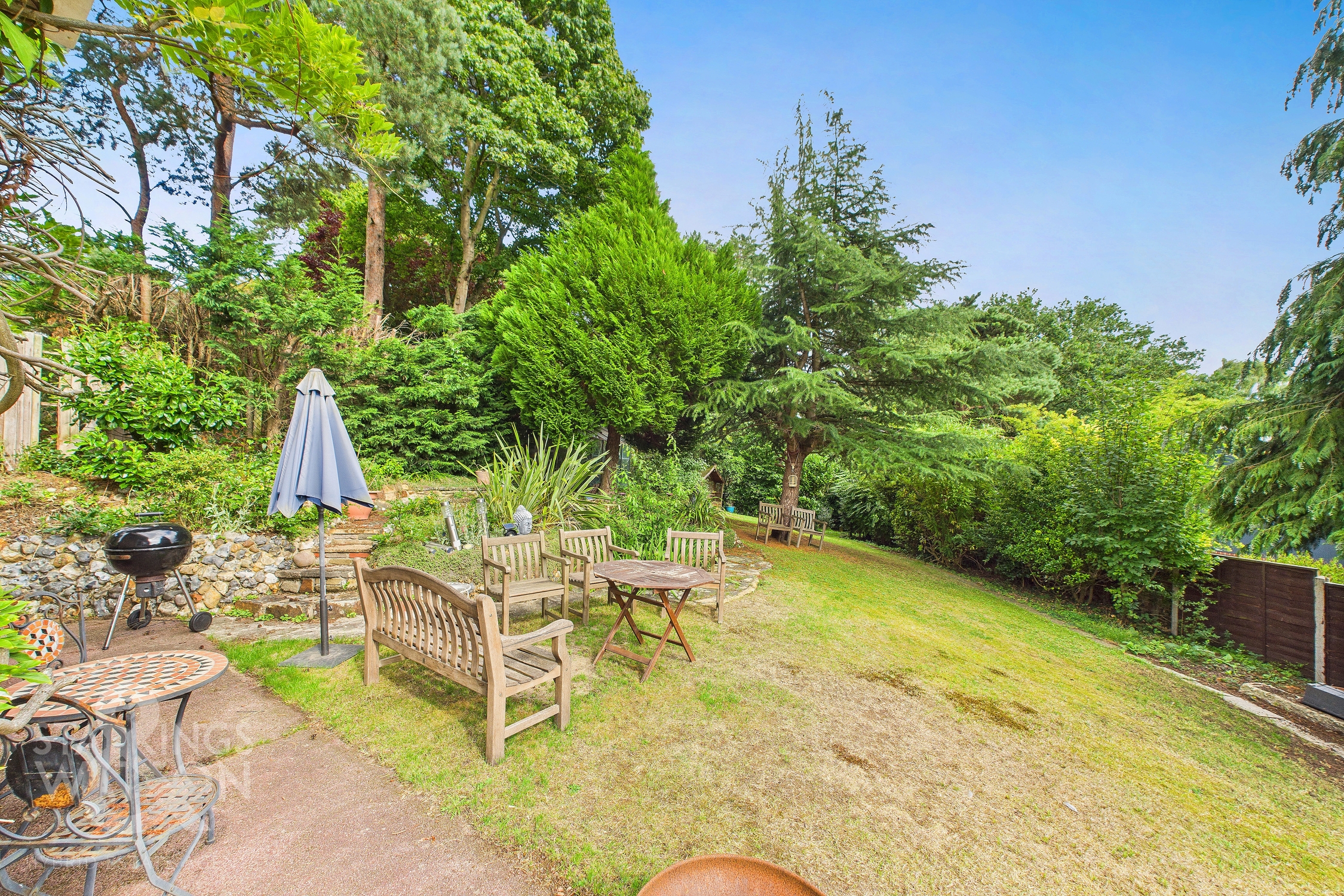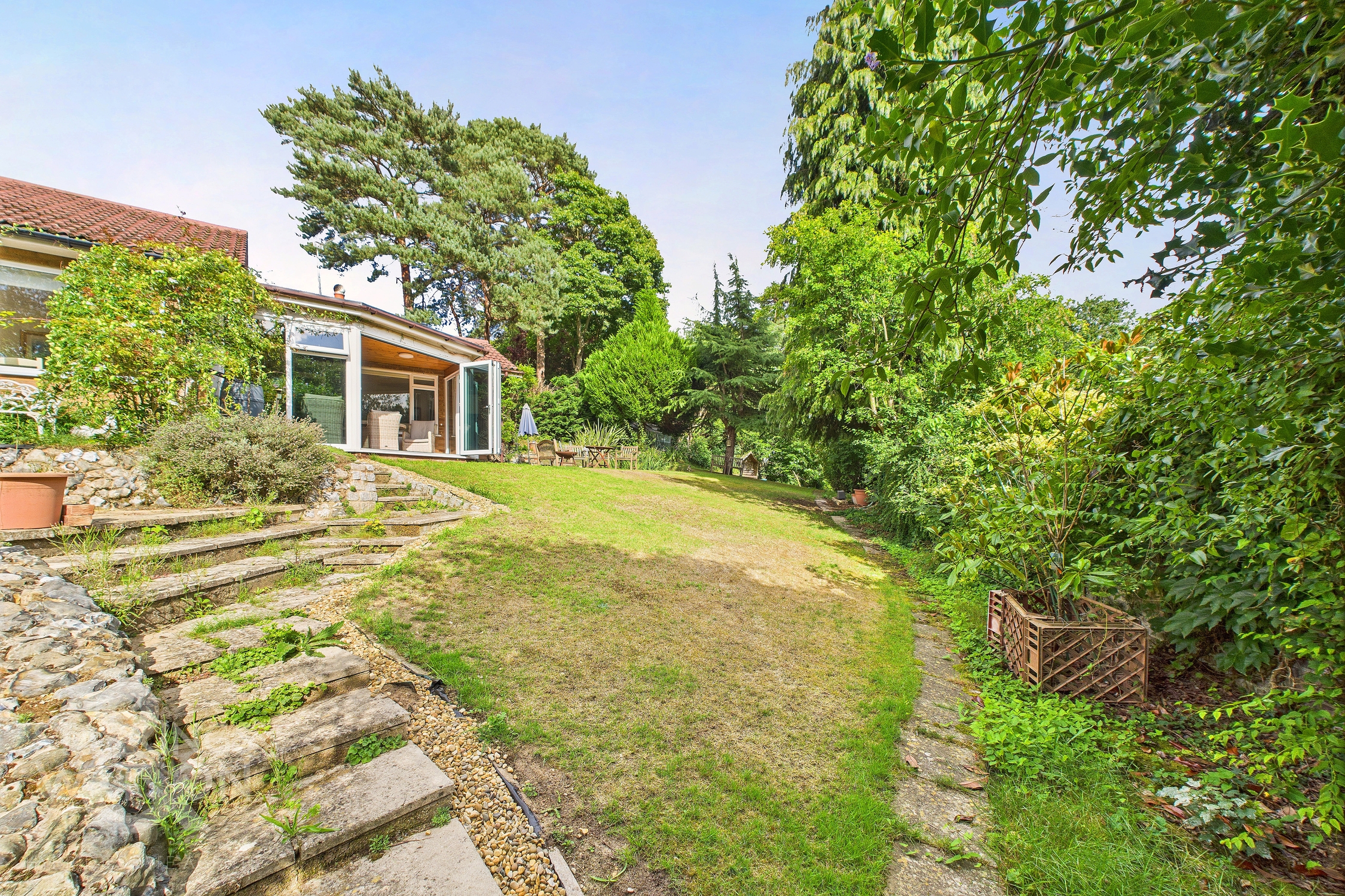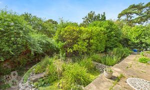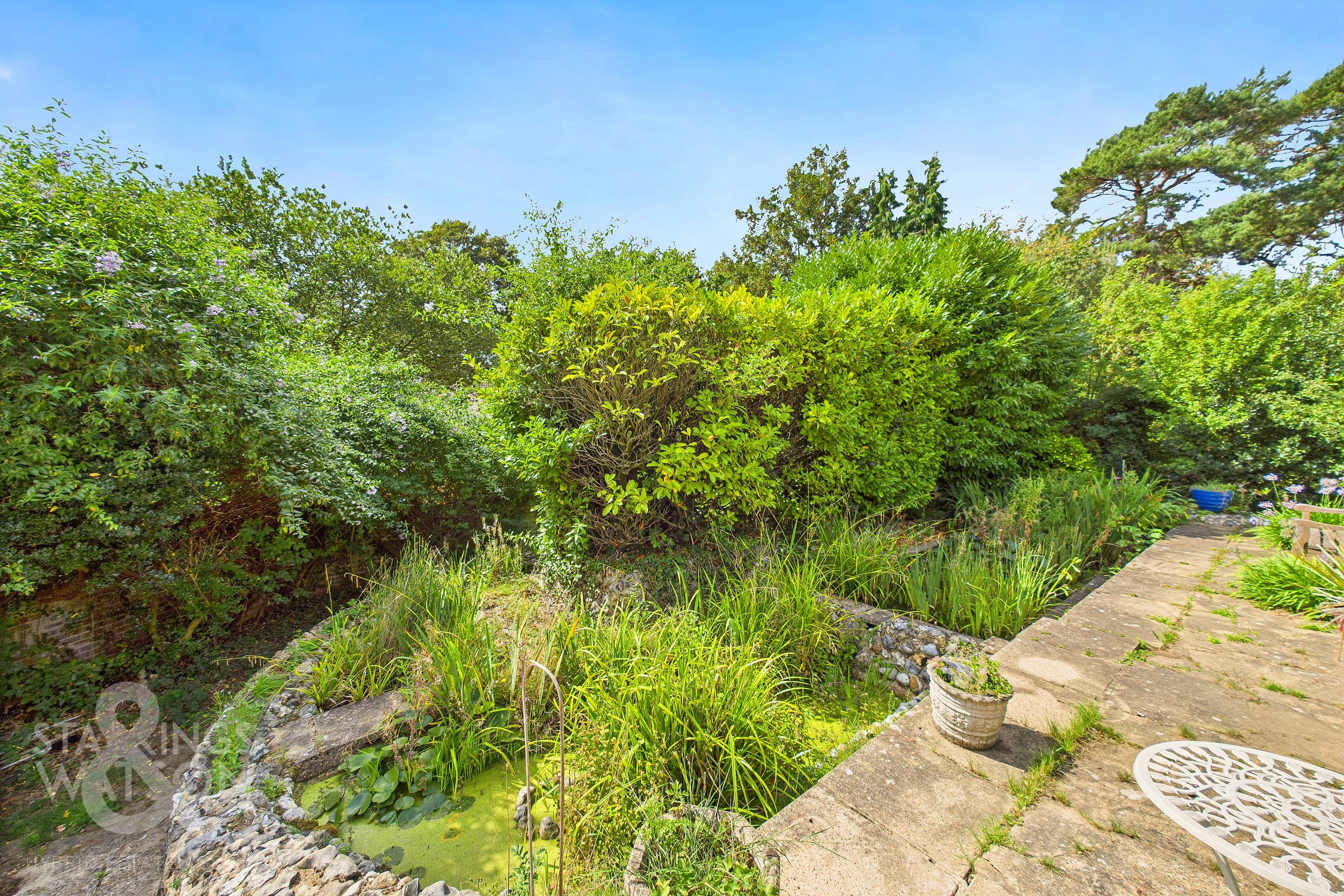 THE GREAT OUTDOORS Stepping outside, the stunning gardens surround the property, initially offering a well sized flagstone patio with space for outdoor seating to enjoy the surrounding green space and adjacent raised ponds. Steps lead down to a second patio leading to further green space at the front. The remainder of this expansive space is predominantly laid to lawn with a range of well established shrubs, plantings and tree's running along either border. A flagstone pathway bisects the lawn and leads to the bottom of the garden. A further expansive and mature garden, offering supreme privacy ideal for enjoying the surrounding nature.