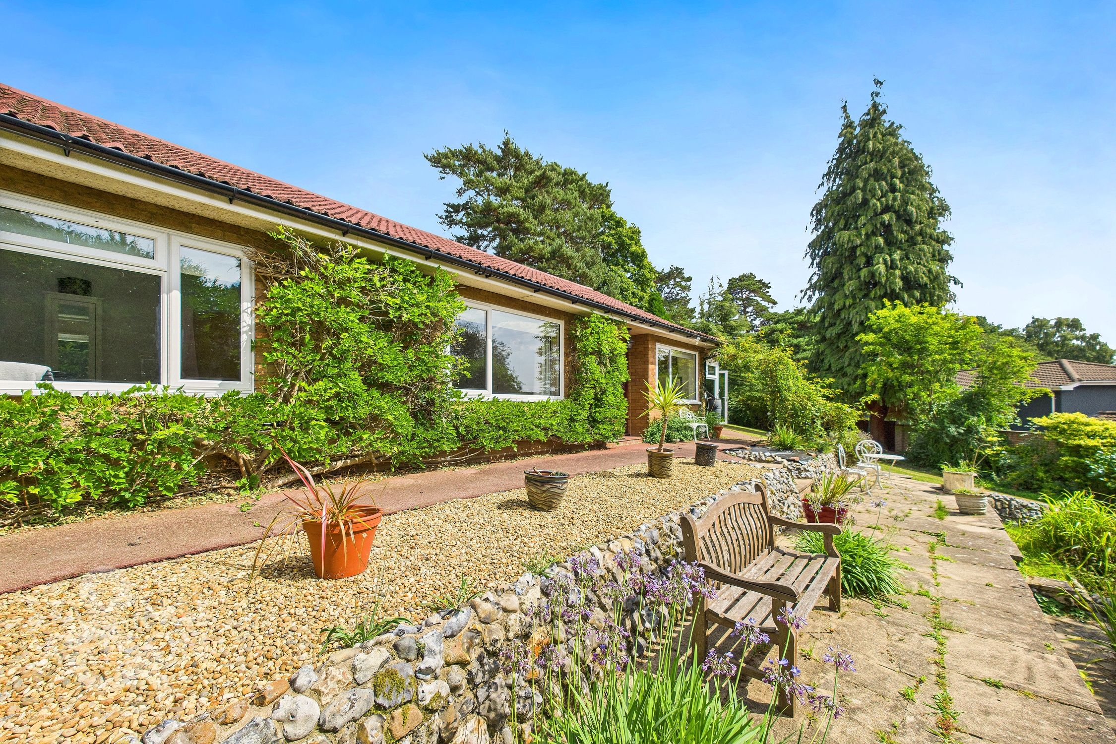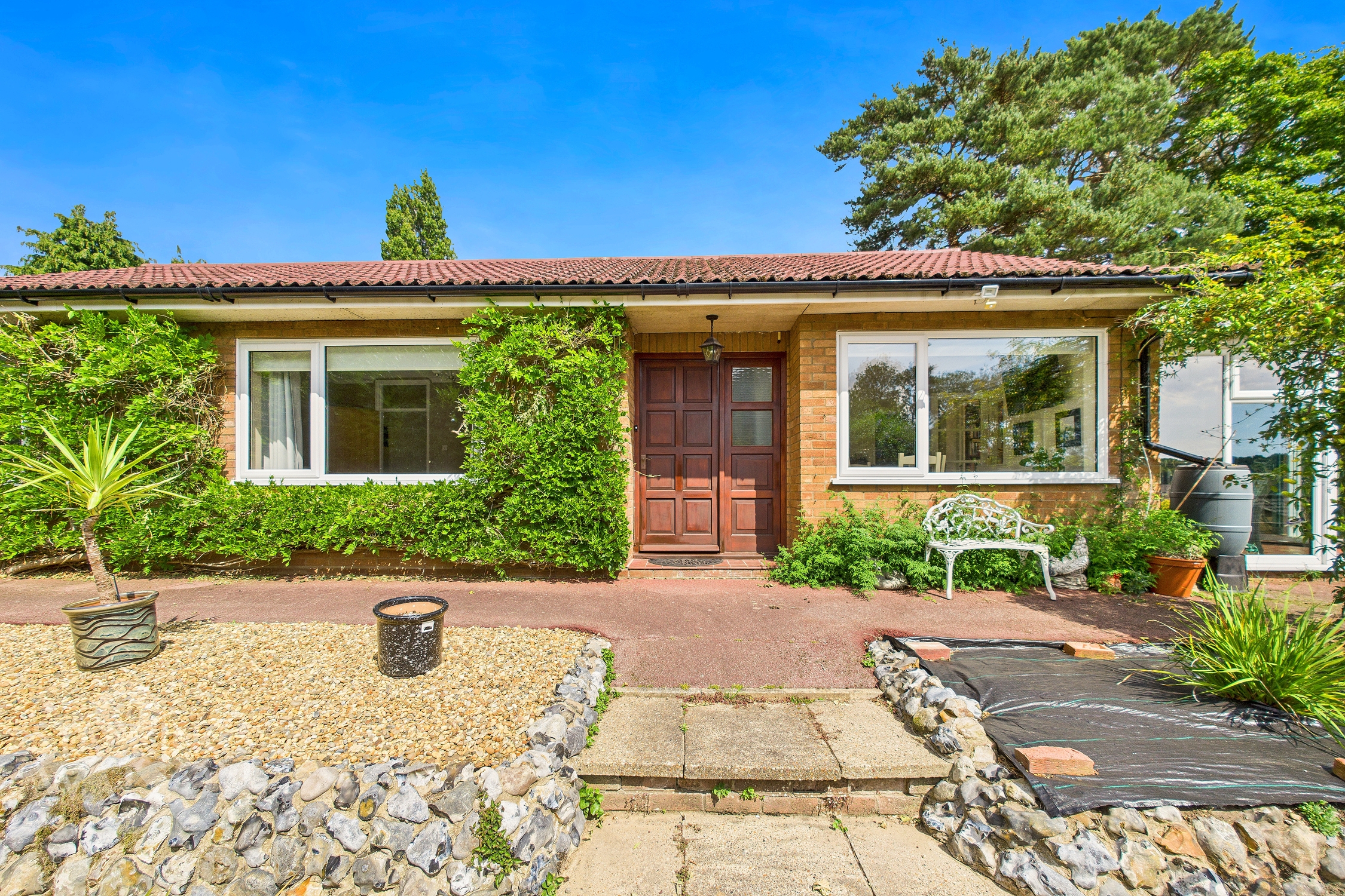 Set at the end of a PRIVATE ROAD with GATED ACCESS, this impressive DETACHED BUNGALOW extends to over 1,750 sq. ft (stms) and occupies a substantial 0.75-acre plot (stms). Enhanced with new photography and a virtual tour showcasing the expansive 0.7-acre grounds, driveway, and gardens, the property presents outstanding potential for investors. The welcoming HALLWAY ENTRANCE opens to all accommodation, leading to a remarkable 19' DUAL-ASPECT SITTING ROOM offering panoramic views across the gardens. The modern, high-specification KITCHEN features a freestanding island with BREAKFAST BAR seating, complemented by a dedicated UTILITY ROOM and a separate DINING ROOM. The contemporary GARDEN ROOM, now upgraded with NEW BI-FOLD DOORS, creates seamless indoor‑outdoor living. Three generously proportioned BEDROOMS—each benefiting from an EN SUITE—highlight the unusually large room sizes throughout the home. Externally, the property offers extensive DRIVEWAY PARKING and a DOUBLE GARAGE. Surrounding the property, the landscaped gardens include mature planting, sweeping lawns, and ample space for relaxation, recreation, and entertaining.