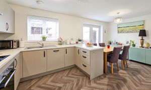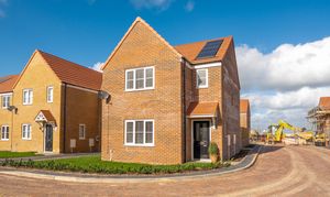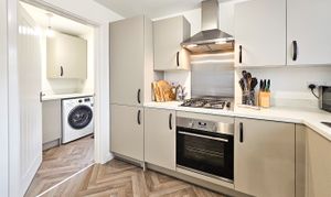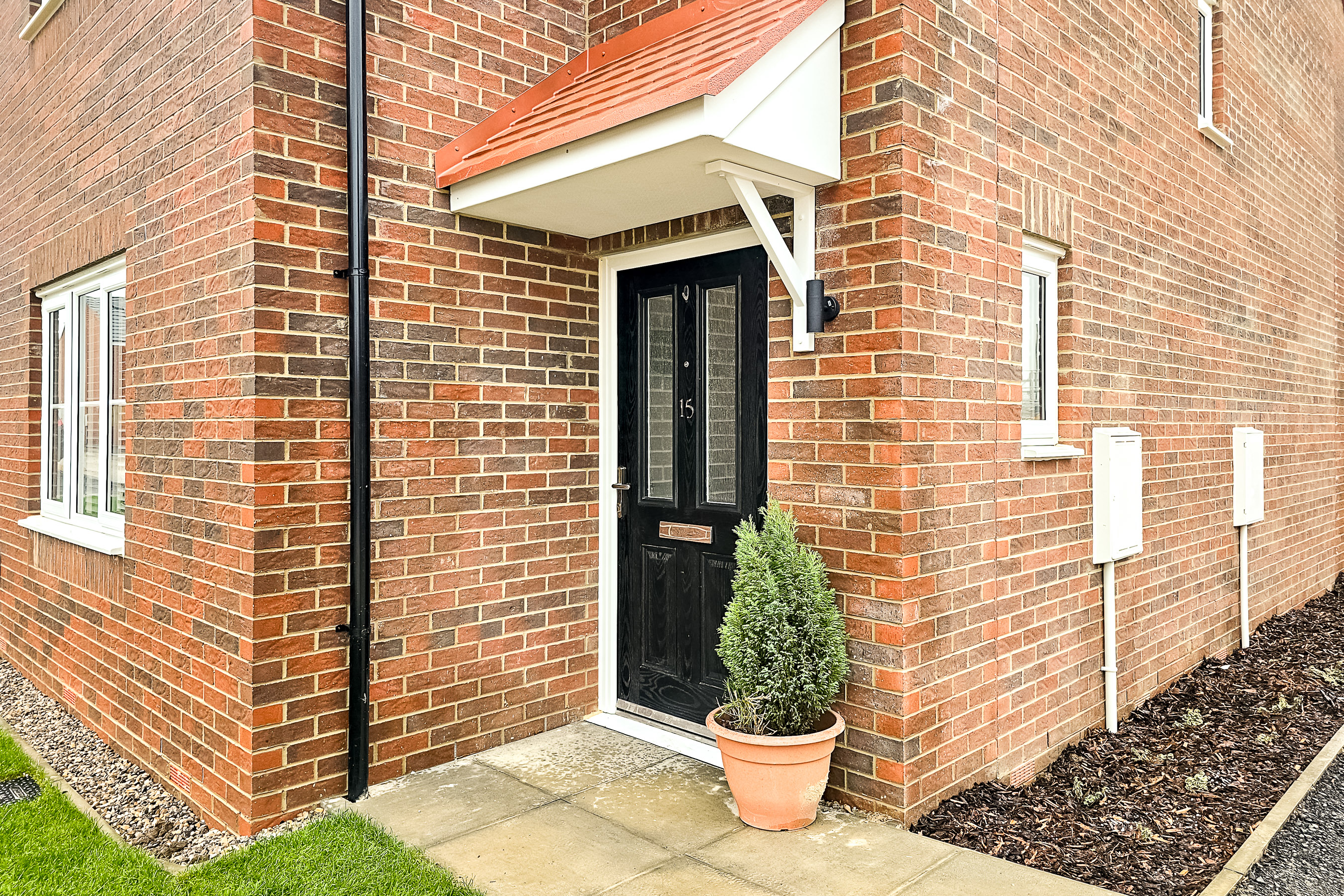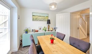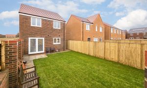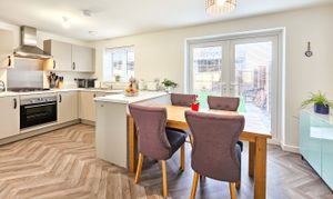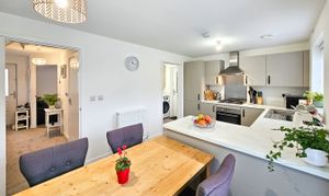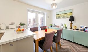 The attractive red-brick frontage is complemented by a neat, low-maintenance lawn and leads into a welcoming entrance hallway with useful storage and a ground-floor WC. To the front of the property, a bright and comfortable lounge provides an inviting living space, while to the rear, the modern kitchen/diner with plenty of space for a dining table, features extensive fitted cabinetry, integrated appliances and access to a separate utility room with additional storage. From here, there is external access to the side of the house, wrapping around to both the front and rear. French doors from the kitchen open directly onto the enclosed rear garden, which offers a patio seating area and a low-maintenance lawn, perfect for time outside.