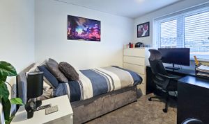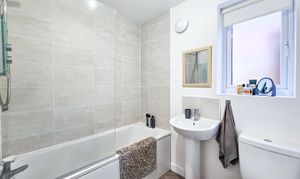 To the first floor, the spacious principal bedroom benefits from a stylish en-suite shower room. Two further well-proportioned single bedrooms are served by a contemporary family bathroom, complete with attractive tiling and an over-bath shower. A useful landing storage cupboard completes the accommodation.
