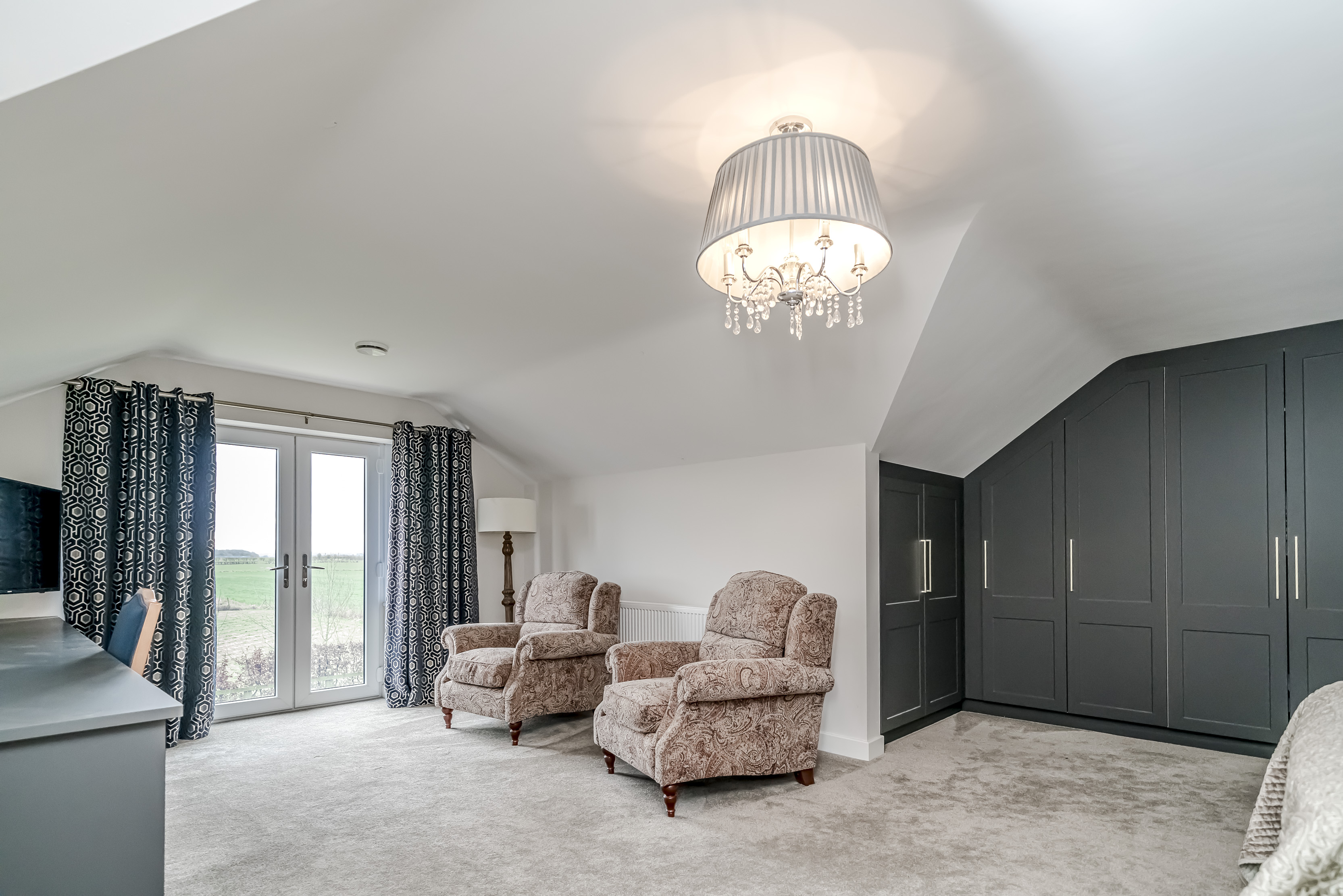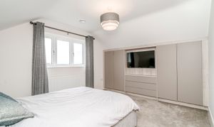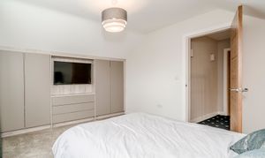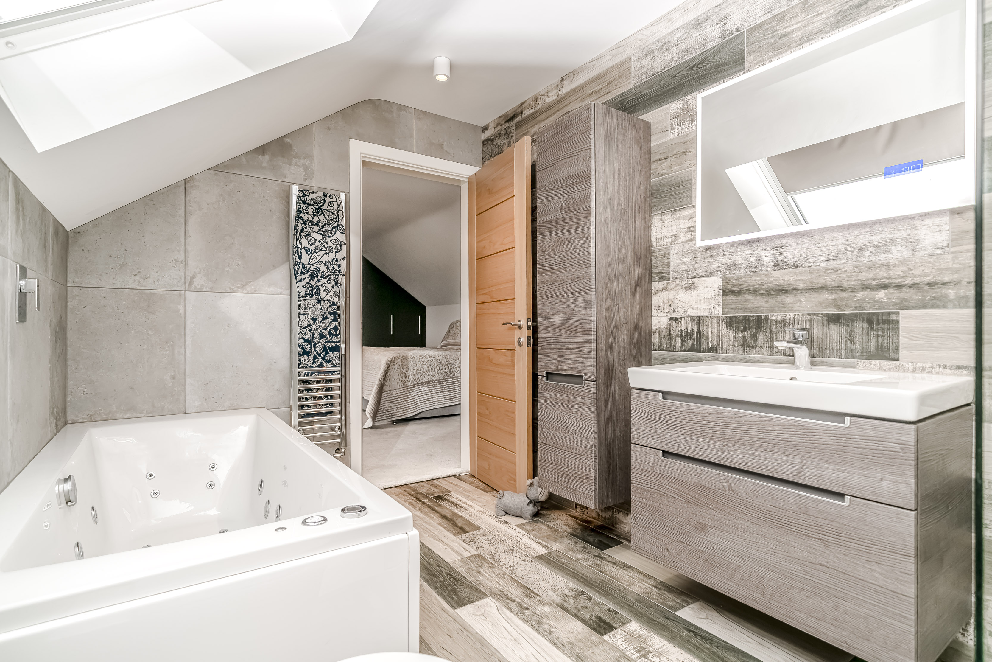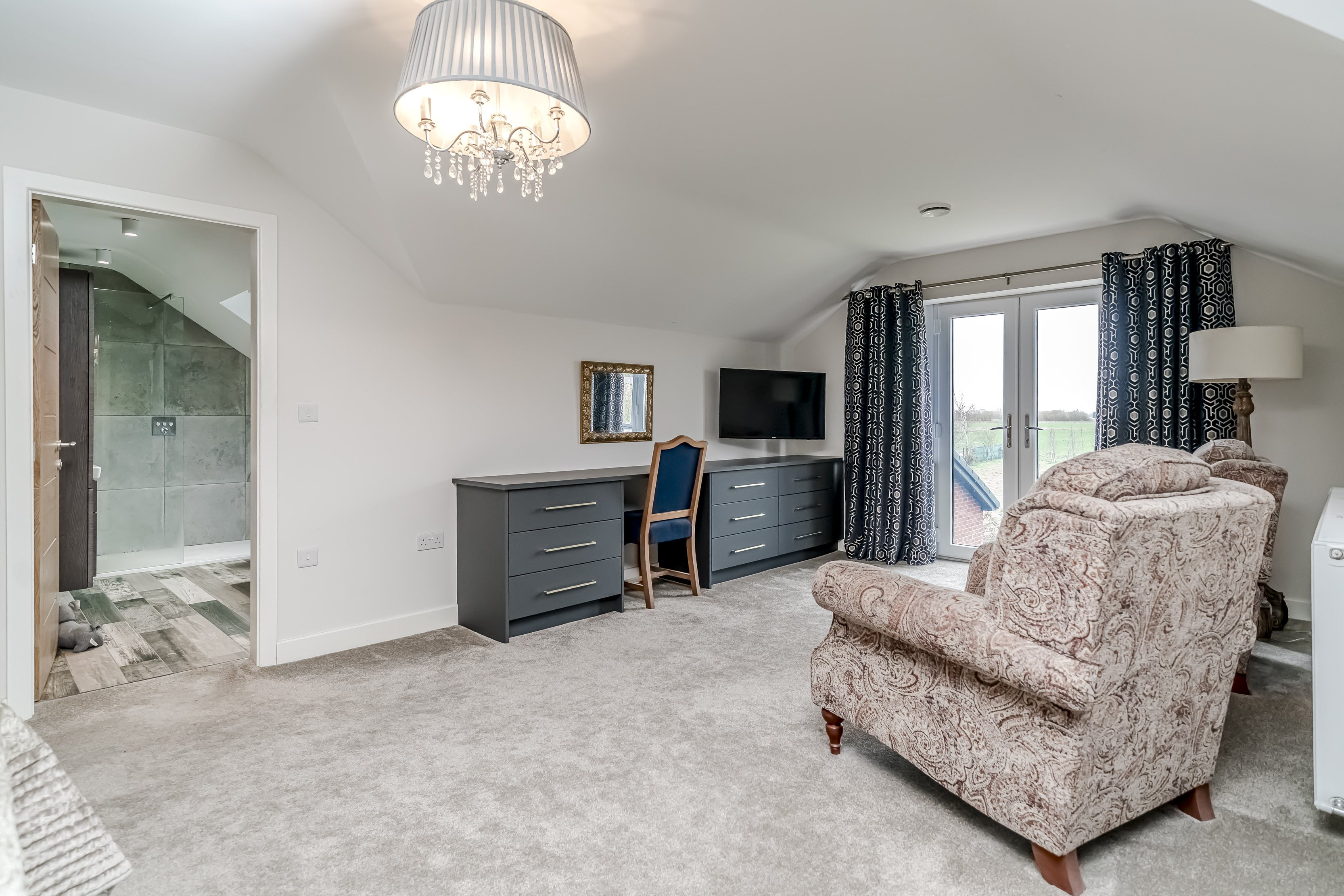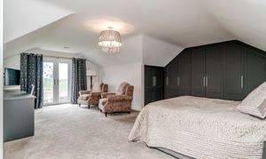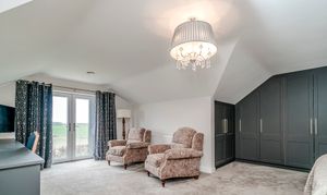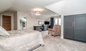 Ascending to the upper floor, Holly Lodge continues to impress with indulgent Villeroy & Boch bathrooms. These luxurious spaces offer not only functionality but a retreat-like atmosphere, featuring jacuzzi baths, Grohe showers, and heated Bluetooth speaker mirrors, which elevate the private quarters to new standards of comfort. The generously sized bedrooms offer serenity and respite, with tranquil countryside views enhancing the sense of retreat.