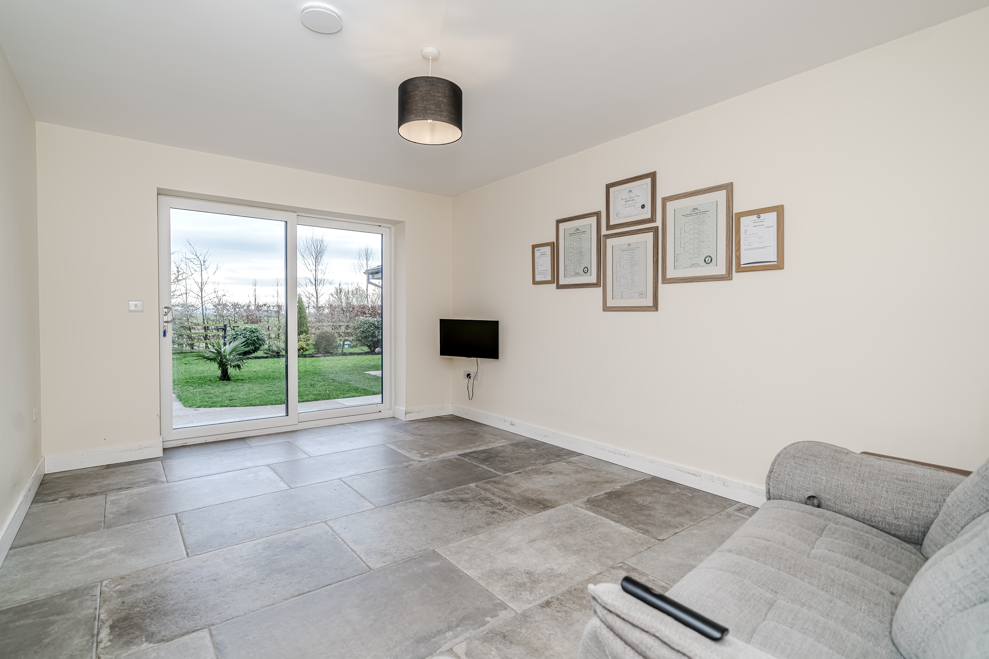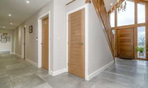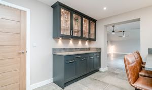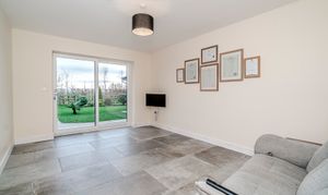Sustainability is a cornerstone of Holly Lodge, integrated seamlessly into the home’s fabric. With an EPC A rating, the residence features an Oschner ground source heat pump utilizing three 110-meter boreholes, guaranteeing efficiency. Complementing this are the full ground-floor underfloor heating, an MVHR system, solar panels, and rainwater harvesting, which together ensure exceptional environmental performance without compromising on comfort or style.
