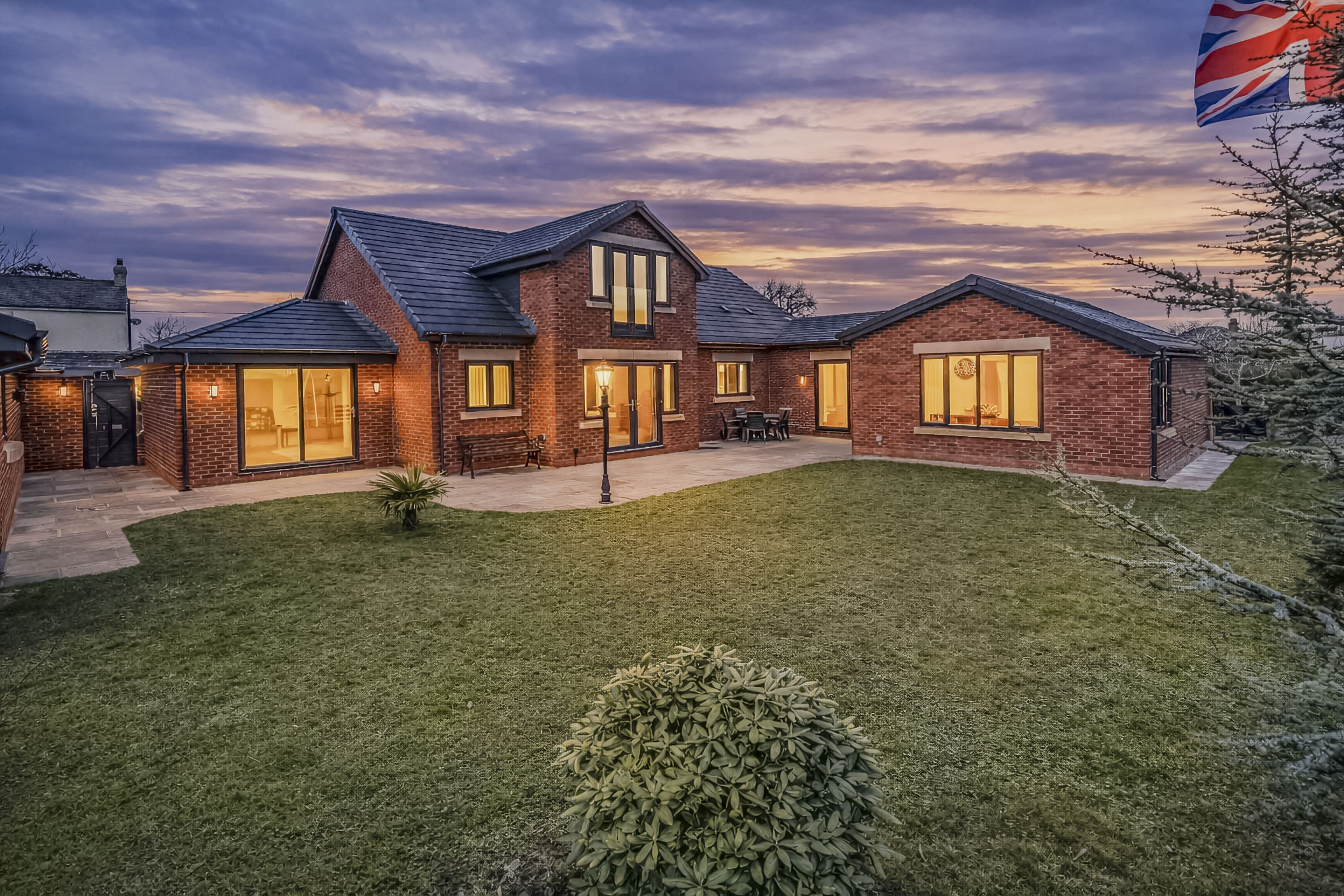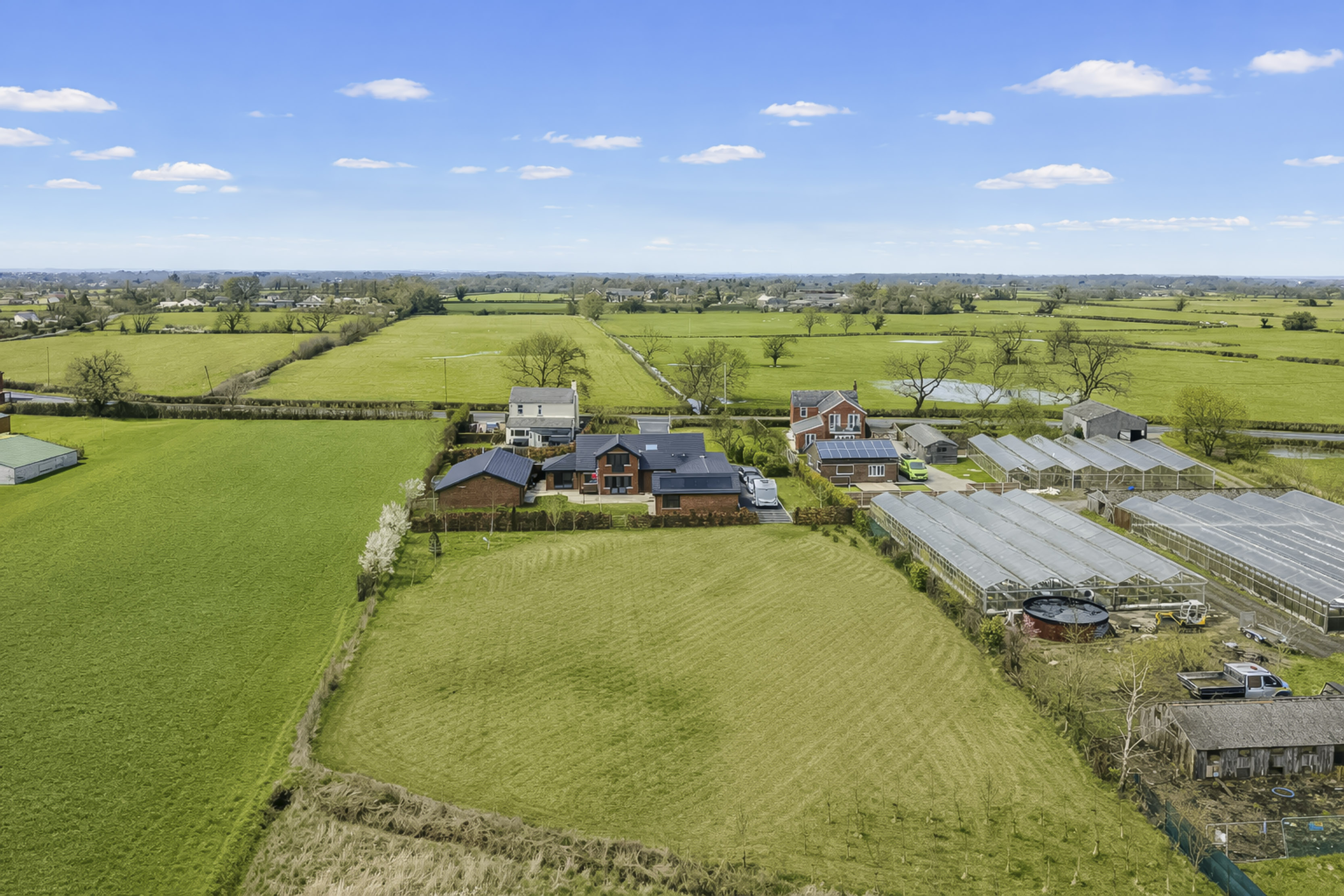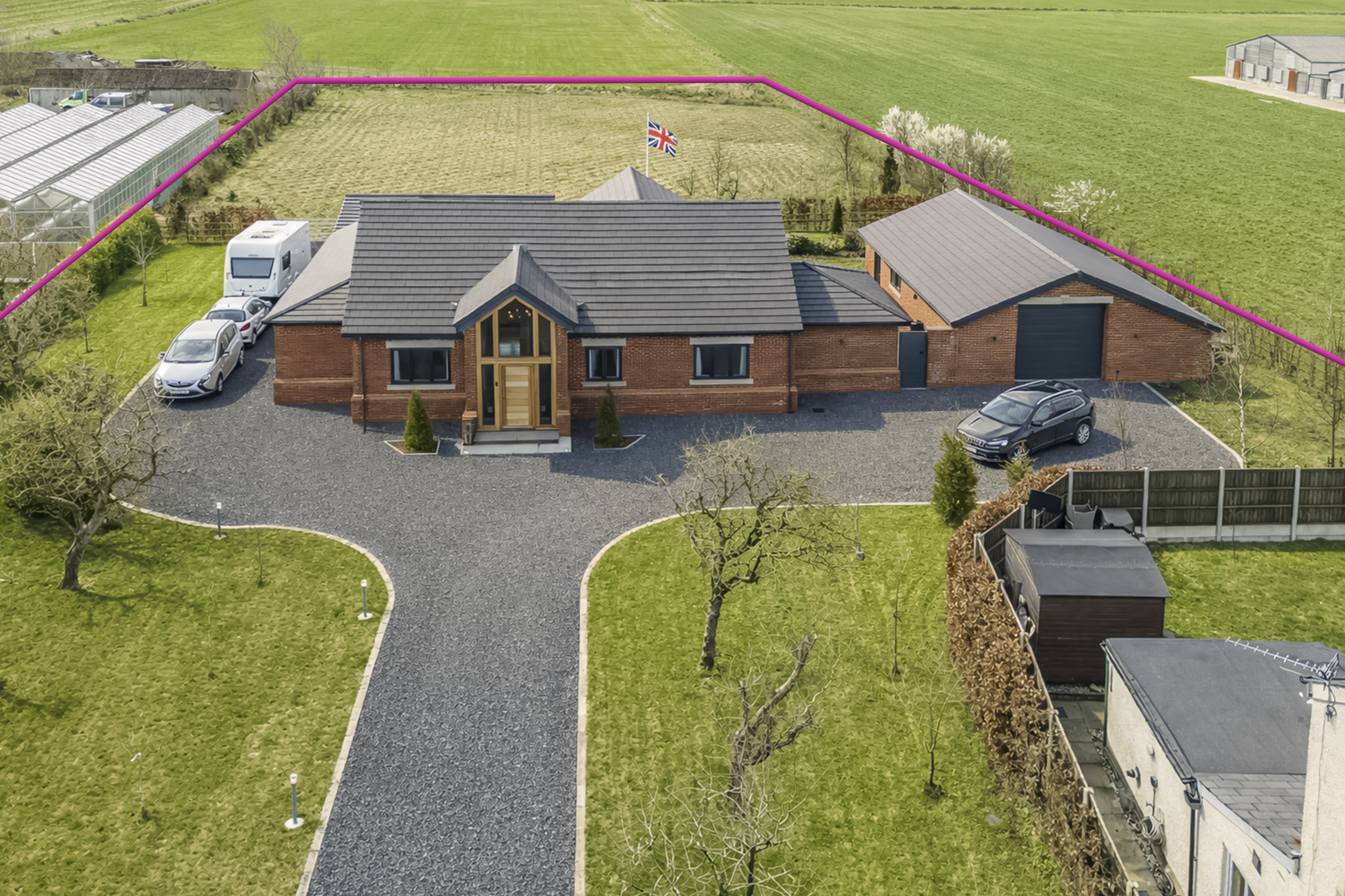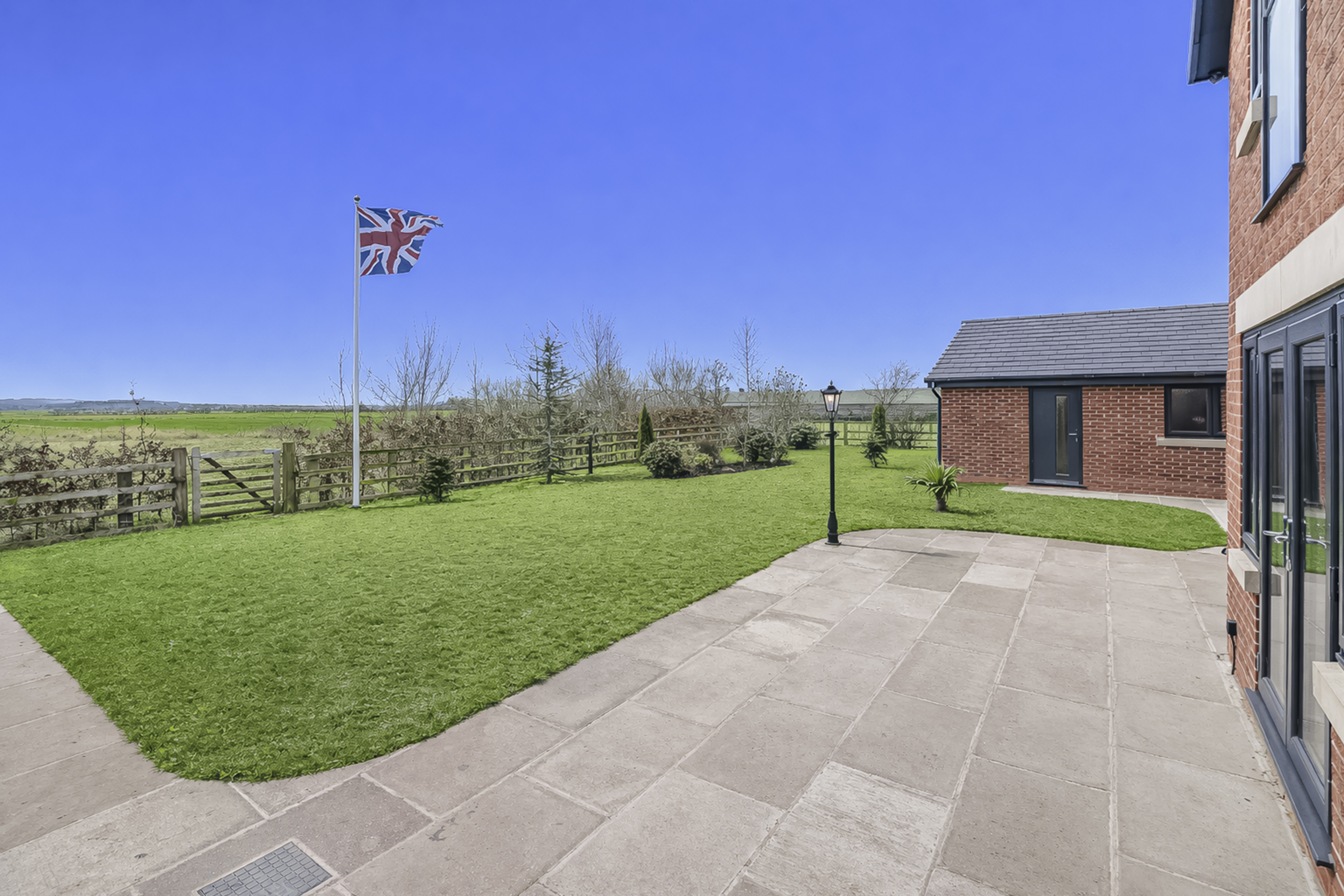 Holly Lodge, nestled behind the private gates along the prestigious Gill Lane, epitomizes modern architectural brilliance and sustainable living. This contemporary country home extends over approximately 4,542 square feet and includes a substantial 941 square foot garage/workshop. Completed in 2023 and further enhanced with meticulously crafted rear and side extensions in 2025, Holly Lodge is a residence created not just to impress but to perform with outstanding efficiency and elegance.