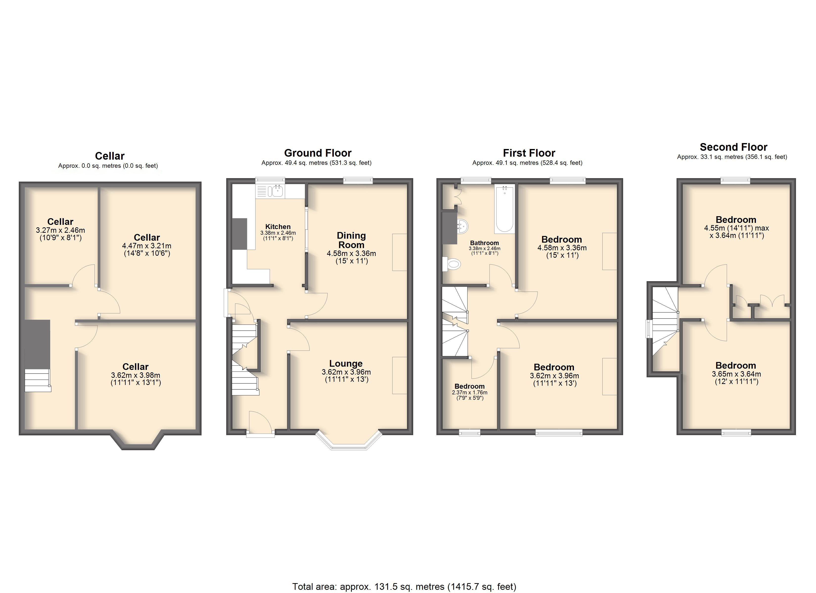 - Four Double Bedrooms, One Single Bedroom