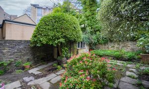 Mature low-maintenace gardens to front and rear, brick-built outbuilding with power, patio areas with borders and mature trees. External power socket.
