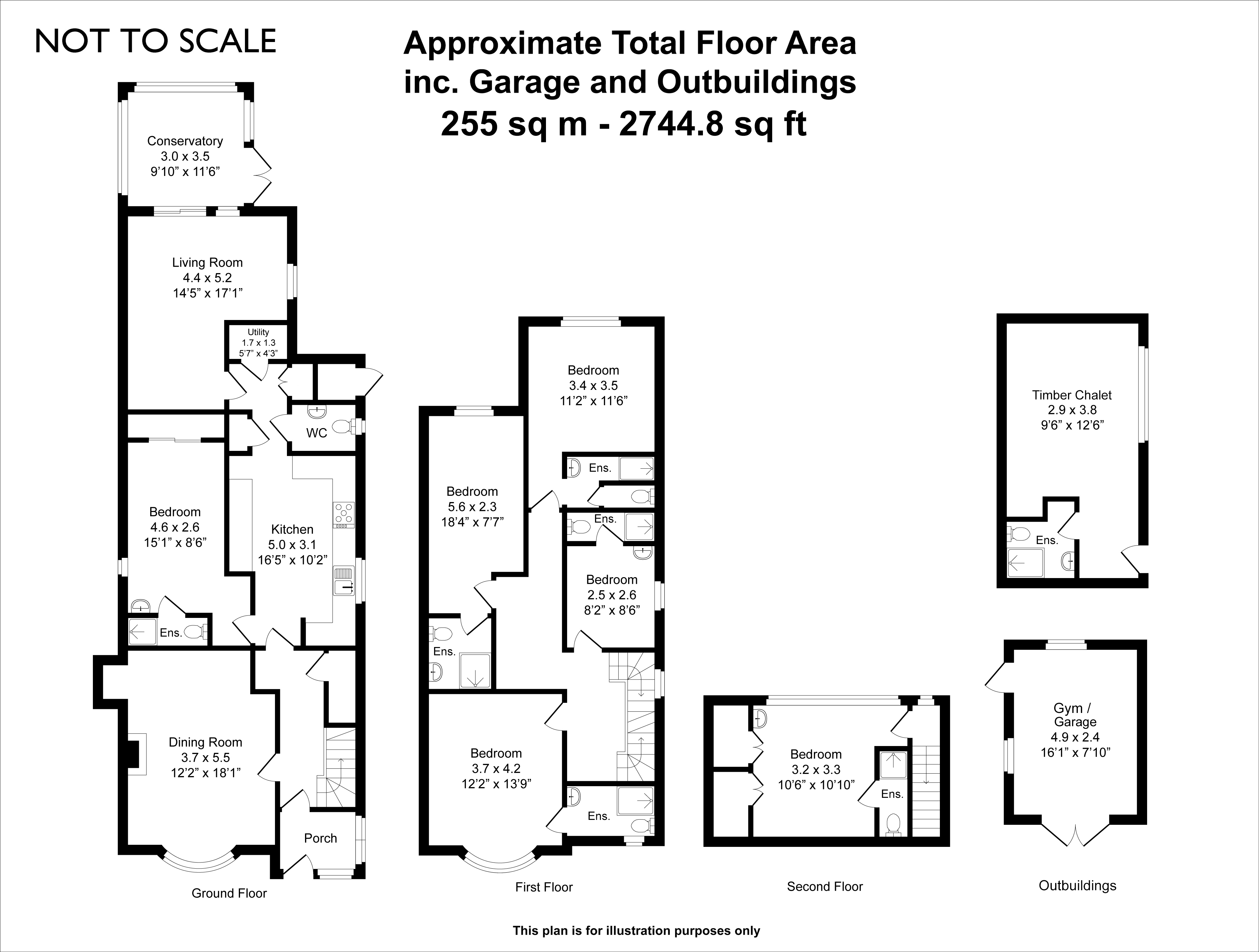 The principal suite is a true sanctuary, featuring a luxurious en-suite bathroom and ample storage. Five further spacious bedrooms over 2 floors provide flexible options for family, guests, or home working, with additional en-suite facilities enhancing comfort and privacy.