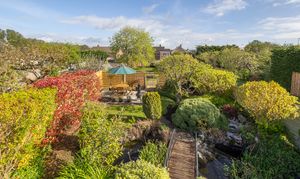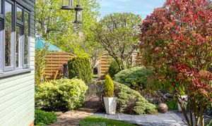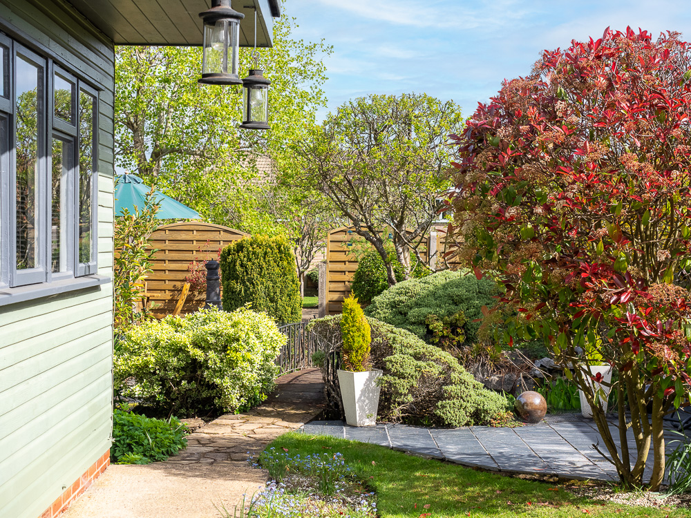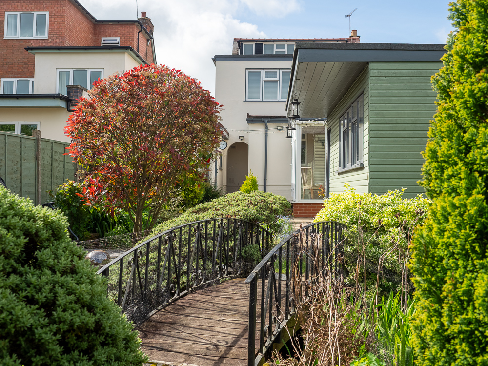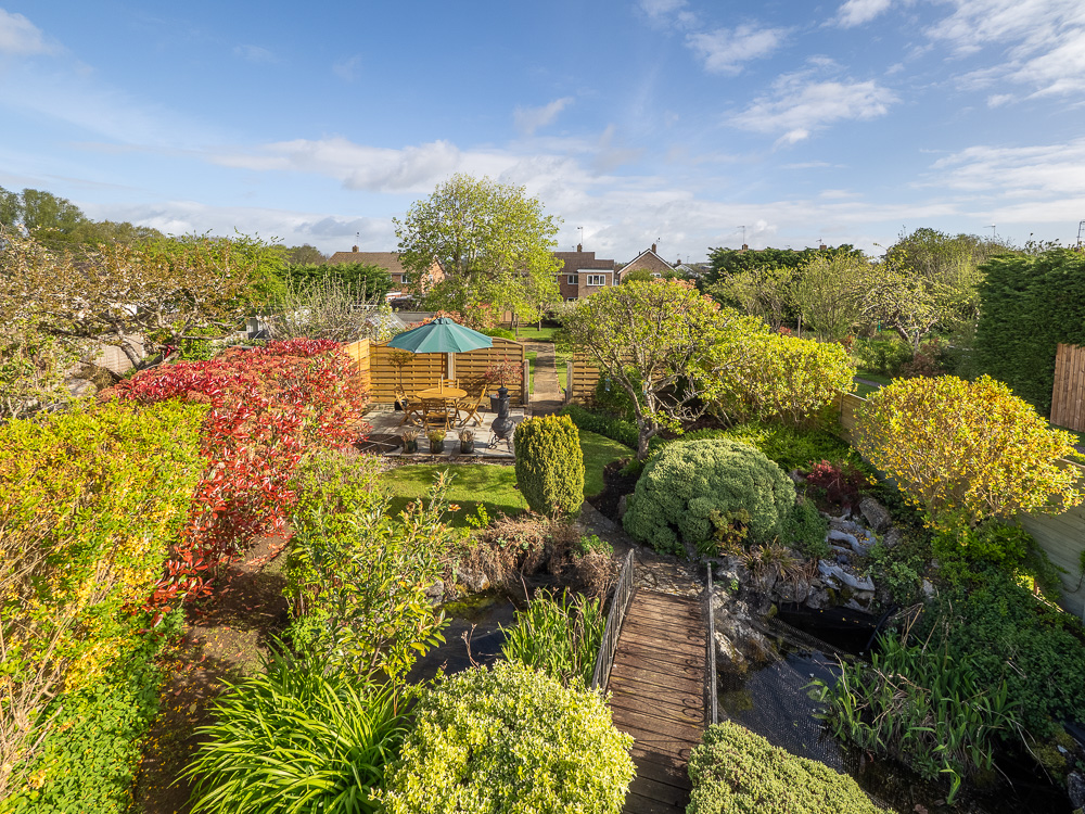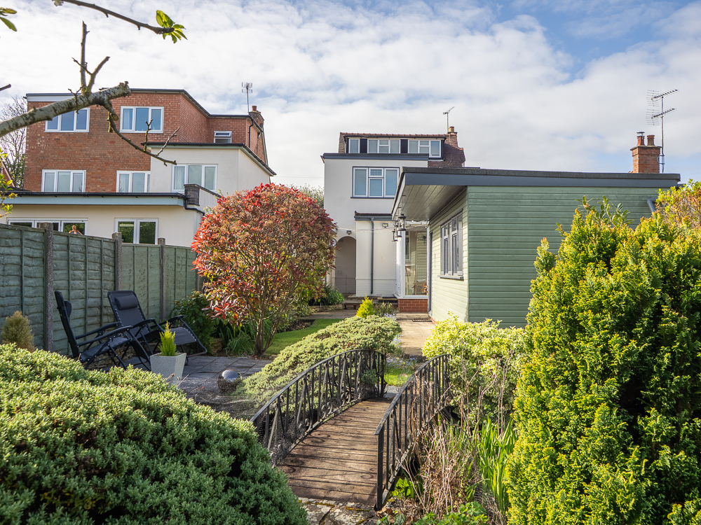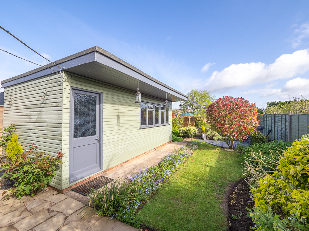 Outside will no doubt win you over! A tranquil retreat that would be perfect for relaxing after a hard day. Mature shrubs, low maintenance lawn, fish pond, choice of patio spaces, what more could you ask for? Practicality is further enhanced by a substantial garage, perfect for additional storage or home gym, alongside spacious off street parking for multiple vehicles, catering to the needs of a busy household. The presence of a charming chalet offers further versatility, whether as a peaceful retreat, a home office, games room or creative studio complete with shower and WC, while the delightful fish pond introduces a tranquil focal point, adding to the home’s unique character.