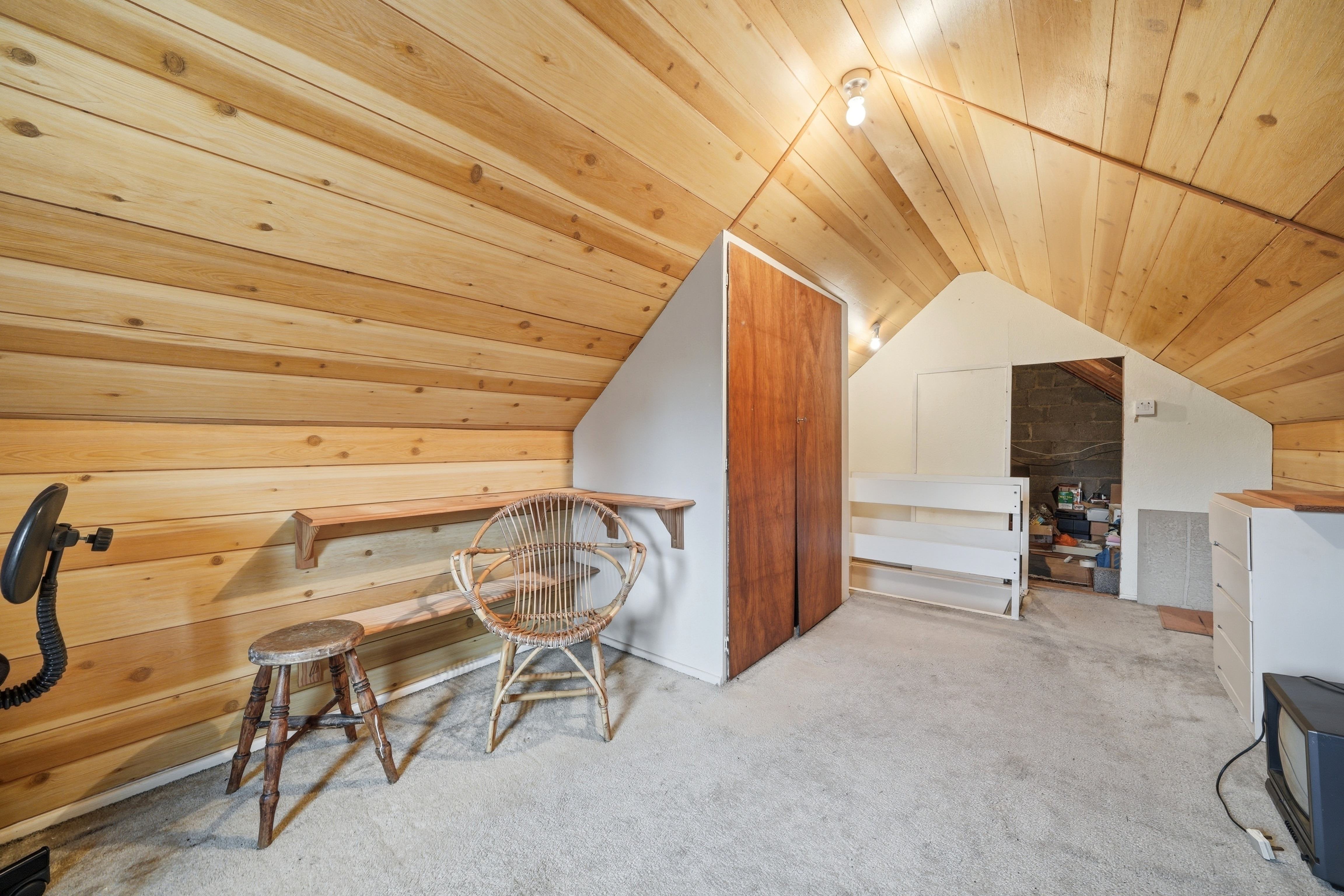 With a uPVC double glazed window to the gable, there are two ceiling light points, twin door fitted cupboard, access to the Eves and to one side a doorway provides access to a large store.