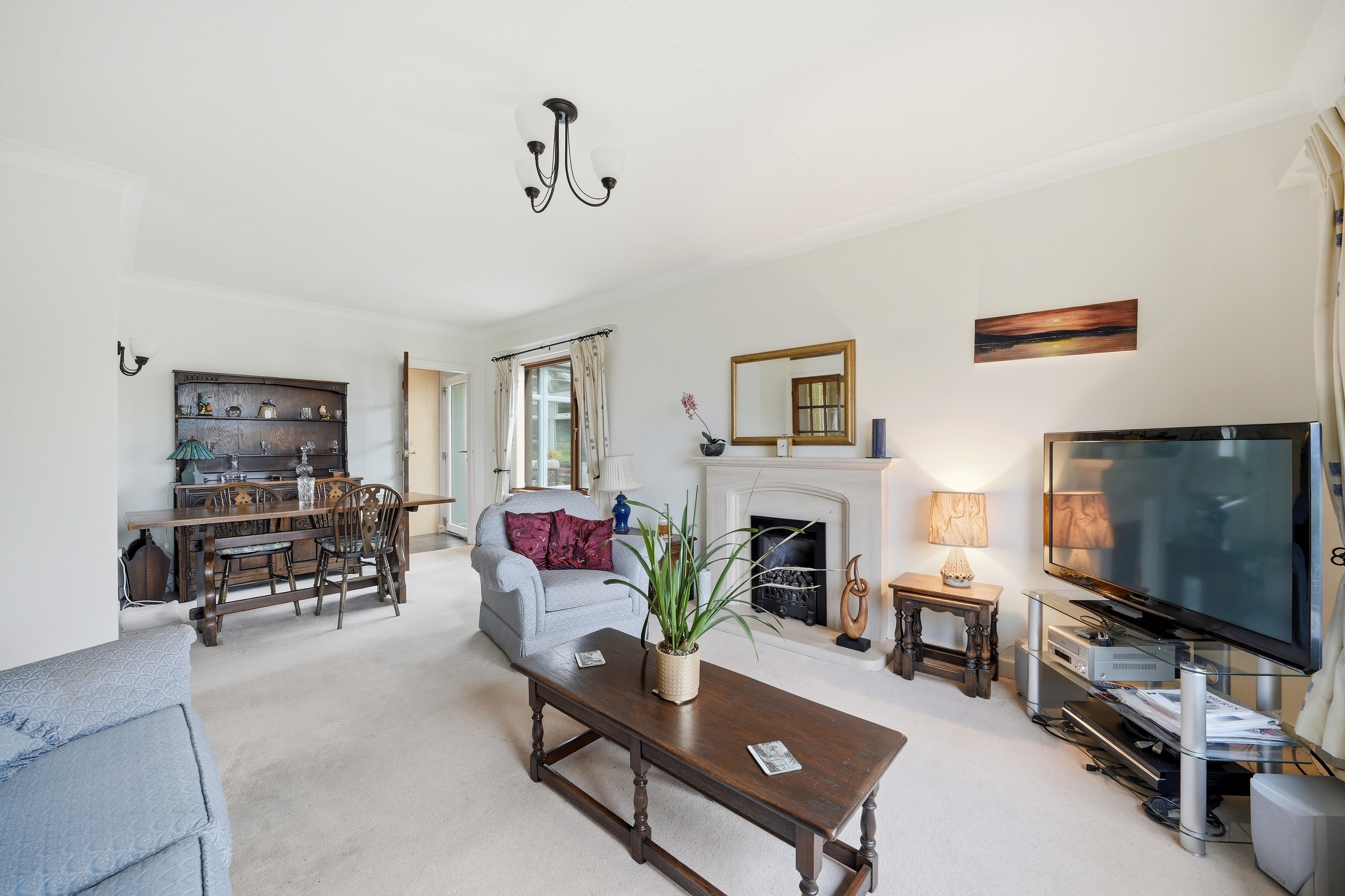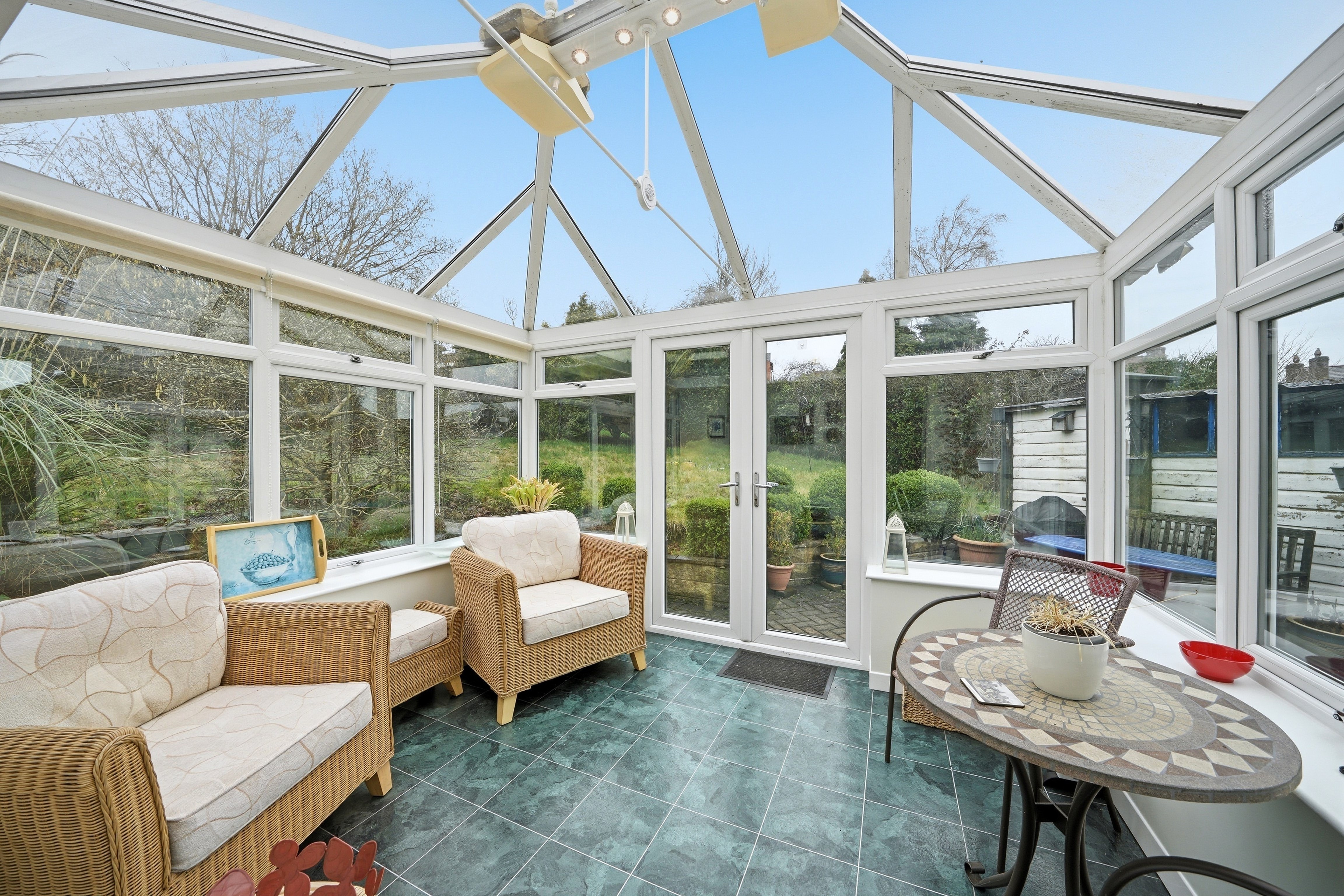 This has uPVC double glazed windows to three elevations together with French doors and with a lovely aspect over the property’s large gardens. There are inset ceiling downlighters and a central heating radiator.