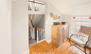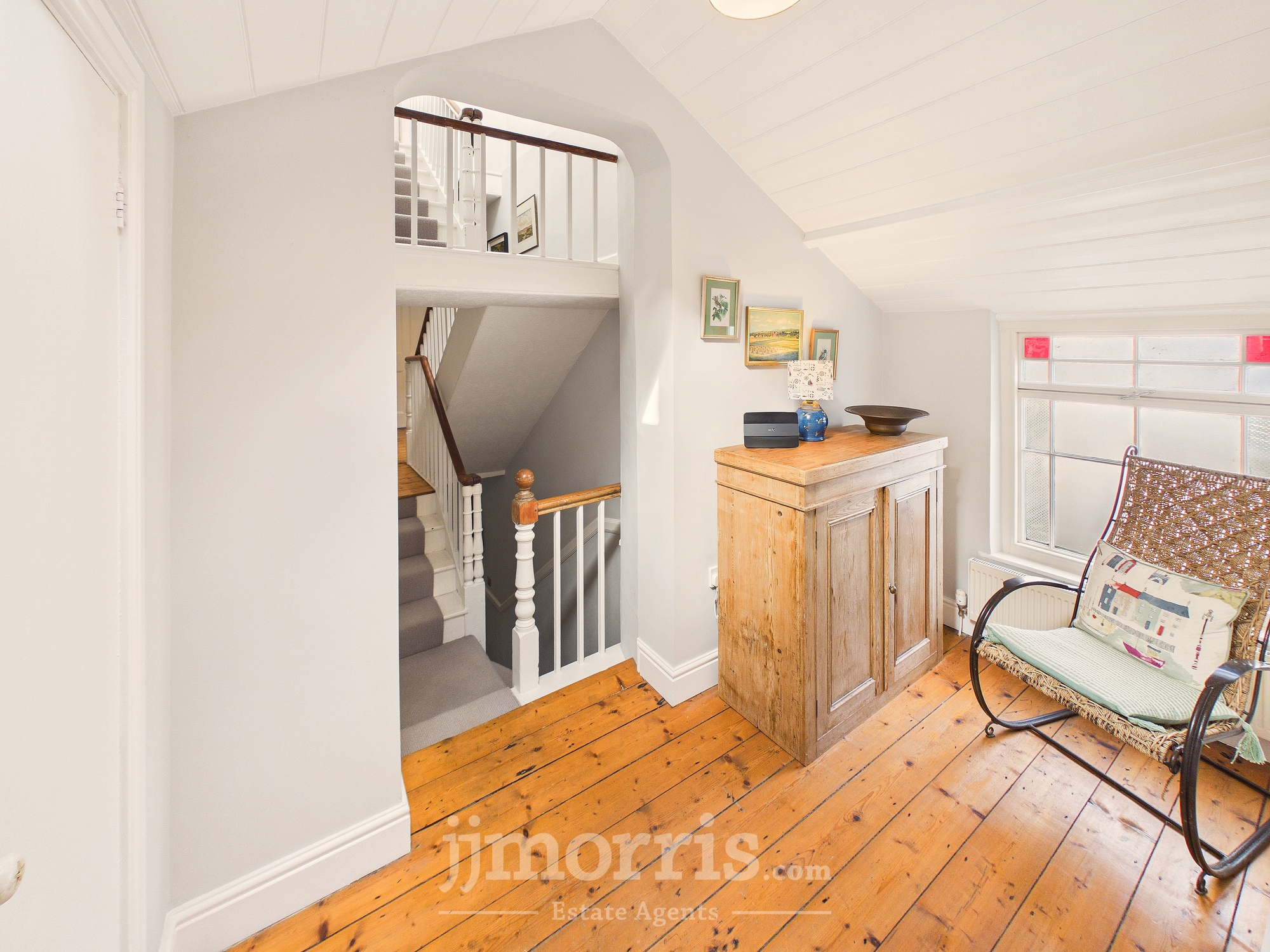 With Pine floorboards, single glazed sash window, radiator, ceiling light and 4 power points. A staircase from the Main Landing leads to a:-