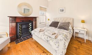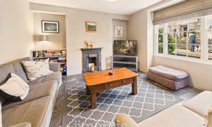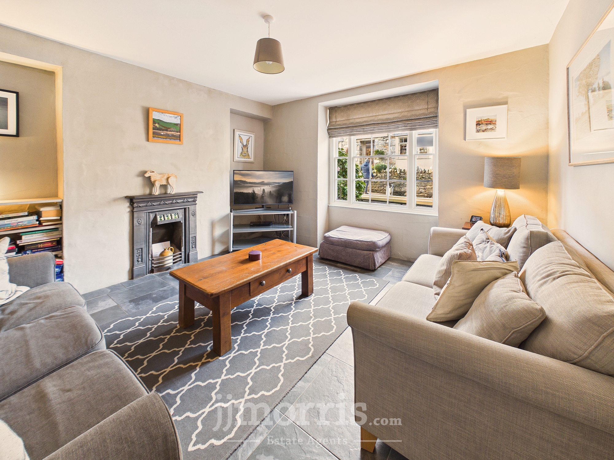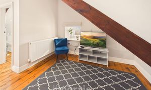With a slate effect ceramic tile floor with underfloor heating, central heating thermostat control, Cast Iron and Tile open fireplace, ceiling light, 2 alcoves (one with book shelf), Mains Smoke Detector, single glazed sash window, wiring for Satellite TV, 3 lamp points and 6 power points.
