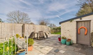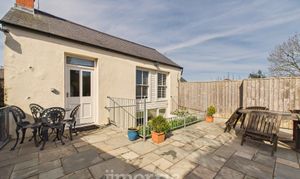 - Stone walled Forecourt & rear Lawned Garden with Indian Sandstone Paved Patio & Garden Shed.