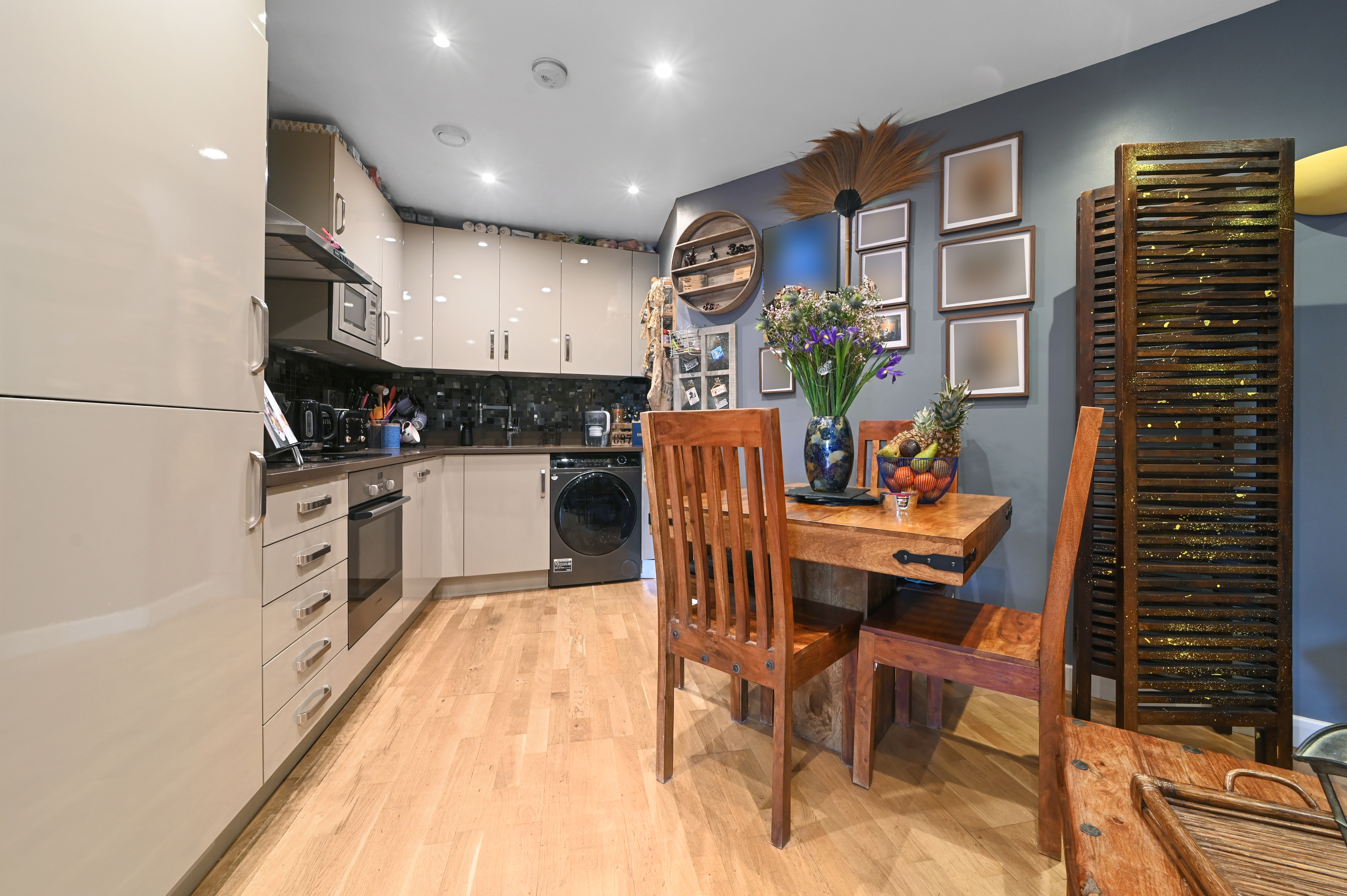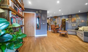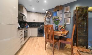 The welcoming entrance hall provides a video entry phone and access to the bedroom, family bathroom and kitchen/reception room. There is also a useful storage cupboard.