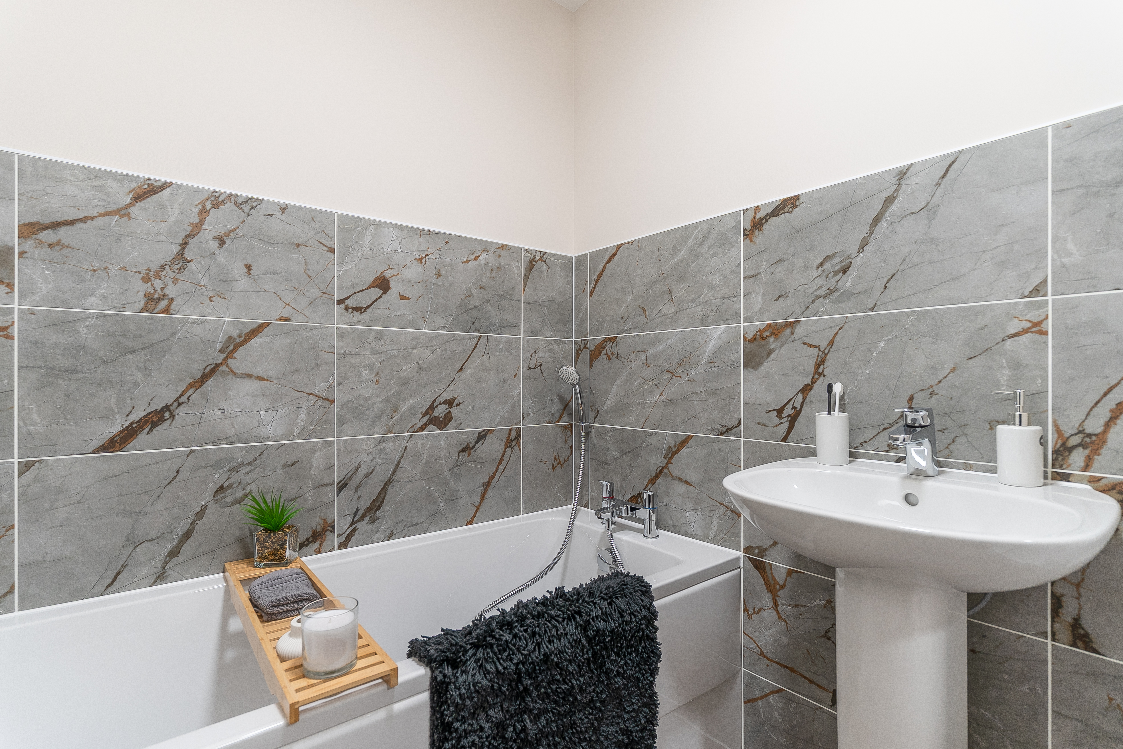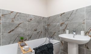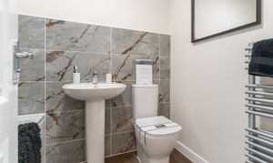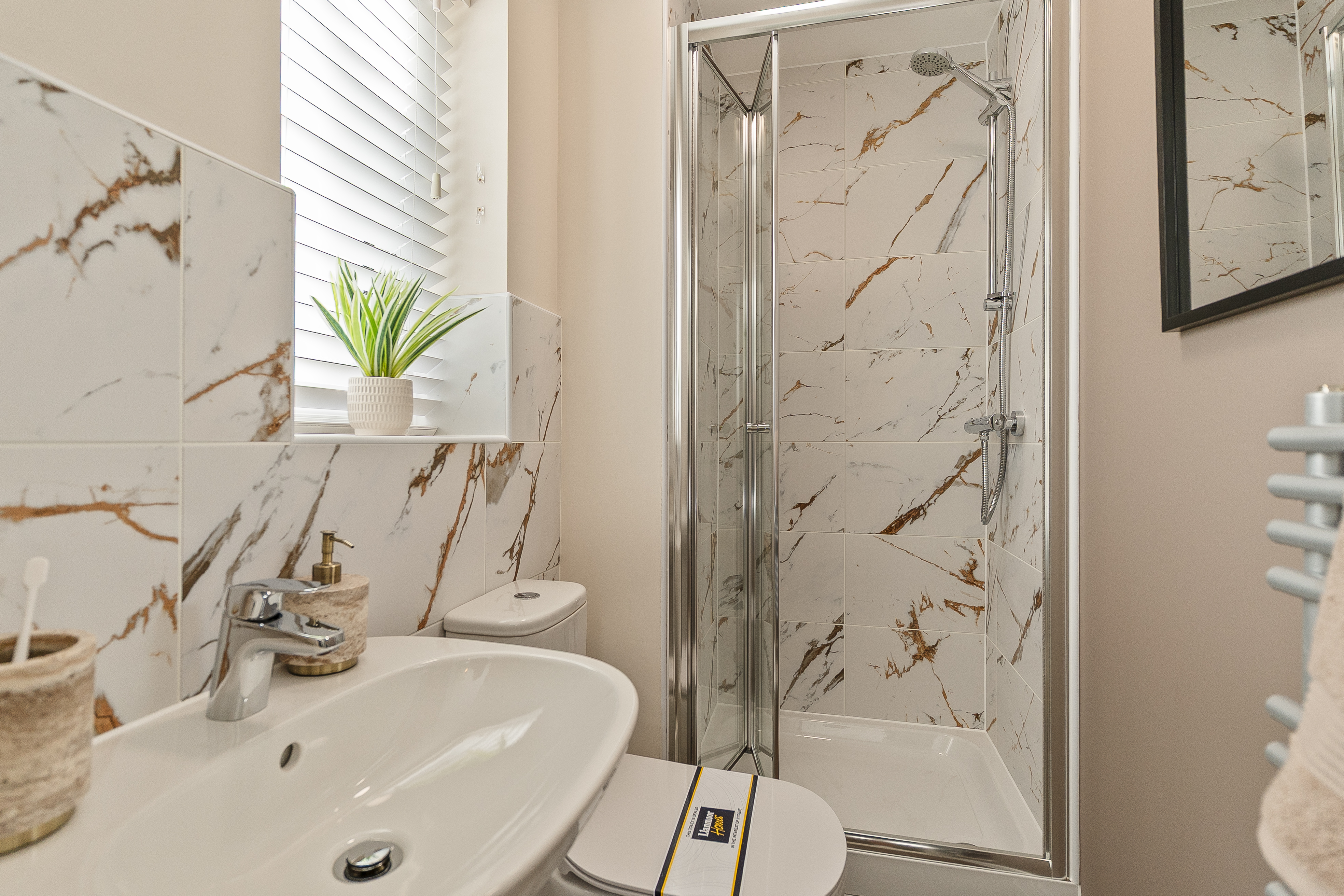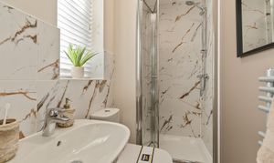 The first floor hosts four well-proportioned bedrooms and the family bathroom. Three of the bedrooms are generous doubles, while the fourth is a comfortable single room—ideal as a nursery, guest bedroom, or home office. The primary bedroom enjoys the added luxury of an en-suite shower room, finished to a high standard. The family bathroom is modern and tastefully designed, complementing the contemporary aesthetic throughout the home.