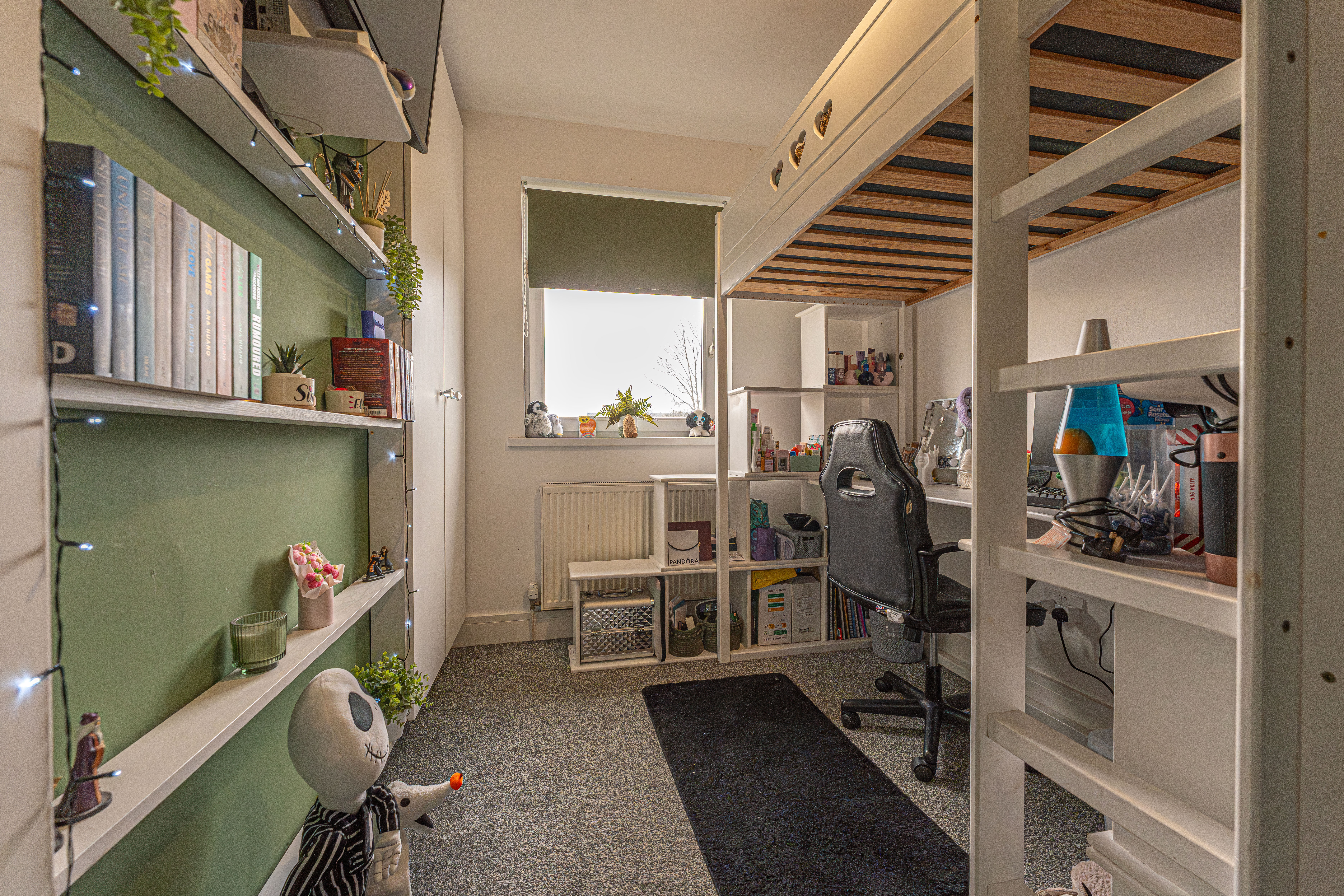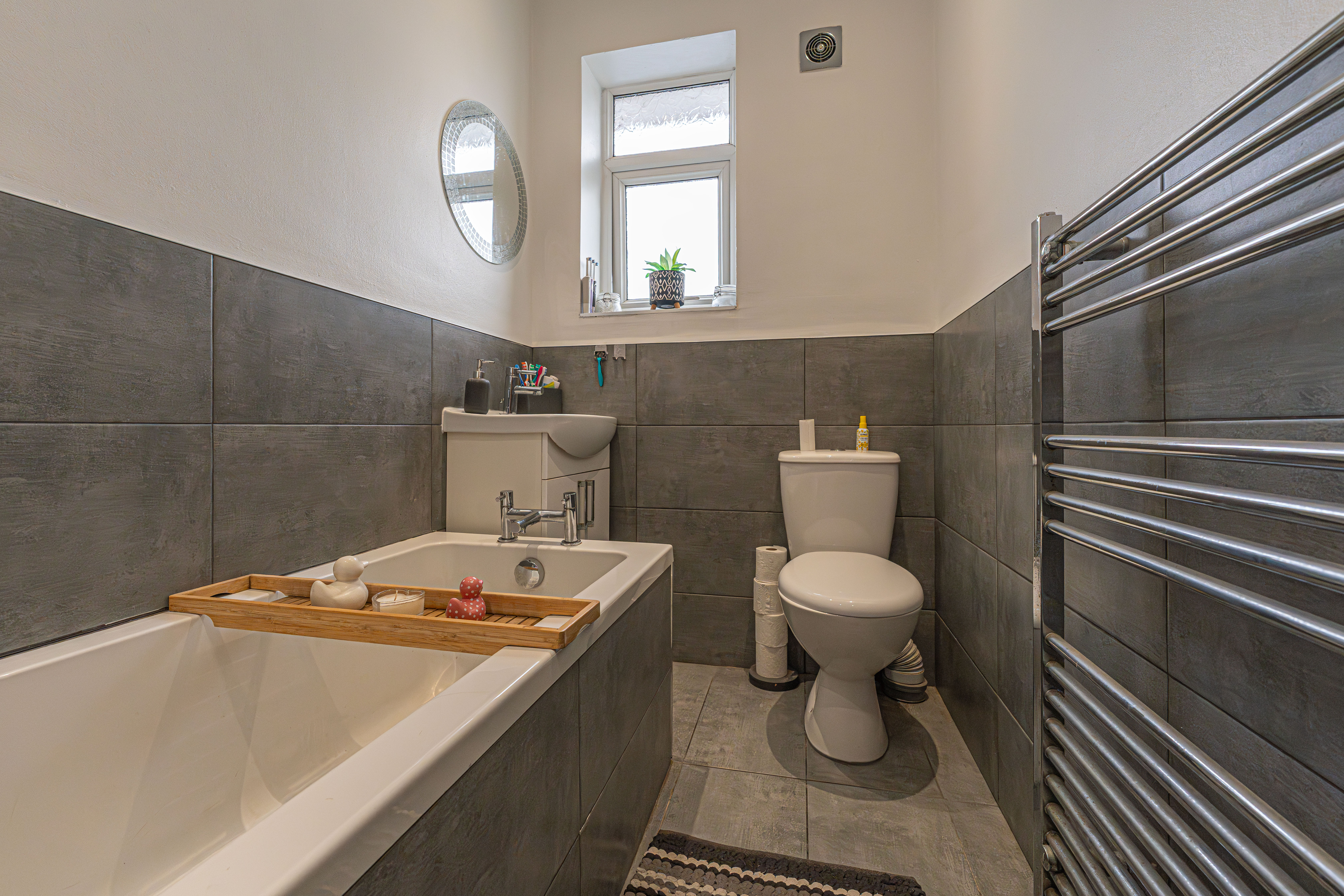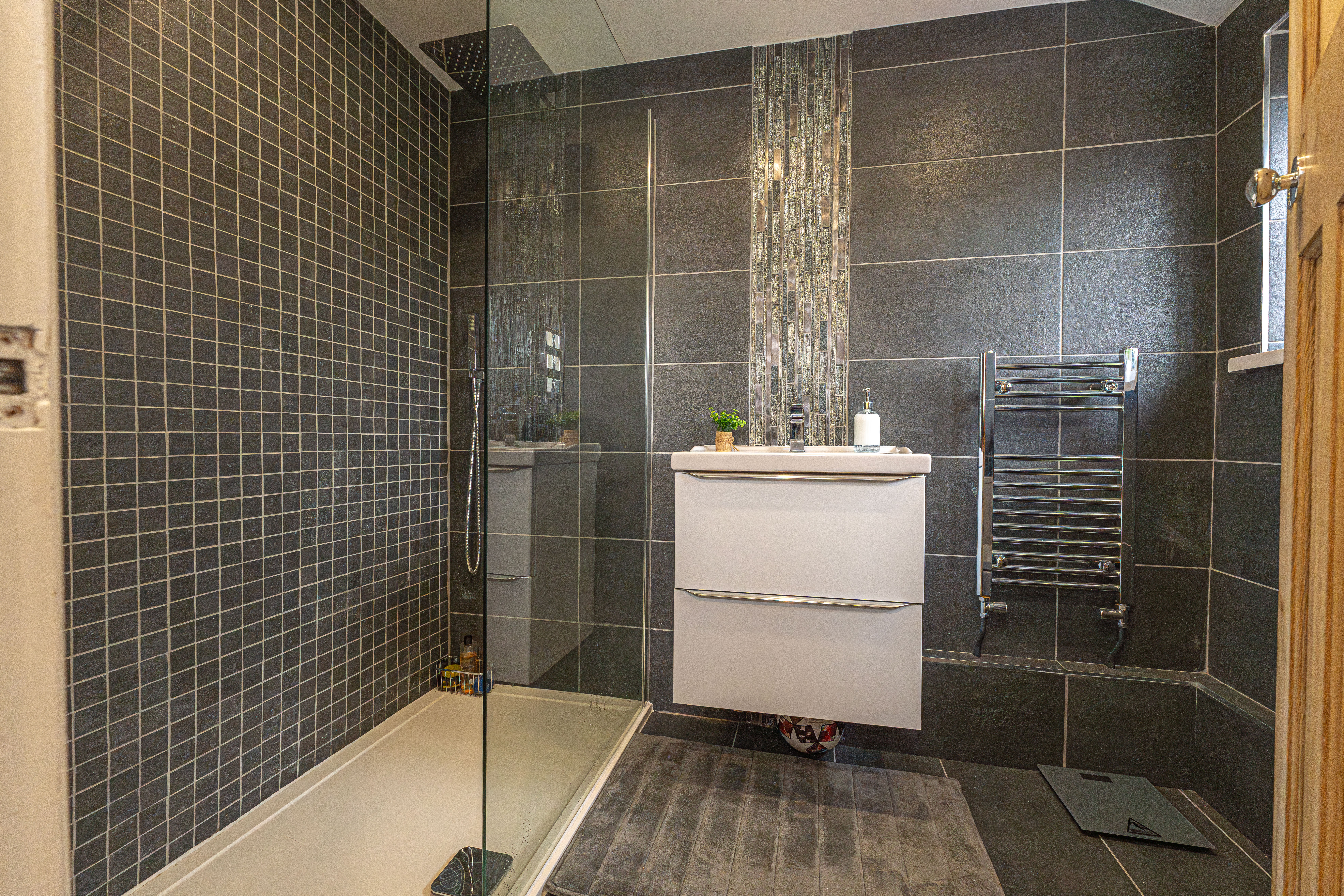 To the first floor we can find the three bedrooms, two of which are well proportioned double rooms, both of which benefit from fitted wardrobes for easy storage, with the front facing bedroom enjoying the glorious bay windows from the floor below. The third bedroom is a comfortable single, and would be ideal for a nursery or a home office, while a second bathroom is accessible from the first floor, highlighting the incredible flexibility offered by this property.