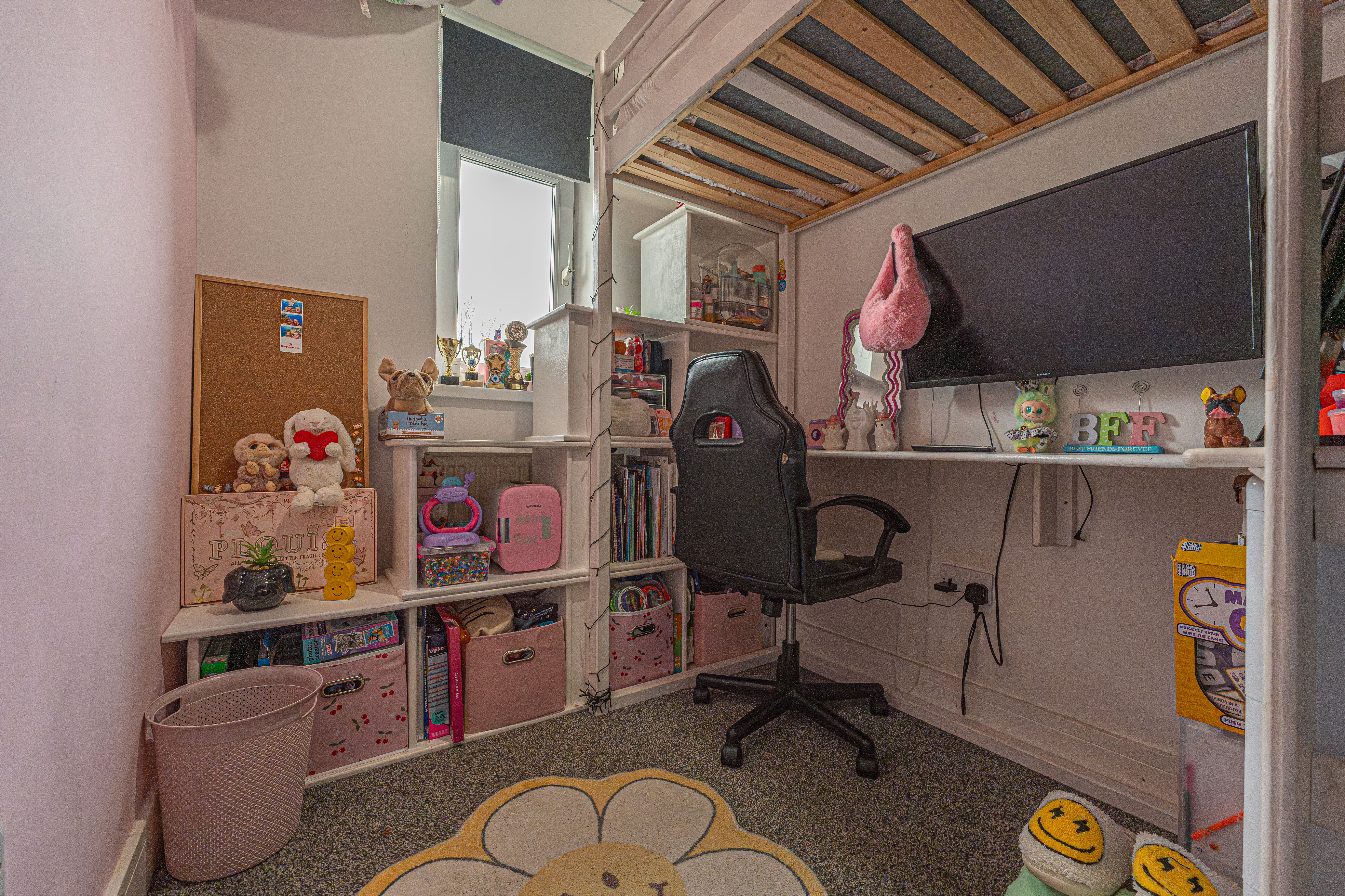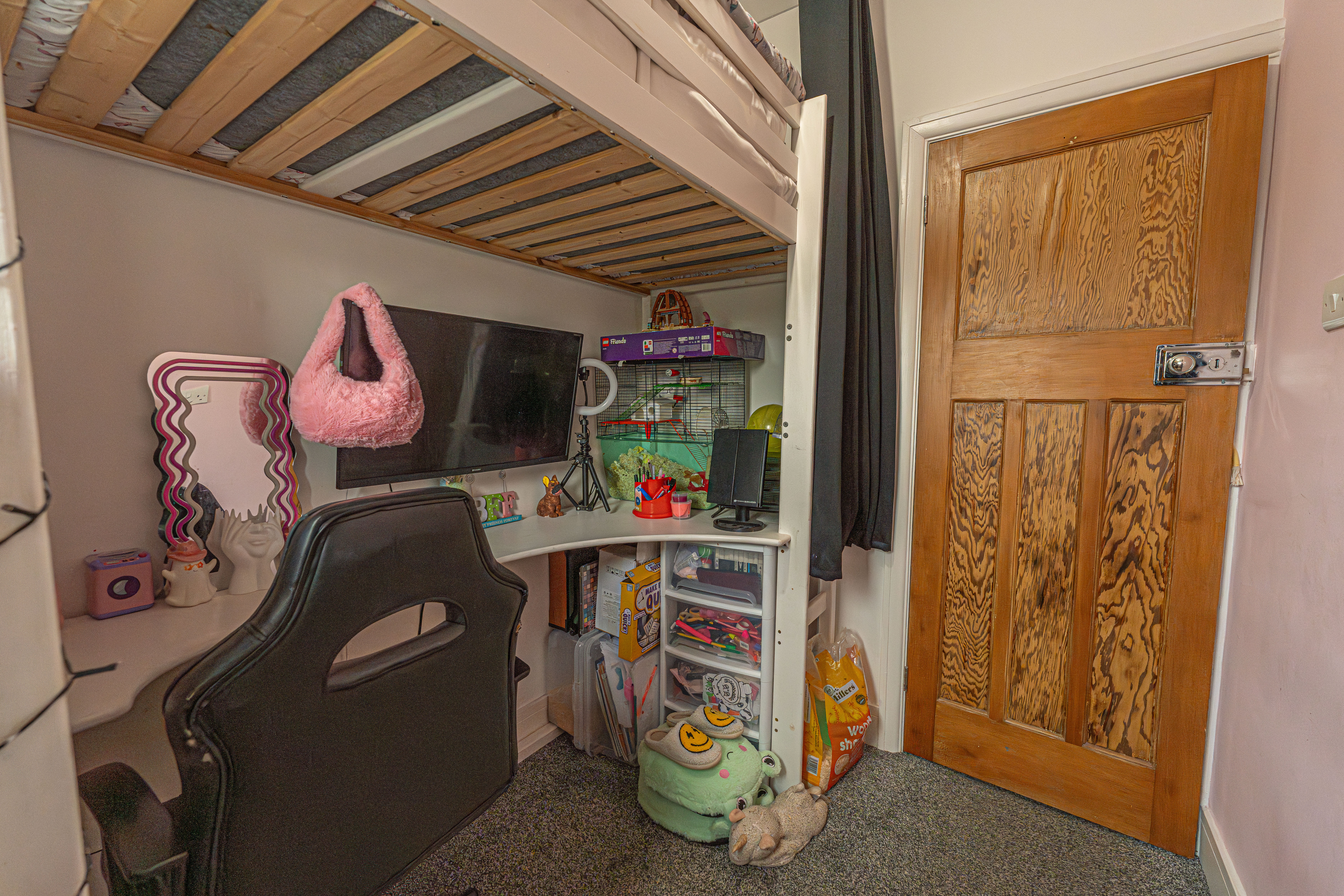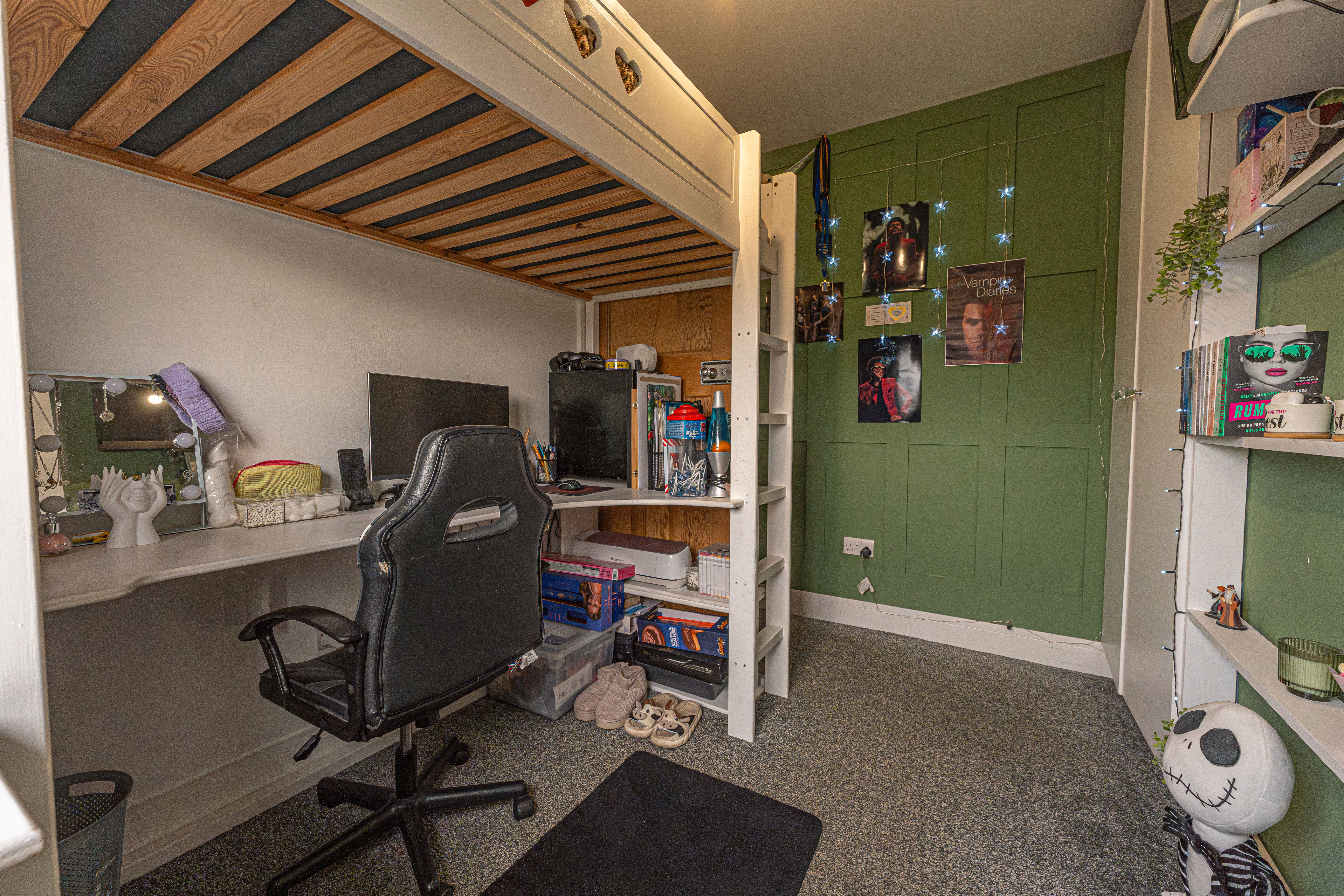 To the first floor we can find the three bedrooms, two of which are well proportioned double rooms, both of which benefit from fitted wardrobes for easy storage, with the front facing bedroom enjoying the glorious bay windows from the floor below. The third bedroom is a comfortable single, and would be ideal for a nursery or a home office, while a second bathroom is accessible from the first floor, highlighting the incredible flexibility offered by this property.