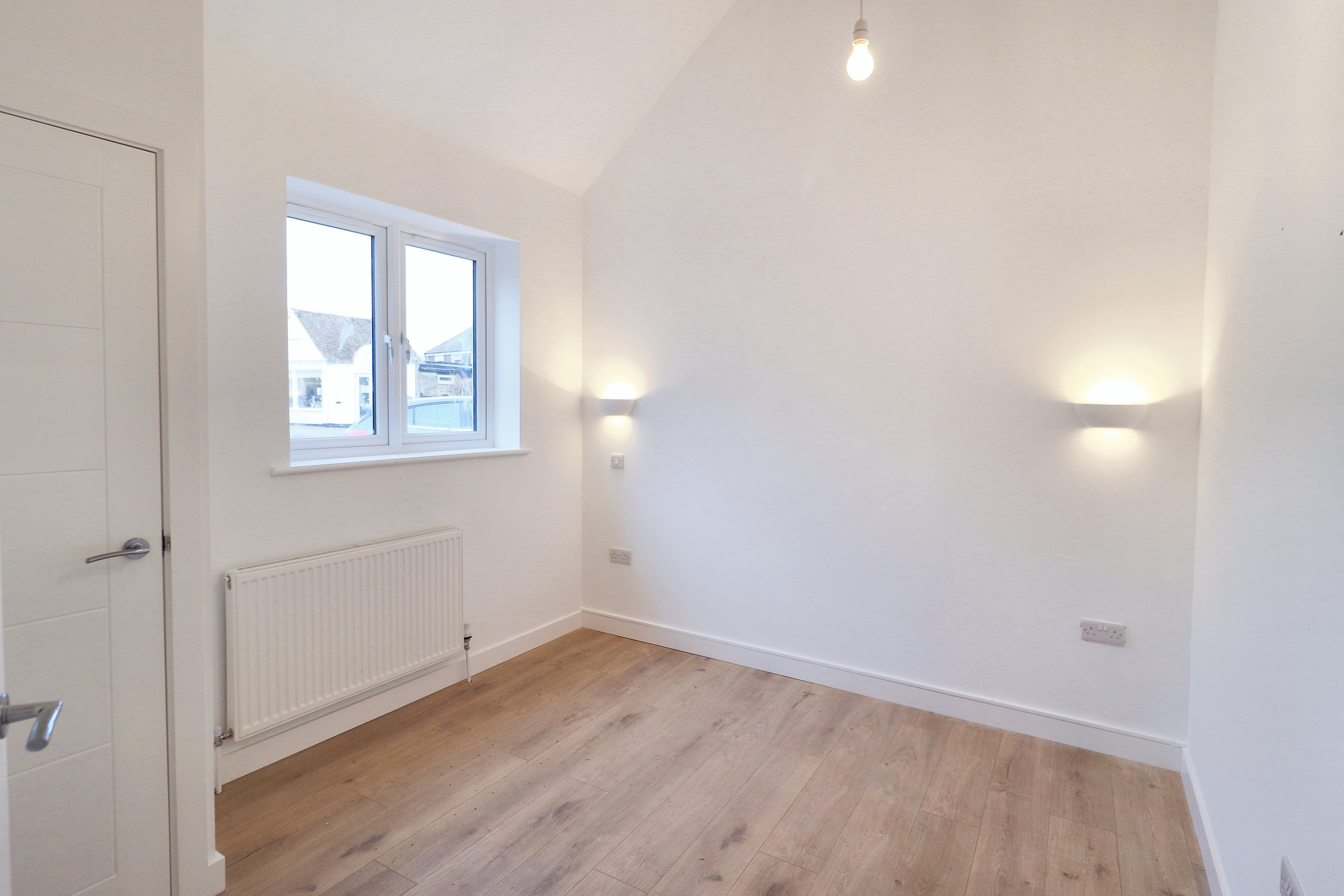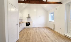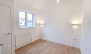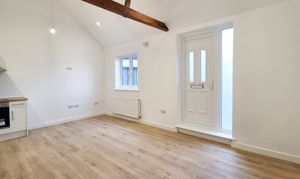 The property feels bright and spacious with luxury vinyl flooring and vaulted ceilings throughout. The open plan lounge/kitchen/diner has a combination of inset ceiling spotlights and hanging pendant lights, with storage which is provided by a built-in storage cupboard also housing the gas combi boiler.