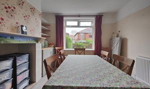This traditional family home will delight buyers. Situated in a great location and enjoying a more open outlook than most the house is light, bright and enjoys fresh décor. Double doors with an elegant arch above open to the porch and from there a panelled door with original stain glass side lights opens to the welcoming main hallway. There are two reception rooms, a bow fronted lounge with modern feature fireplace and a generous rear dining room which overlooks the garden at the rear. The kitchen is modern with light grey cabinets, white splash back tiling and a handy pantry style store offers plenty of additional storage. There is a ceramic hob and integrated oven. Upstairs you will find three bedrooms and a stylish bathroom with grey and white theme. There is an over bath shower and a generous cupboard for storing towels. The gas combination boiler is in the landing cupboard.
