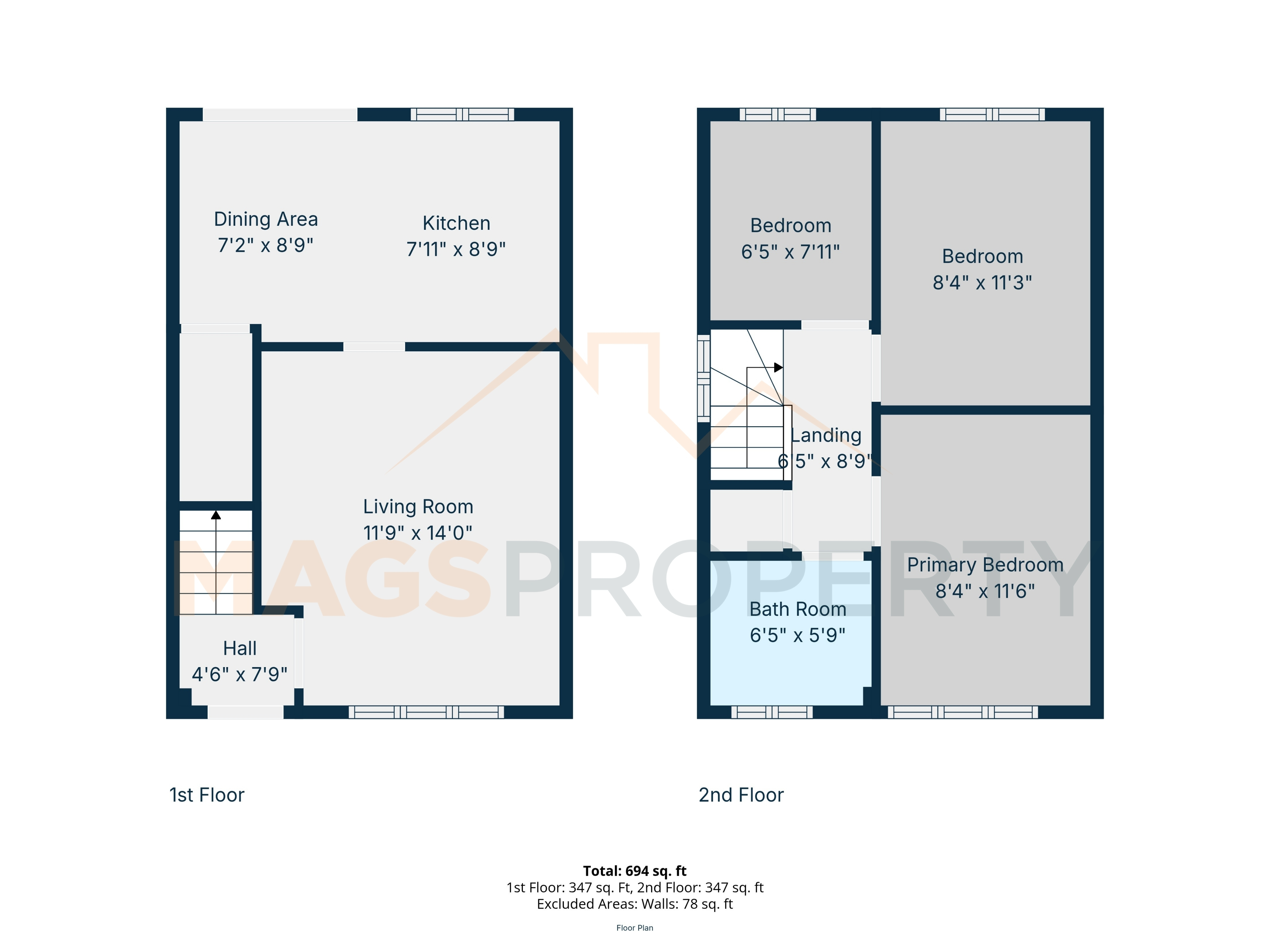- Approx Sq Feet: 694 sqft