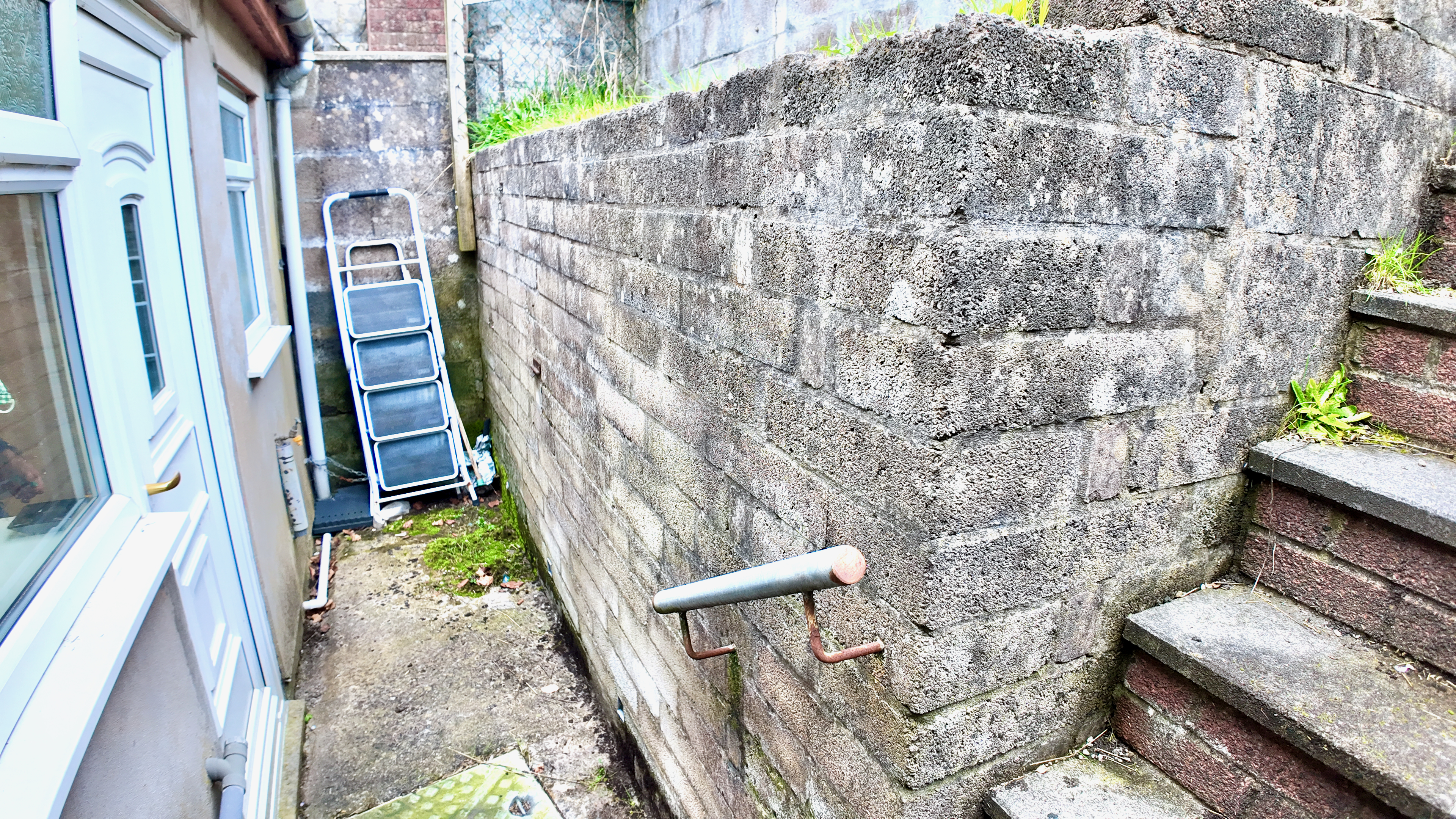 Steps lead up to a front terrace, perfectly positioned to enjoy the elevated outlook. The property is entered via a hallway leading into an open front-to-back reception room, providing a spacious and versatile living area. To the rear, there is a ground floor wet room and a well-proportioned kitchen, both offering scope for modernisation.