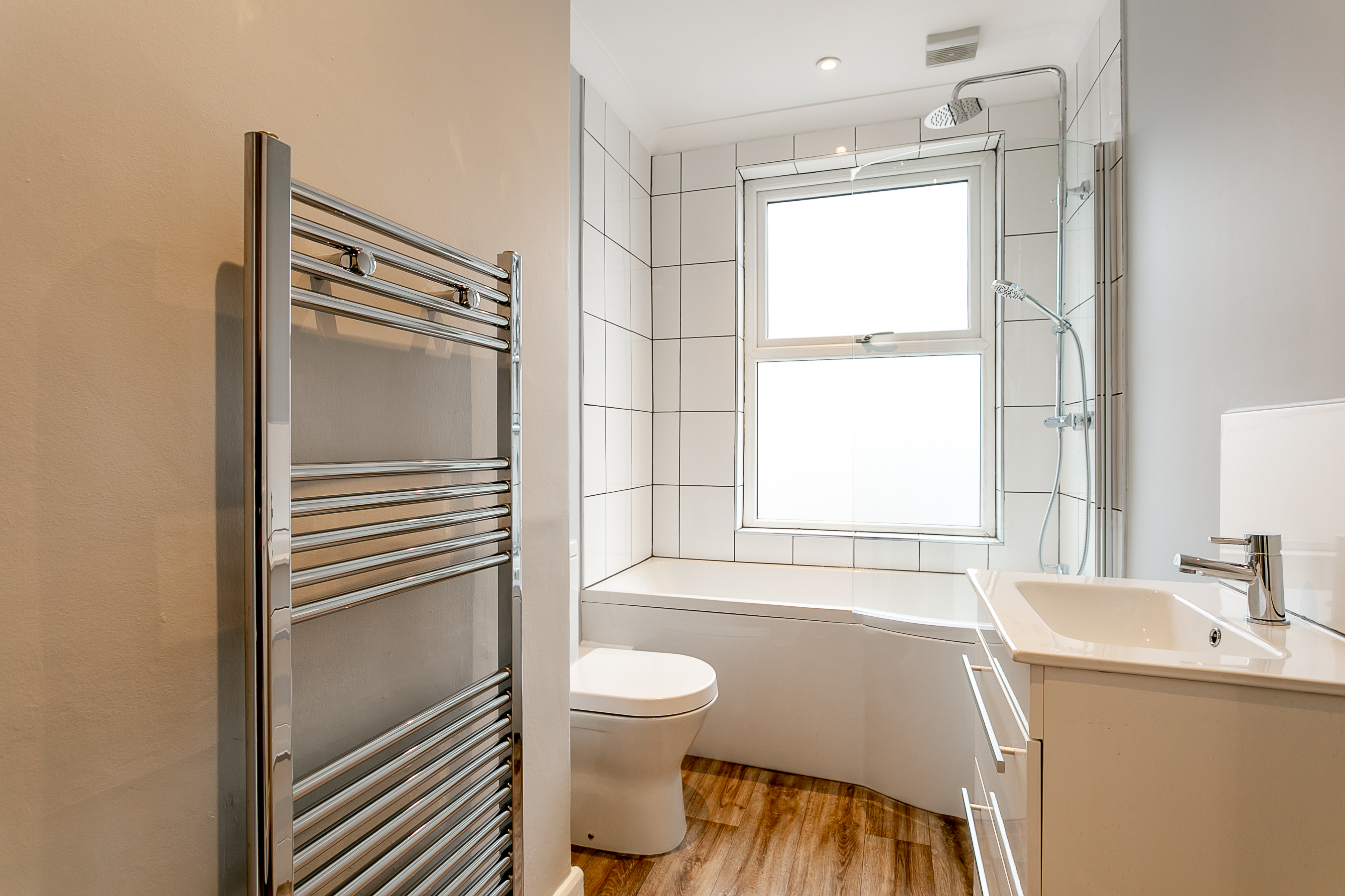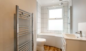 To the first floor there is a large double bedroom, one single bedroom/office and stylish house bathroom which has a bath with power shower over. To the second floor there are a further two double bedrooms.