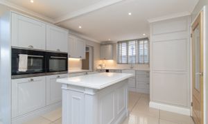 Upon entering, you are welcomed by a bright and airy hallway opening to a cosy lounge space, boasting tonnes of natural light with a stunning open-plan kitchen/dining space, with fitted appliances and a butler sink. The contemporary kitchen offers ample space for entertaining from the breakfast bar and dining table leading into the sunroom—a perfect space for relaxation or entertaining. A separate utility room with an additional storage cupboard and WC adds to the practicality of the home. Further space in the ground floor can be found from the converted garage, currently used as an office space.