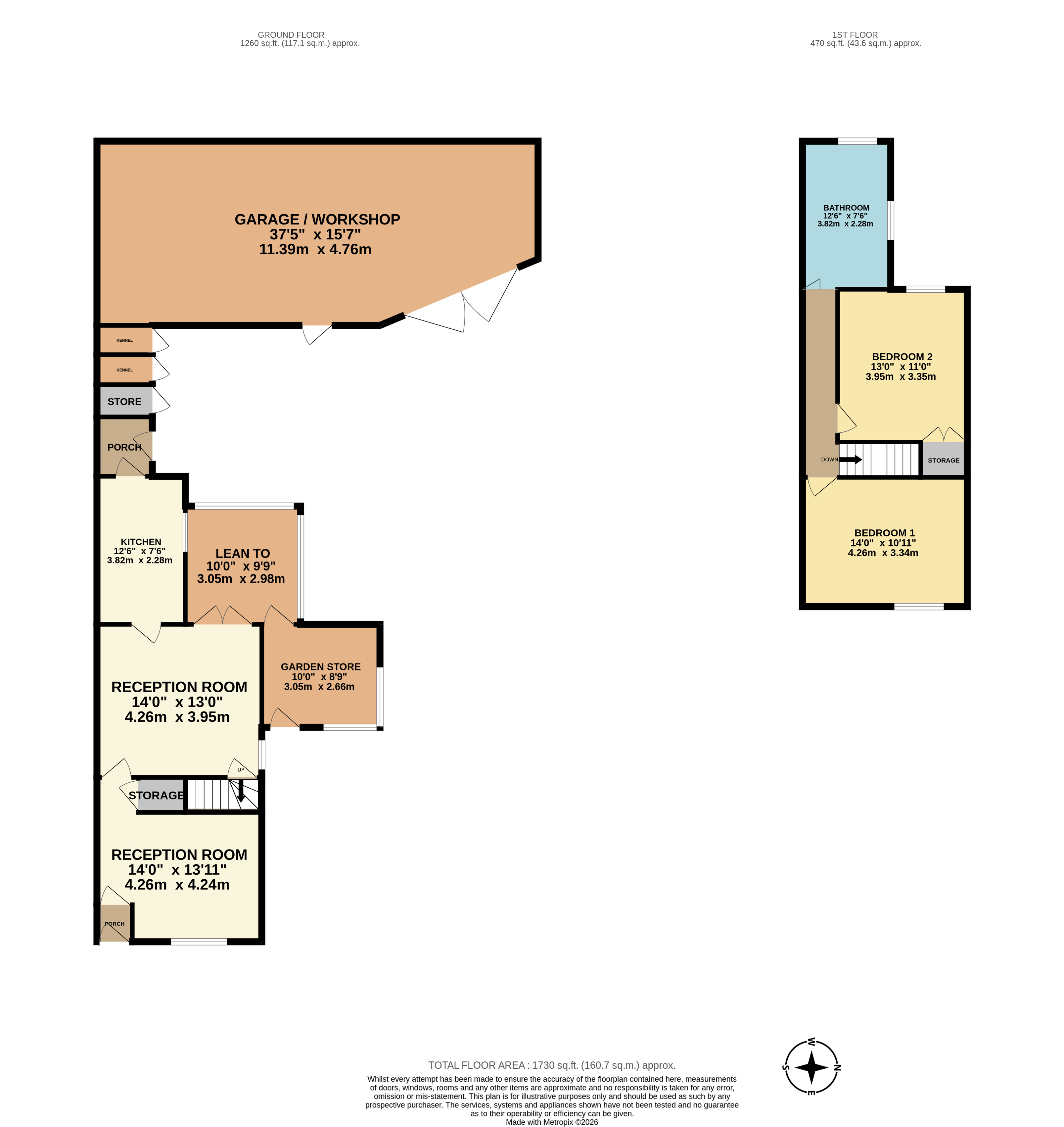 To the rear & side of the property, you will find a generous driveway with roller gate leading towards a large garage & workshop, access to 3 stores with 2 currently being used as kennels and around to the side is a lawn area, raised decking, shrub borders and fenced boundaries.