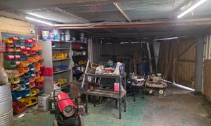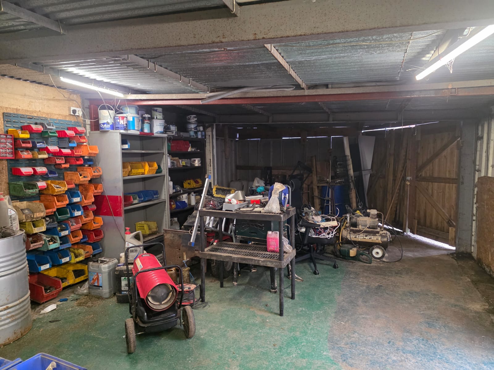 This includes lighting, electricity points, work bench, double doors providing access for a vehicle and solar panels located on the roof.