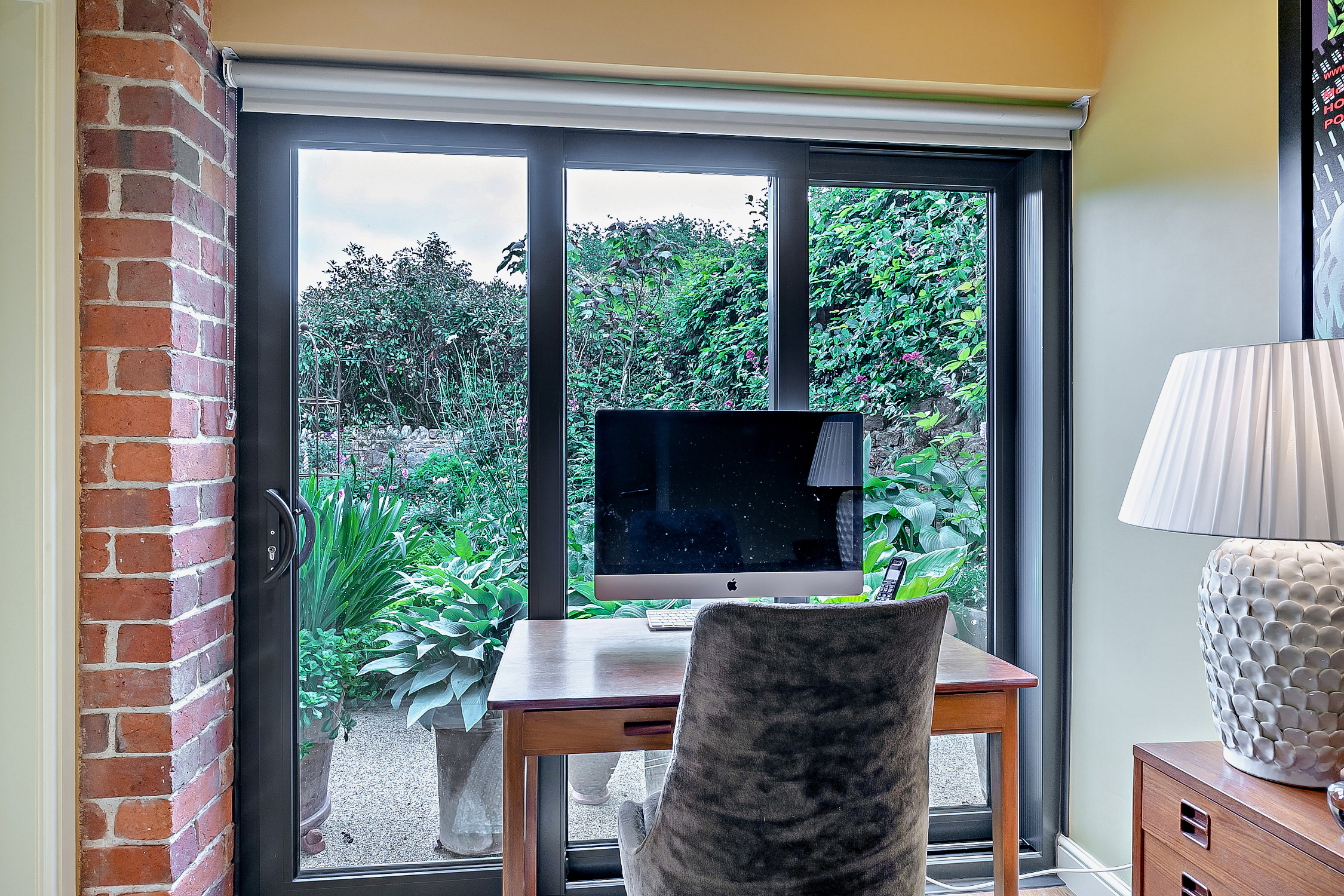 Currently used as a study featuring engineered oak flooring and glass sliding doors provide views of the patio and garden, this room could also be used as a playroom. There is access from here to the utility.