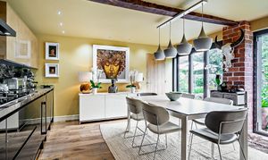 A glazed front door opens into the bright hallway which features an engineered oak floor. The space is beautifully enhanced by exposed beams, creating a warm and characterful welcome. Stairs lead to the first floor, completing this charming entrance.