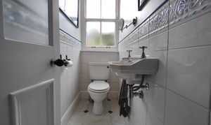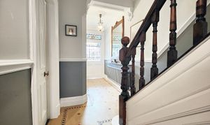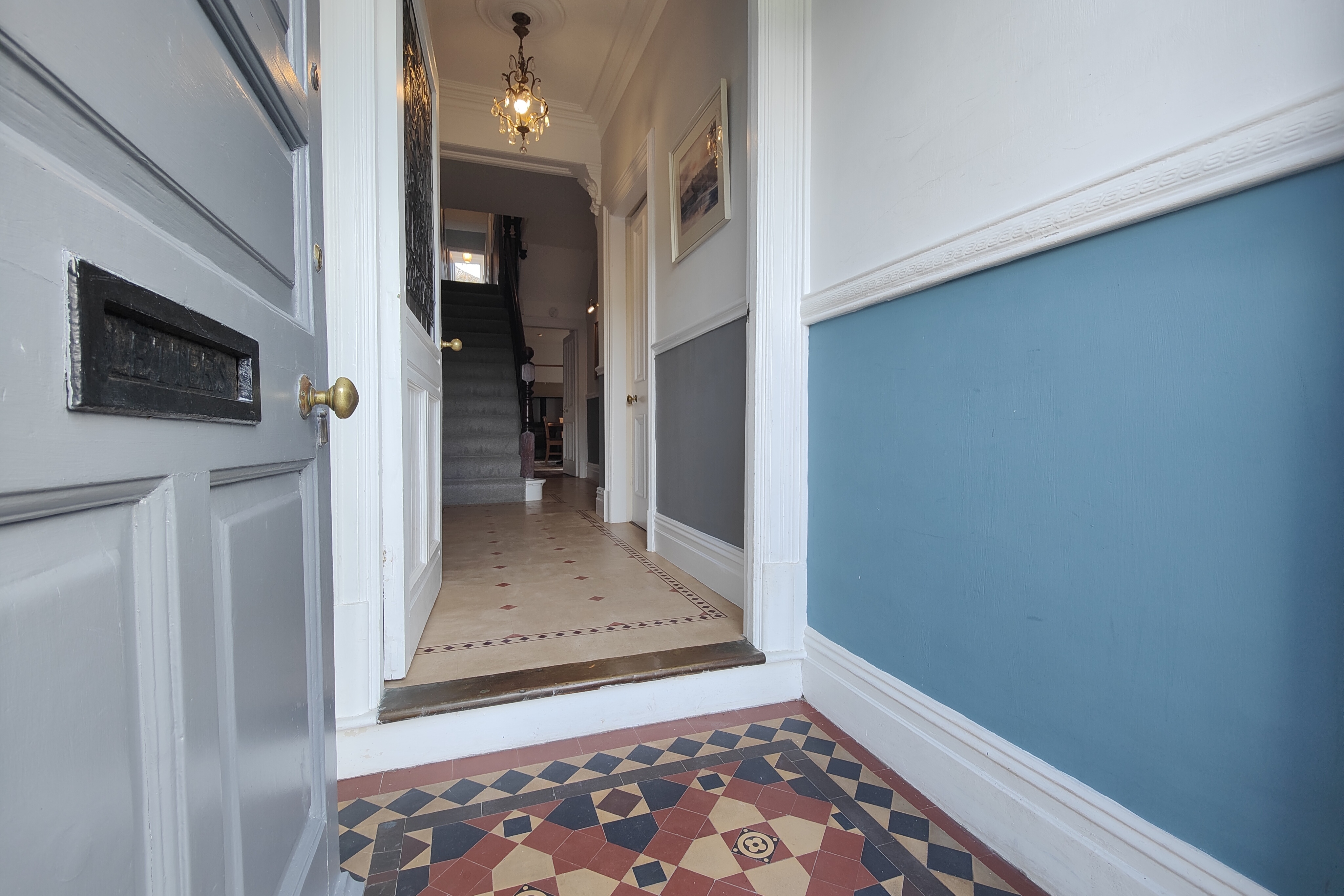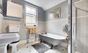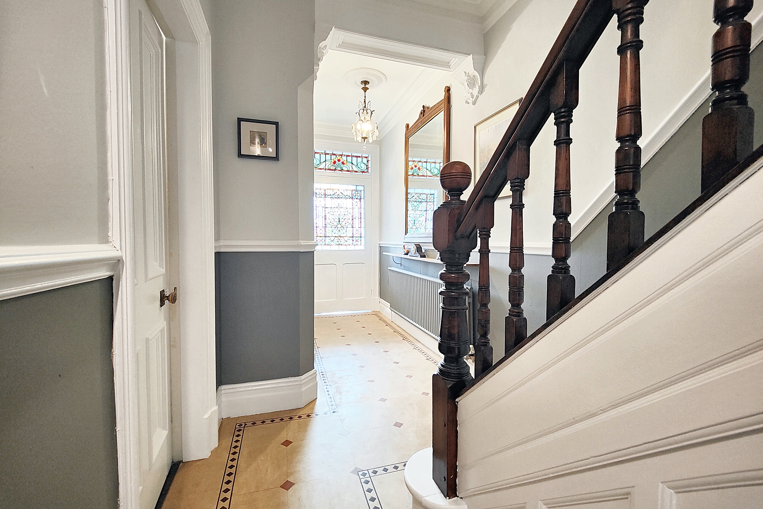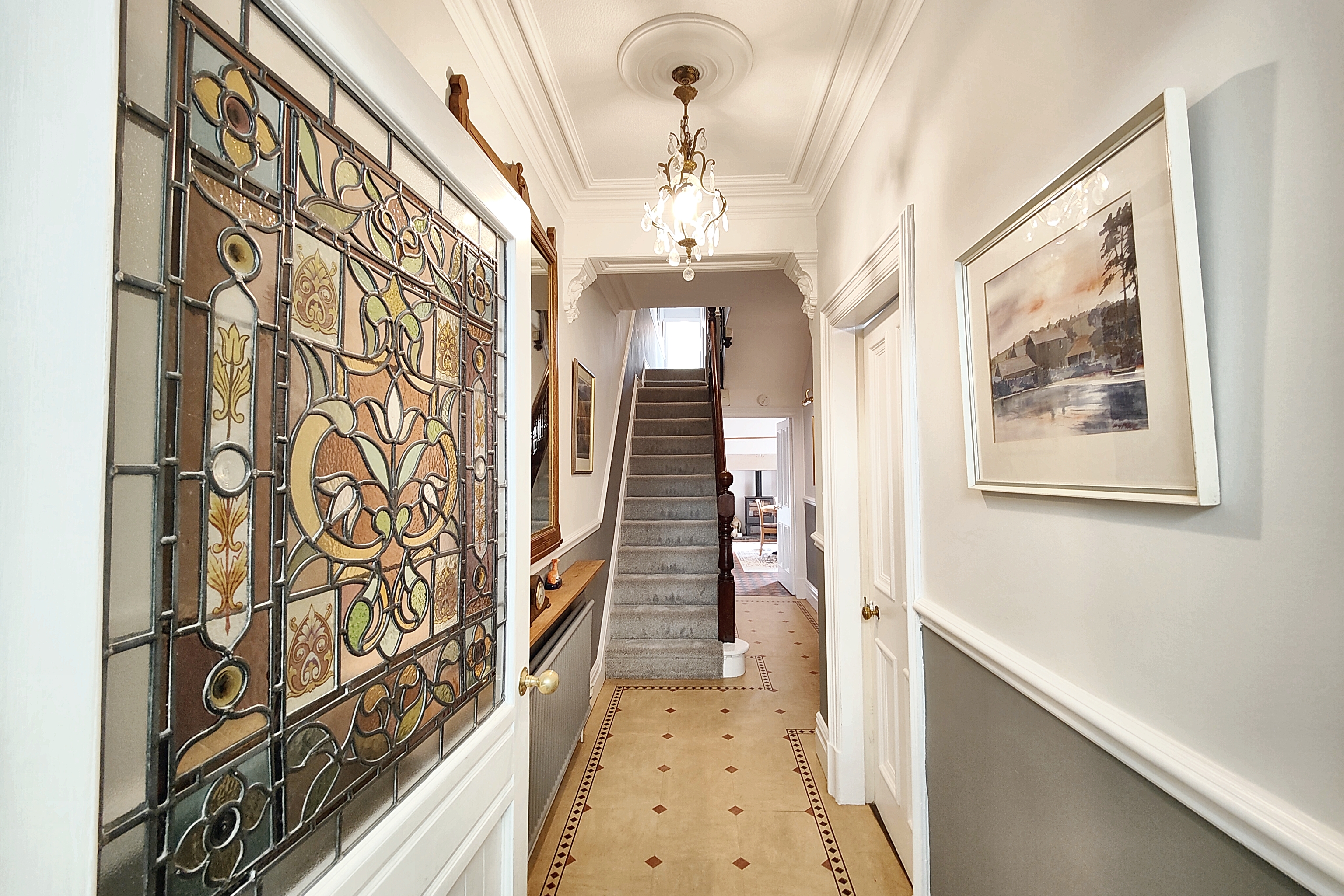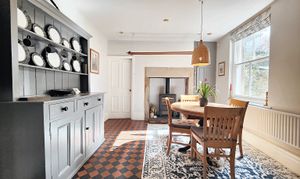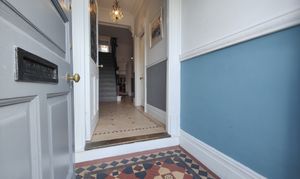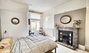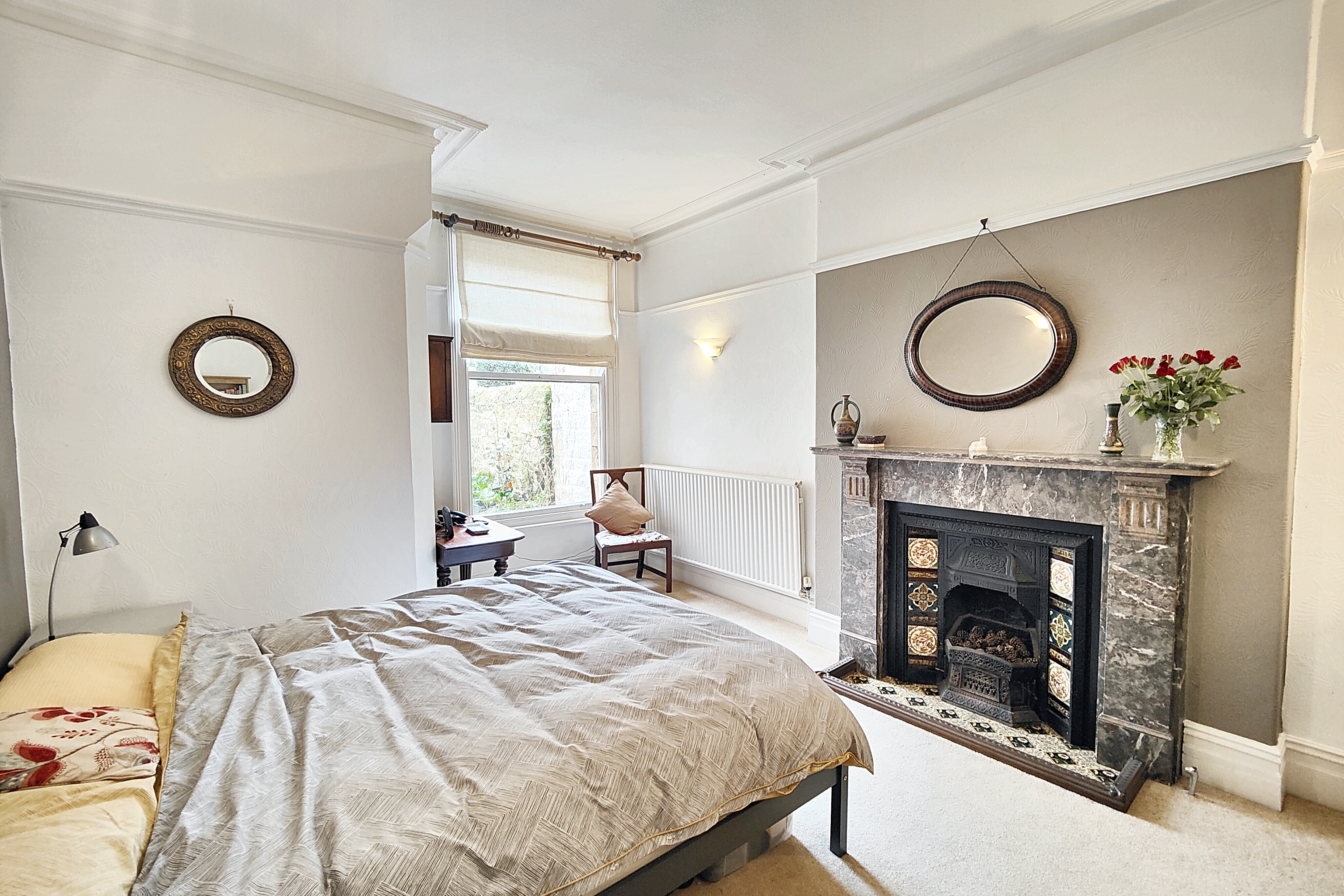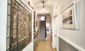 What an impressive home this is! Packed full of character features and with generous proportions throughout this house is truly captivating. Step inside through the impressive front door and immediately you are greeted by stunning stain glass panels and mosaic floor tiles in the vestibule. The main hallway is large with airy high ceilings, cornicing and corbel stones. Throughout the house you will find perfectly chosen interior décor incorporating Farrow & Ball colours. Room Type: Lounge, dining room and Breakfast Room The bay fronted living room looks out over the front garden to the church. There is a beautiful original fire surround with tiled inserts and cast iron fireplace. To the rear the dining room, currently used as a bedroom, has a second original fireplace and in the Breakfast Room you will find quarry tiles to the floor and a wood burning stove.