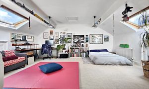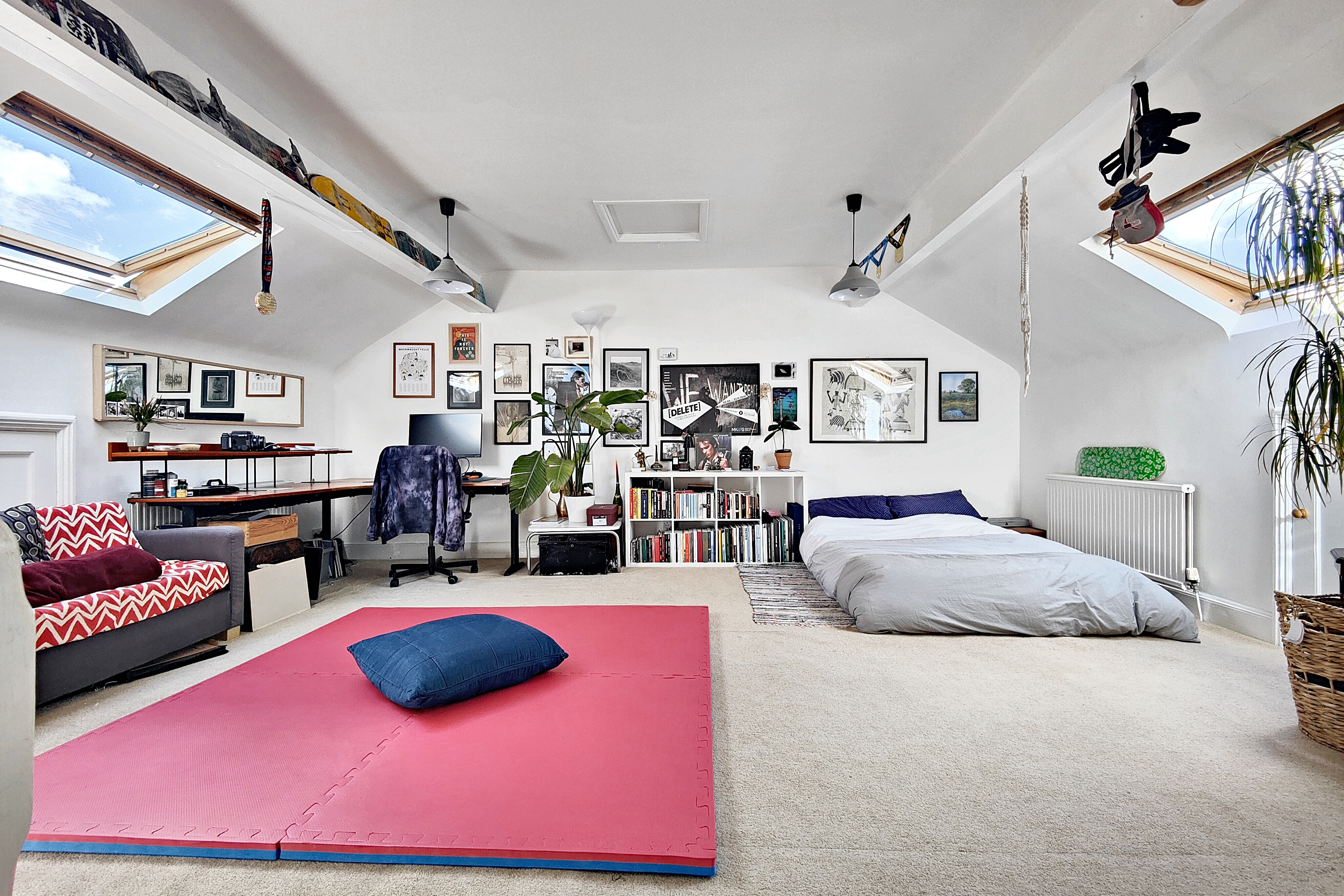 The staircase leads up to the first floor where you will find three generous double bedrooms, a beautifully styled family bathroom and a separate WC. The bathroom has a four-piece suite with a free standing bath, shower enclosure, wash basin and low flush WC. The master bedroom is bay fronted, it boasts another character fireplace and being at the front it enjoys the most stunning views over to the Lakeland hills. It is currently used as a first floor lounge. A door from the landing opens to the top staircase and on to the large second floor bedroom which occupies the full width of the house and it has two Velux windows making it light and bright. There are under eaves storage cupboards.