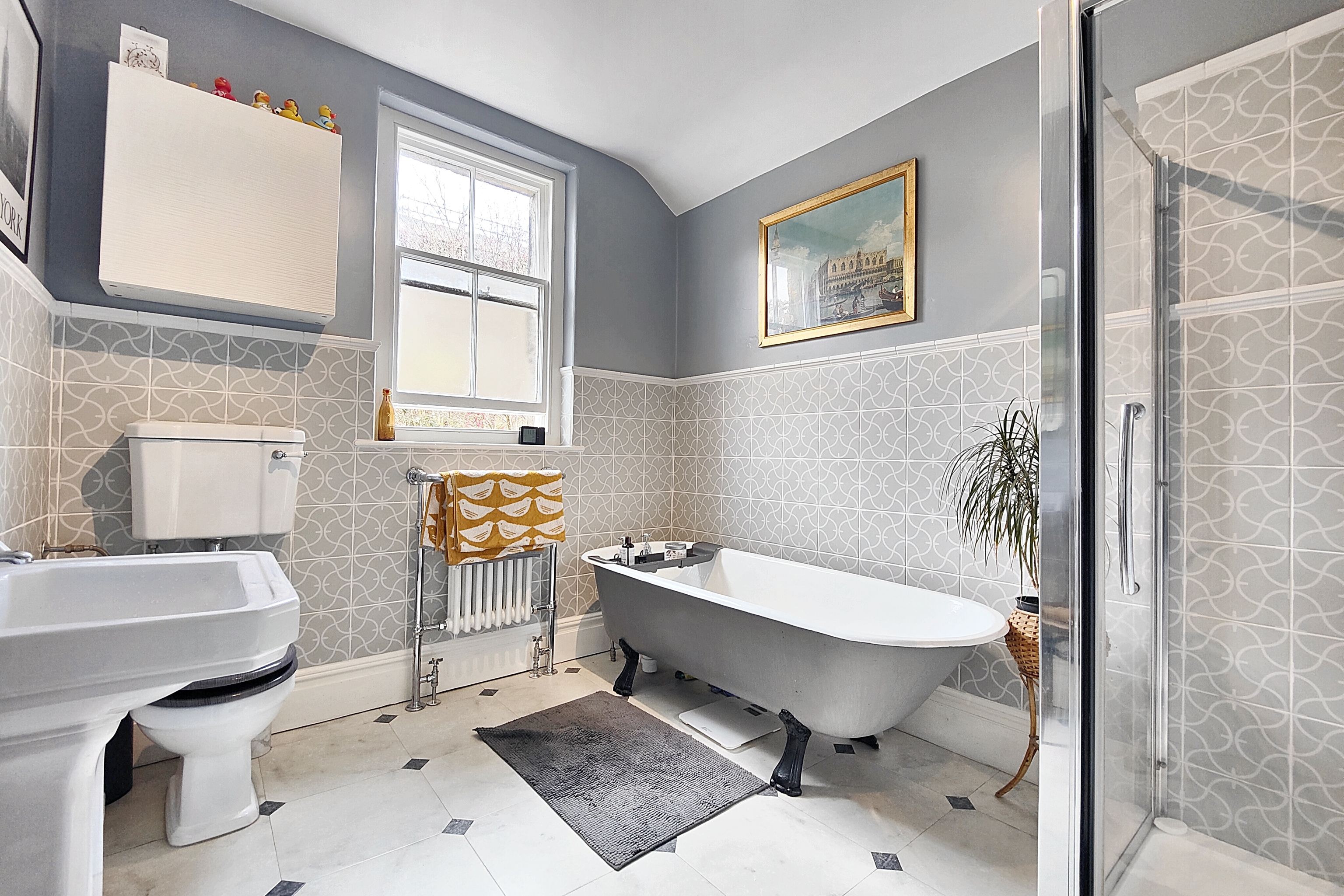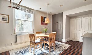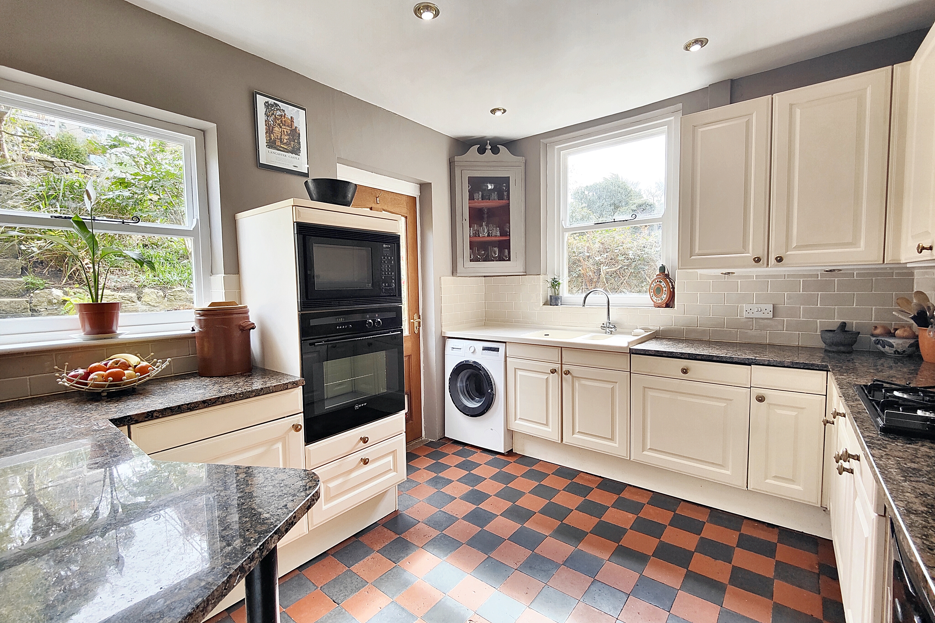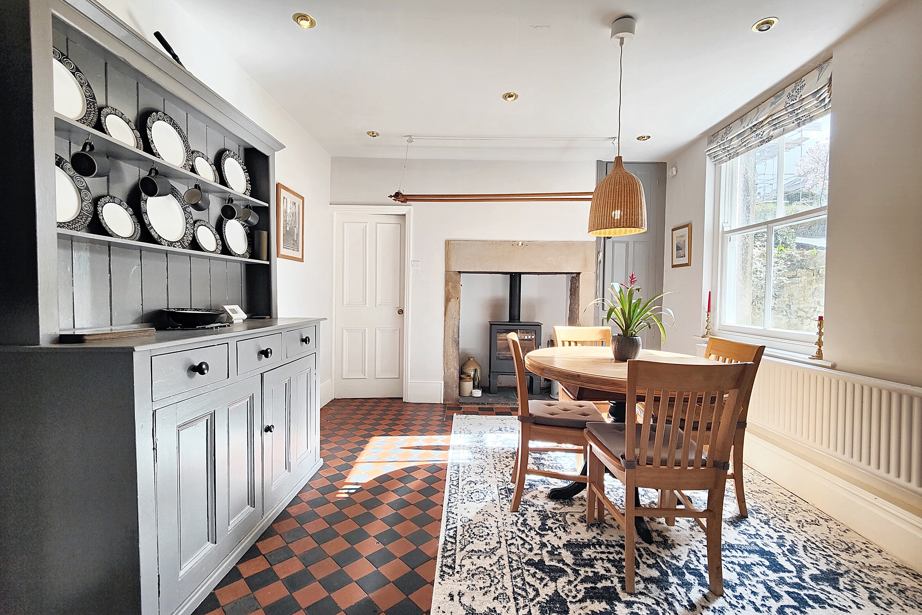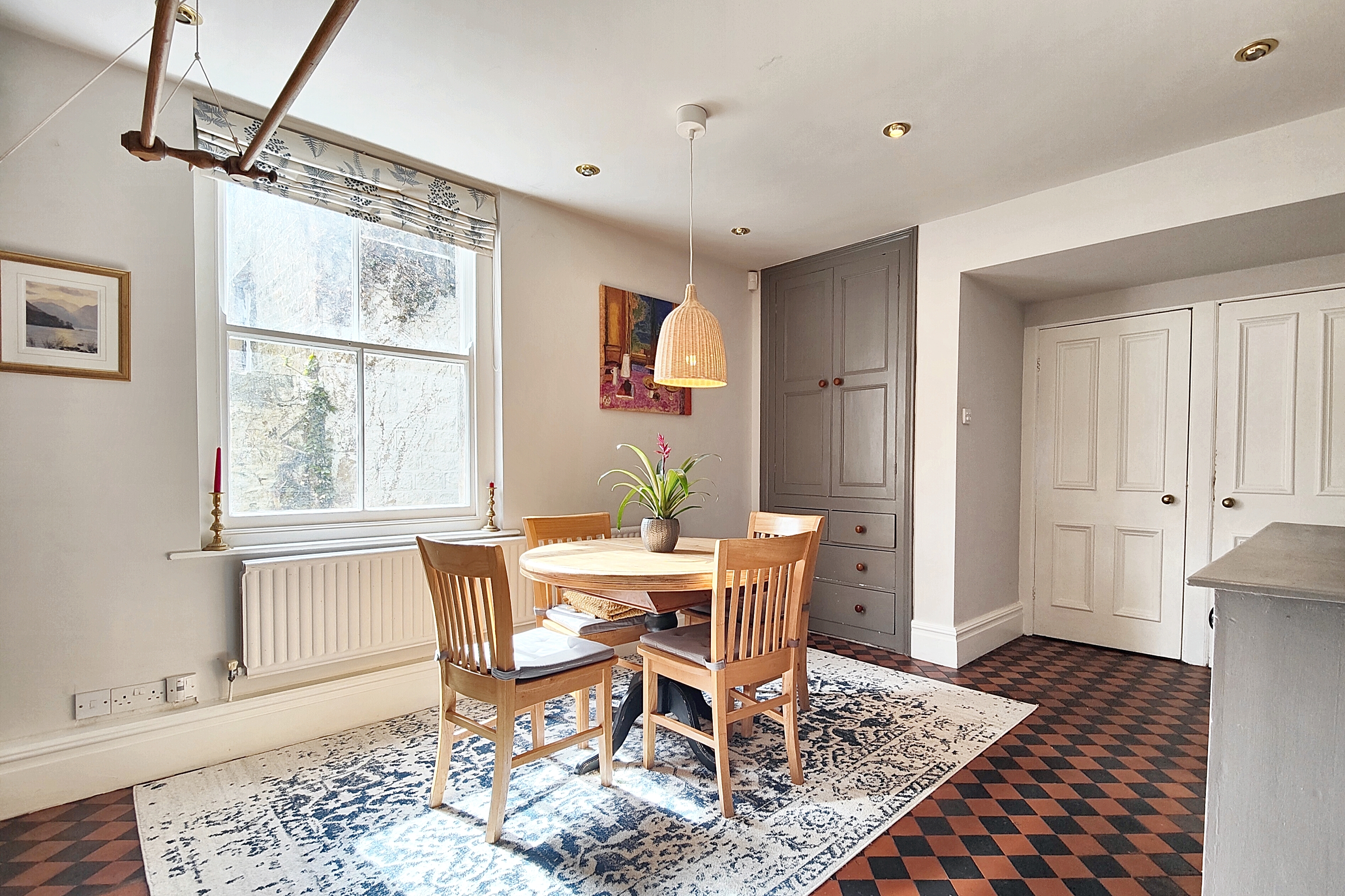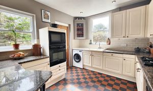 The kitchen is at the rear. It enjoys a traditional feel with fitted cabinets, quarry tile flooring and light grey splash back tiling ,solid granite work tops and dual aspect windows. There is an integrated gas hob and Neff oven, an integrated freezer and free-standing fridge. The back door leads out to the garden. A further door from the Breakfast Room leads to the cellar steps. The cellar offers great head height and has a window to the front. The front of the cellar has been recently tanked, and the space offers potential for a wide variety of uses such as games room or spacious home-office.
