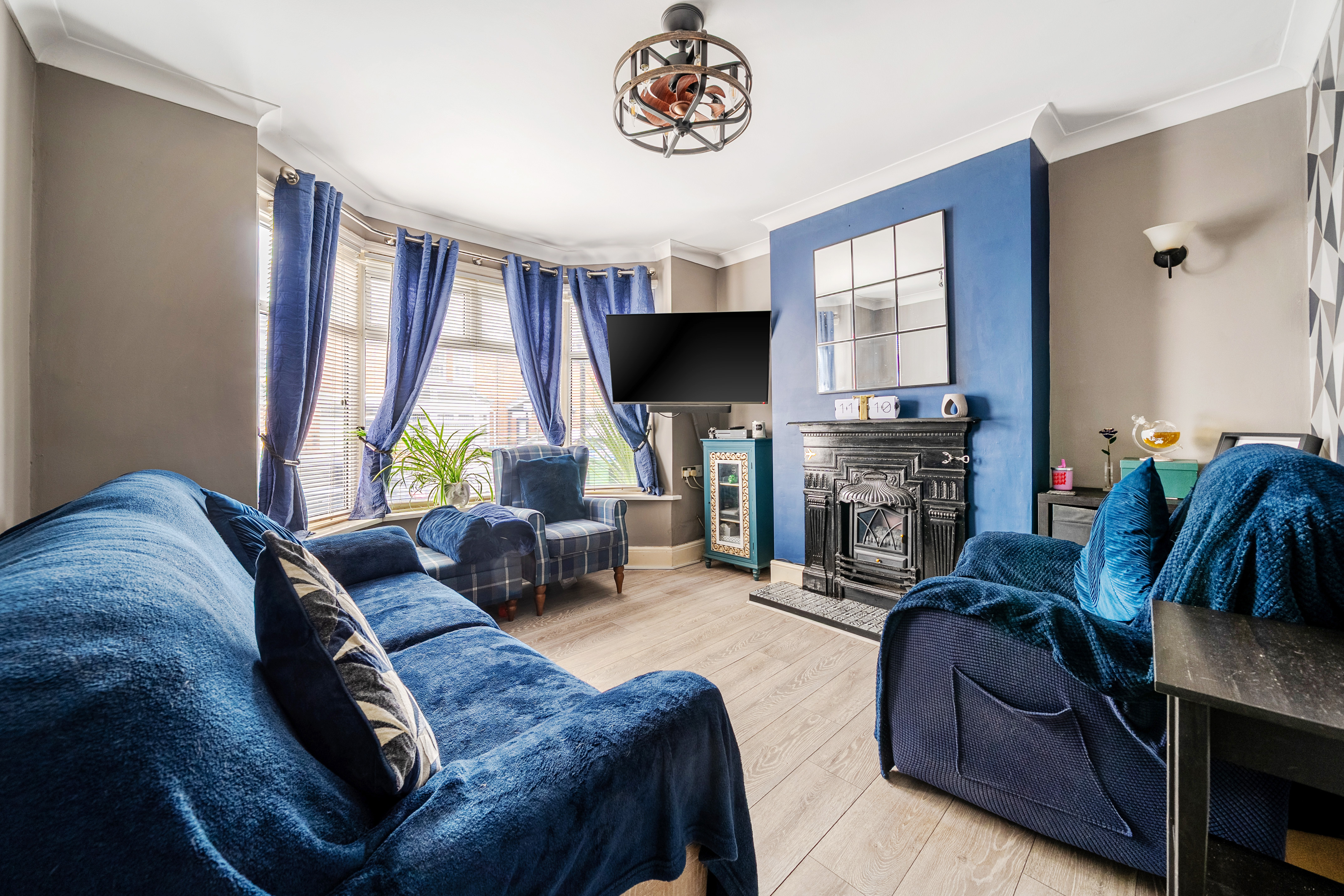- Bright living room with bay window