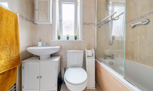 - Family bathroom with shower over bath