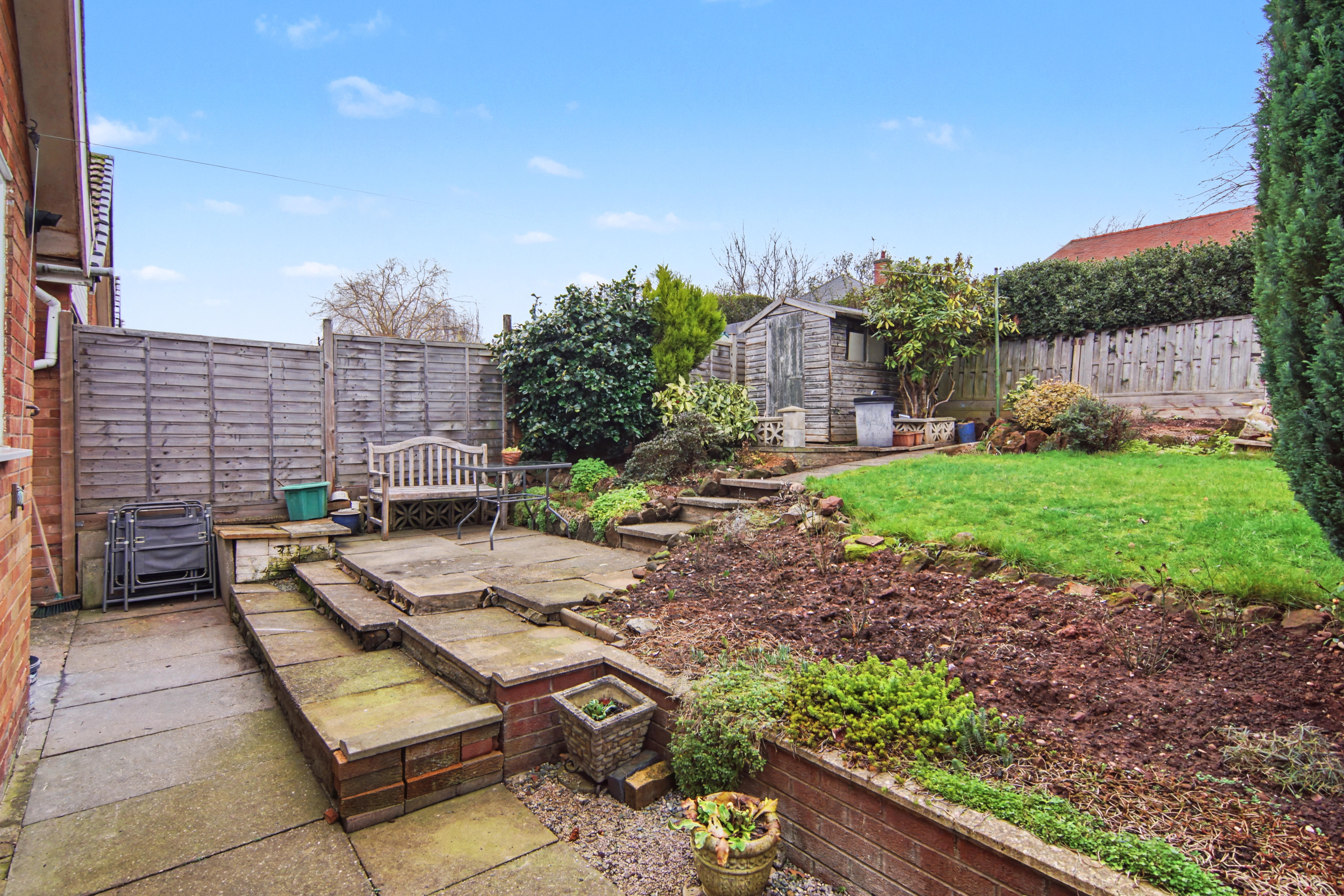 Rear: Lawn | Patio Area | Shed | Mature Garden