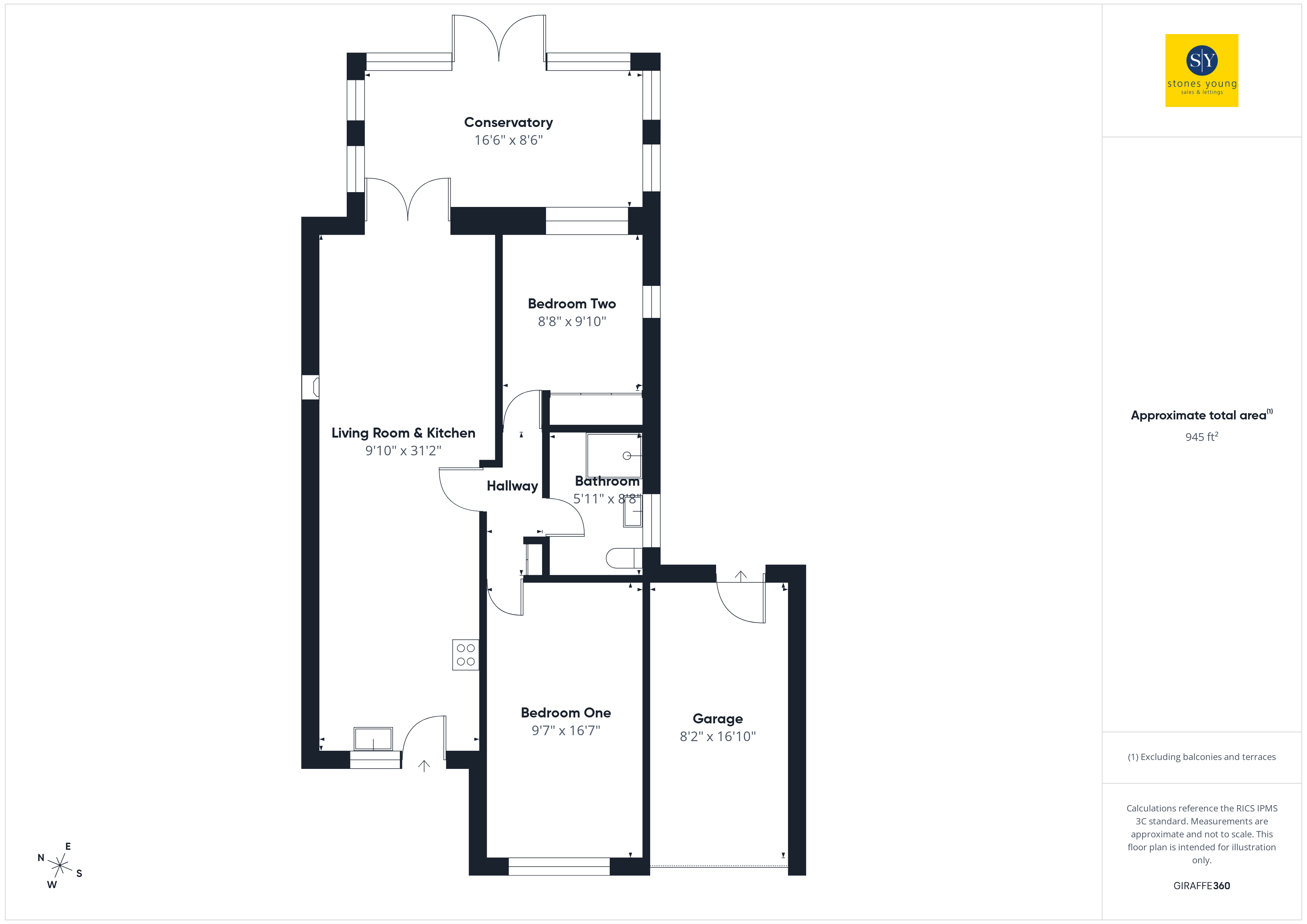 - Approx Sq Feet: 945 sqft